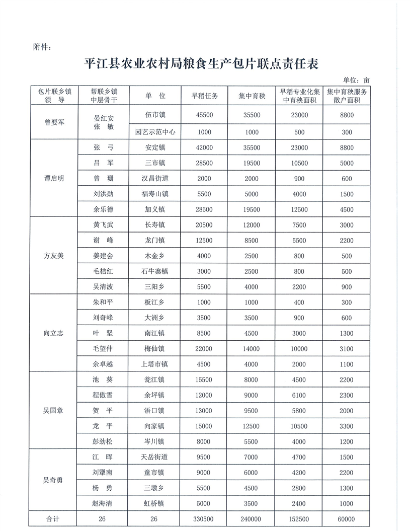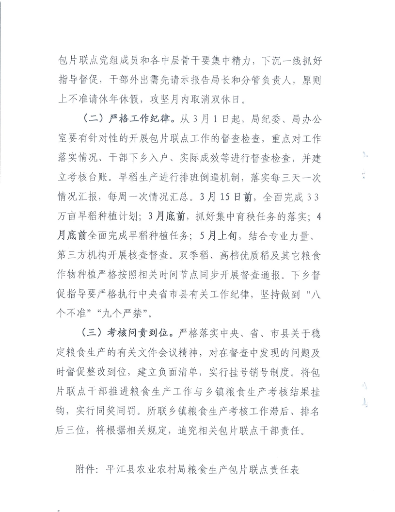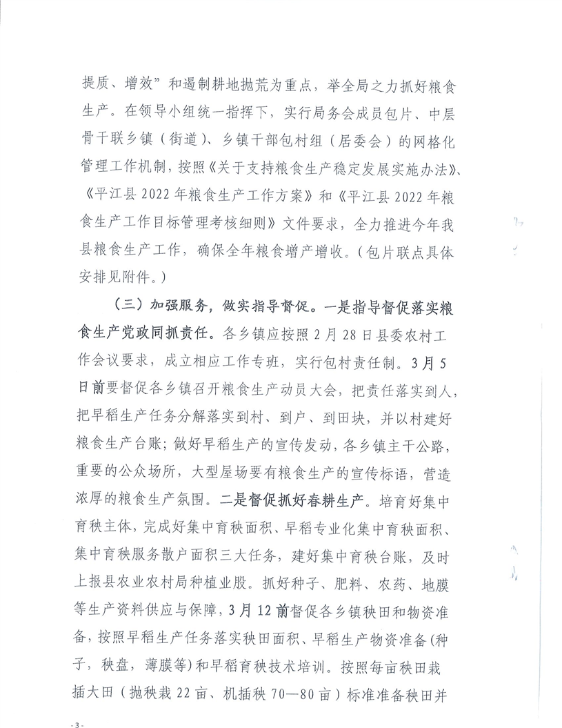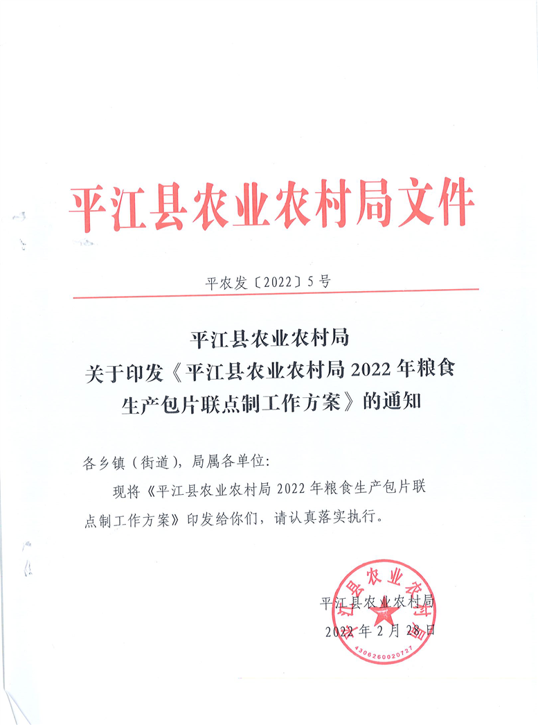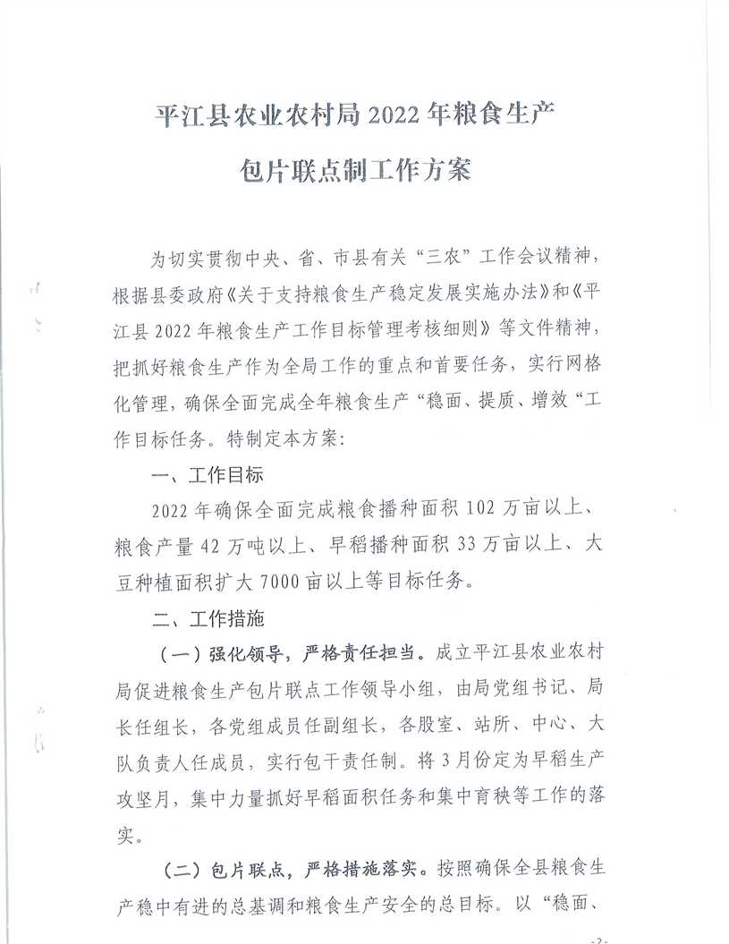 平江县农业农村局2022年粮食生产包片联点制工作方案