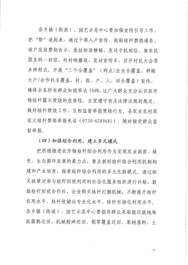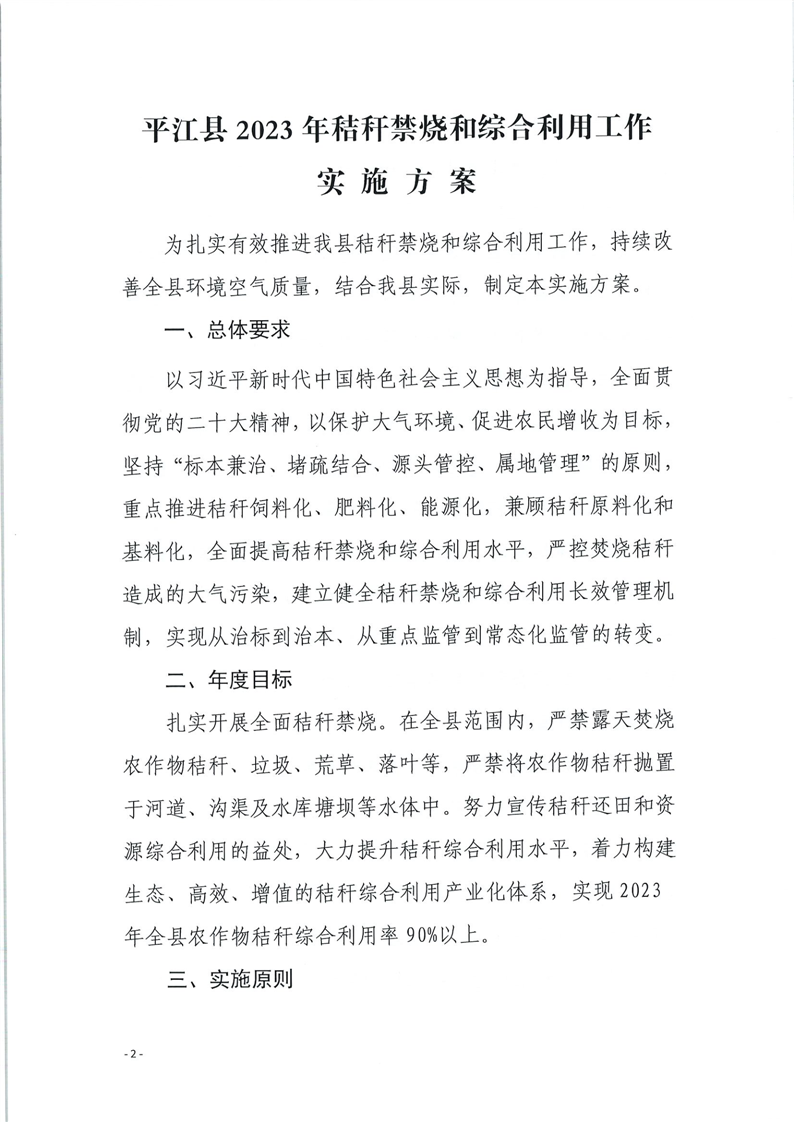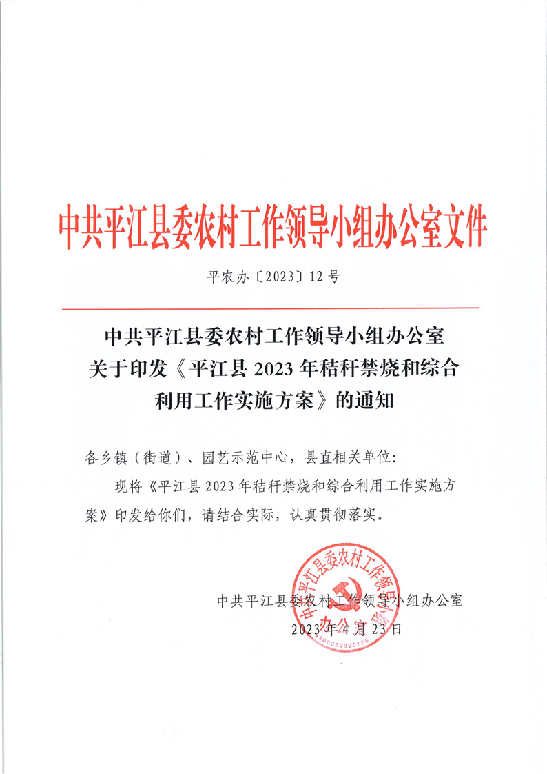 平江县2023年秸秆禁烧和综合利用工作实施方案