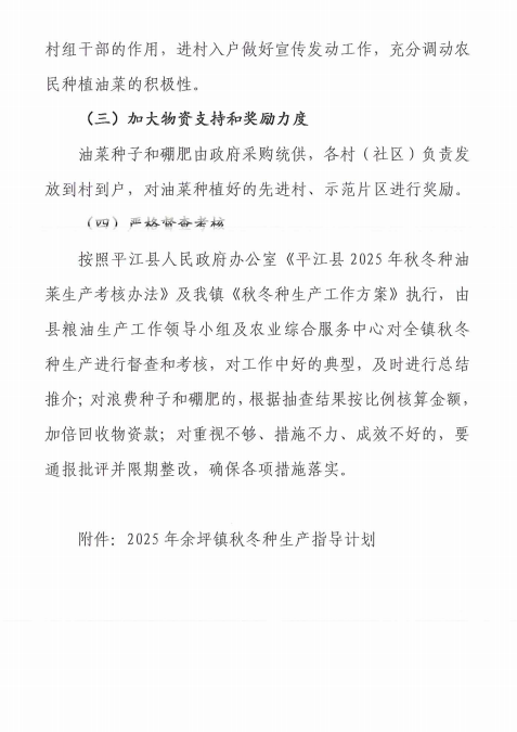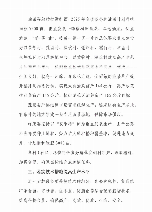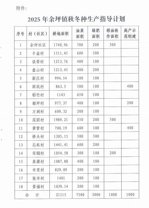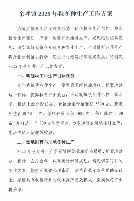 余坪镇2025年秋冬种生产工作方案