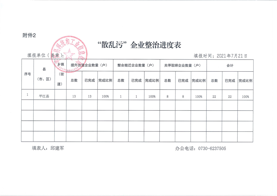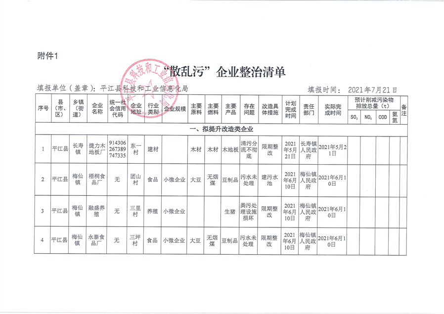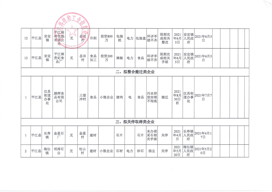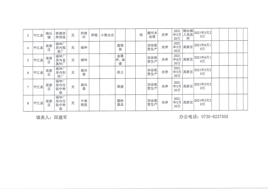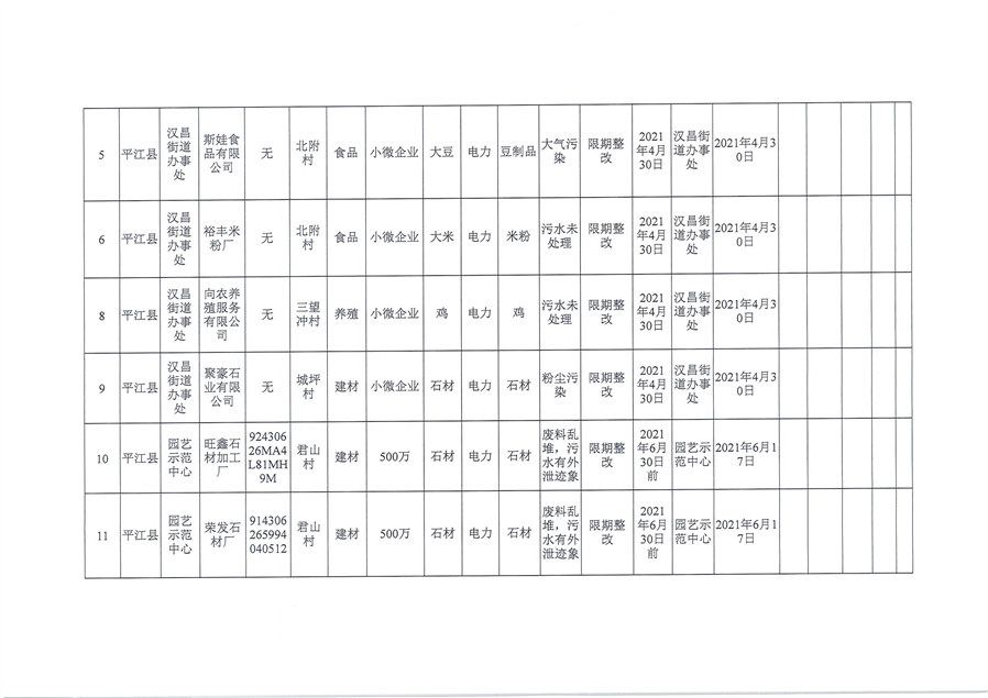 关于2021年平江县“散乱污”企业整治情况的公告