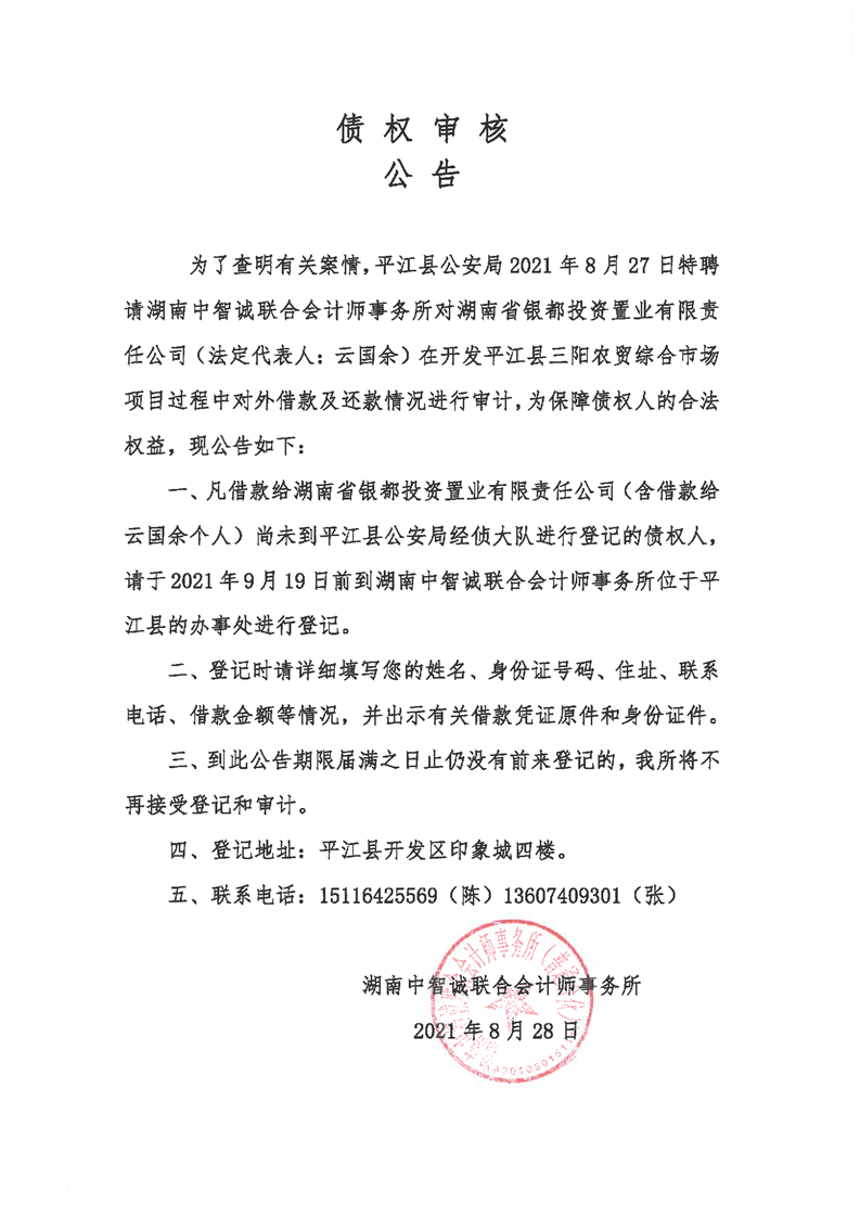 债权审核公告