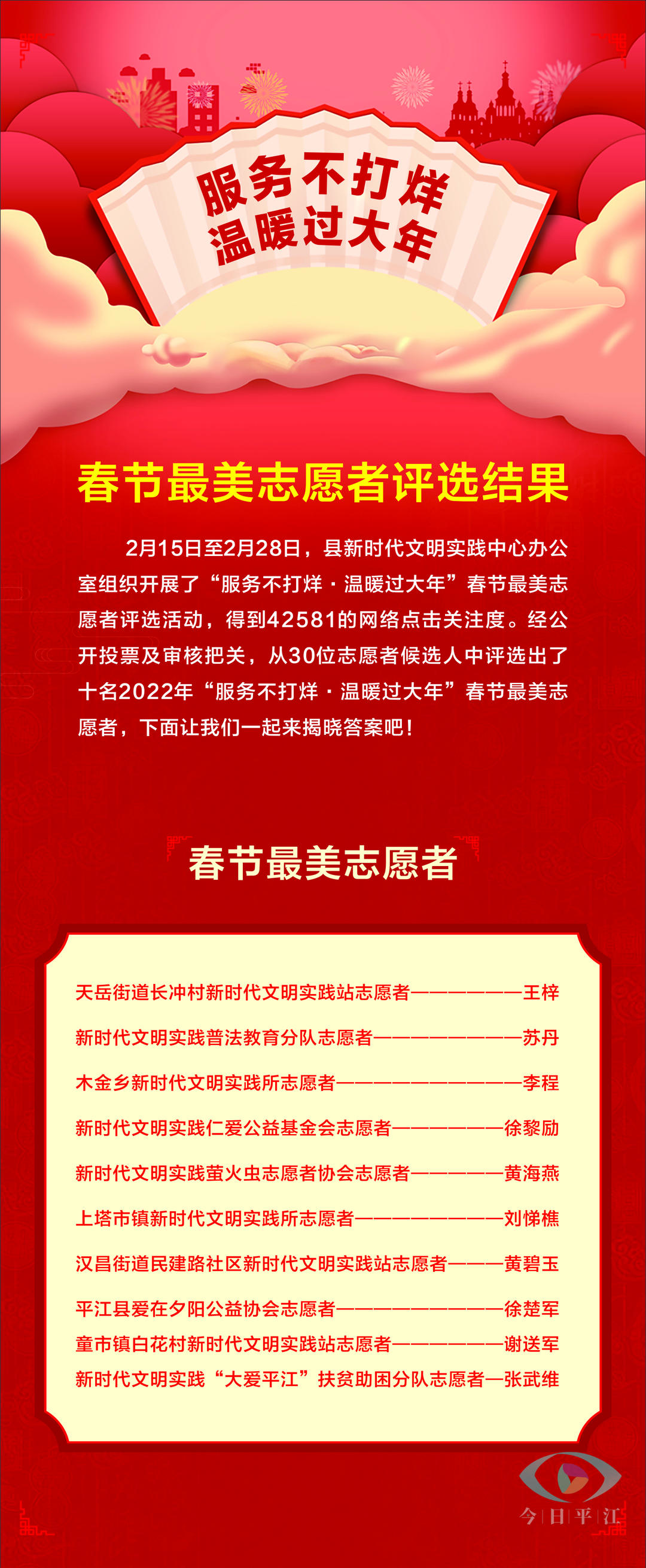 “服务不打烊·温暖过大年”春节最美志愿者评选结果