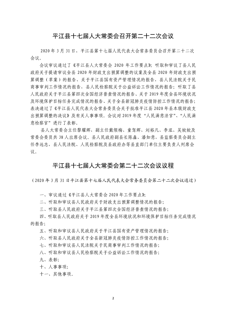平江县第十七届人大常委会公报第22号