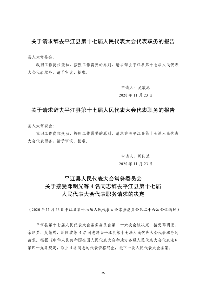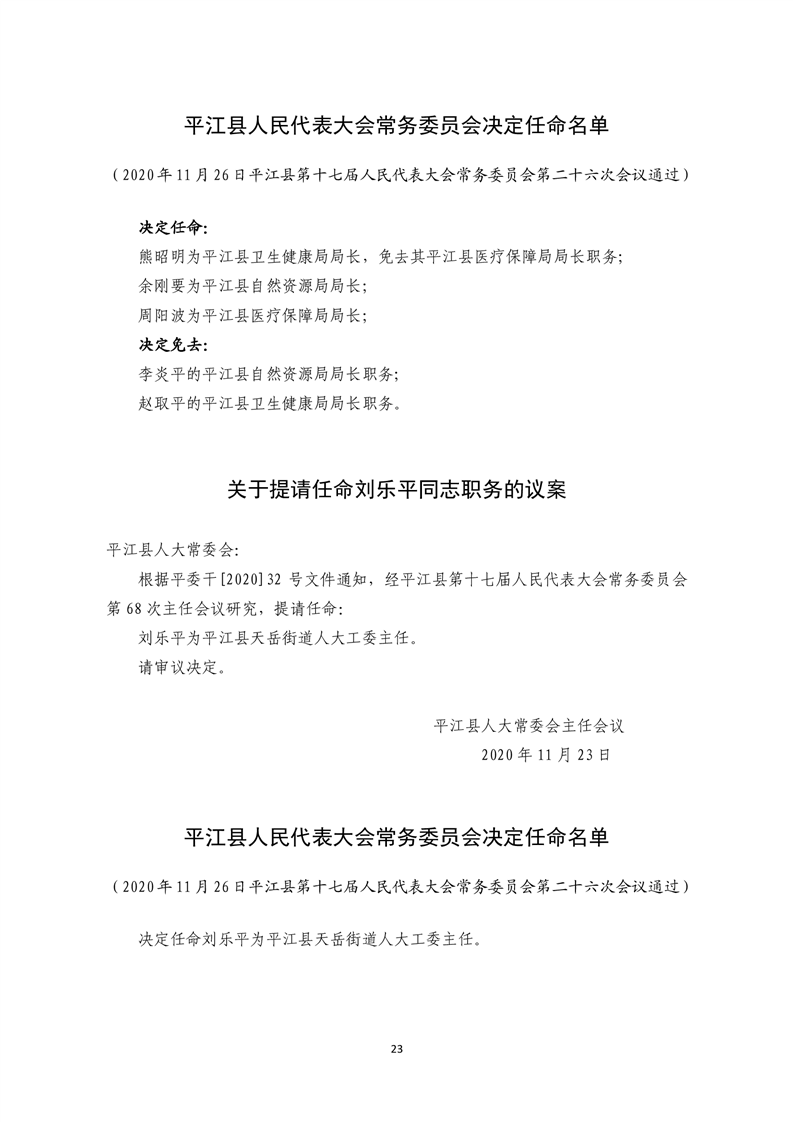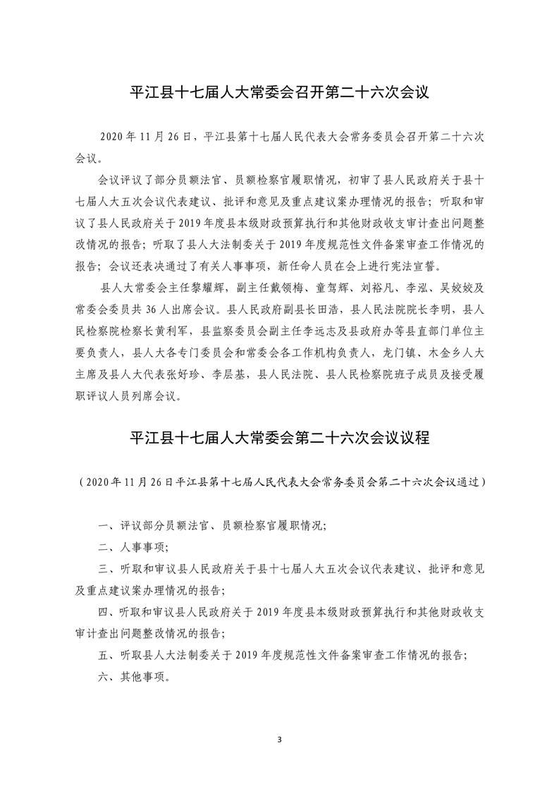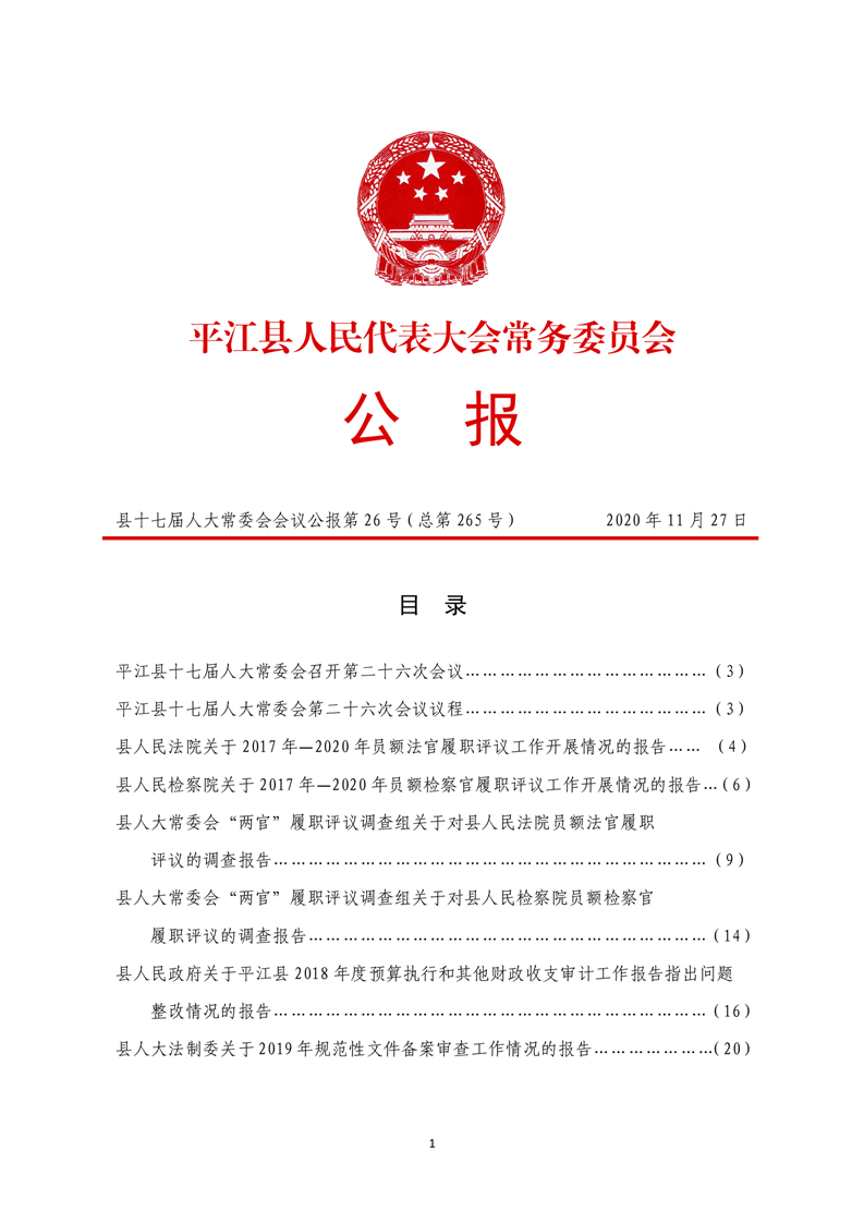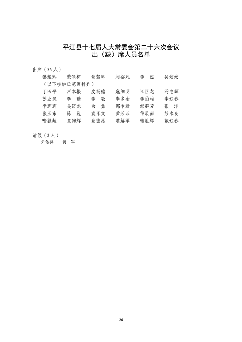 平江县第十七届人大常委会公报第26号