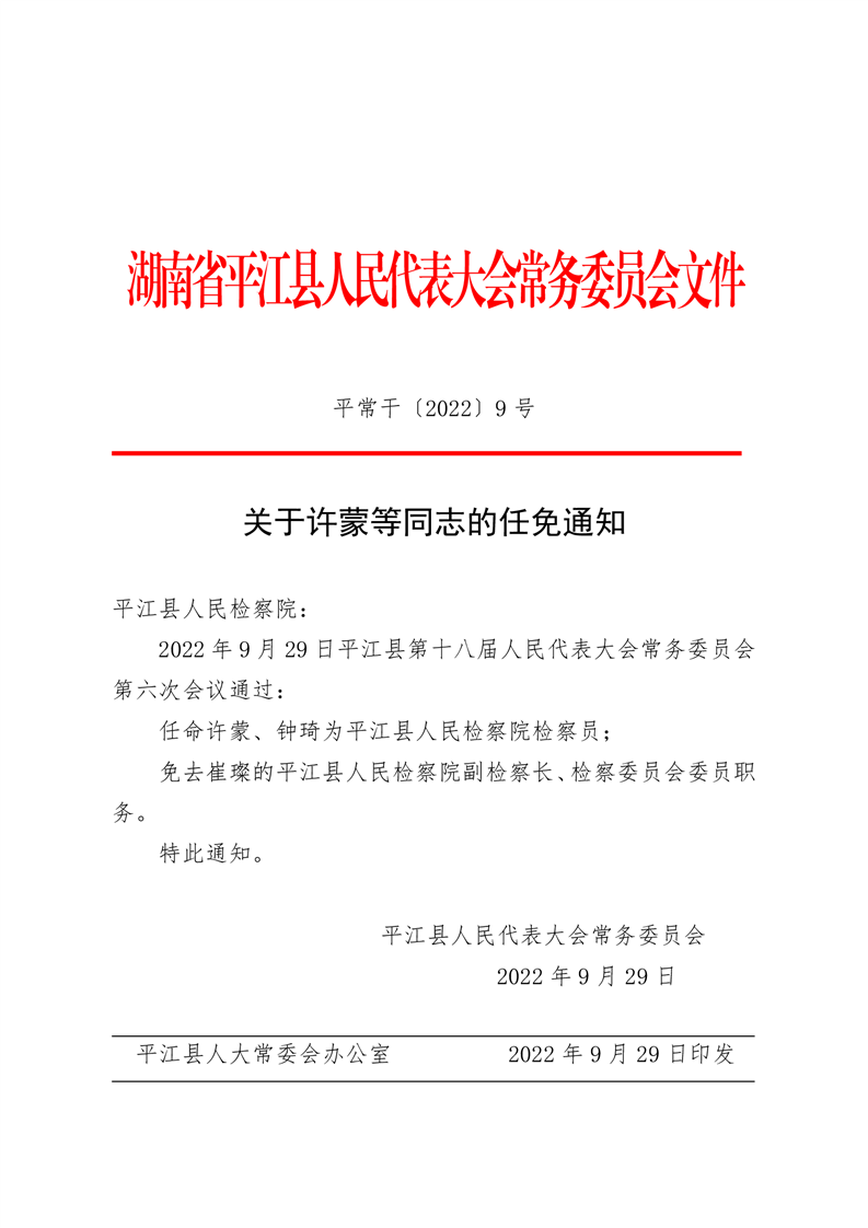 关于许蒙等同志的任免通知