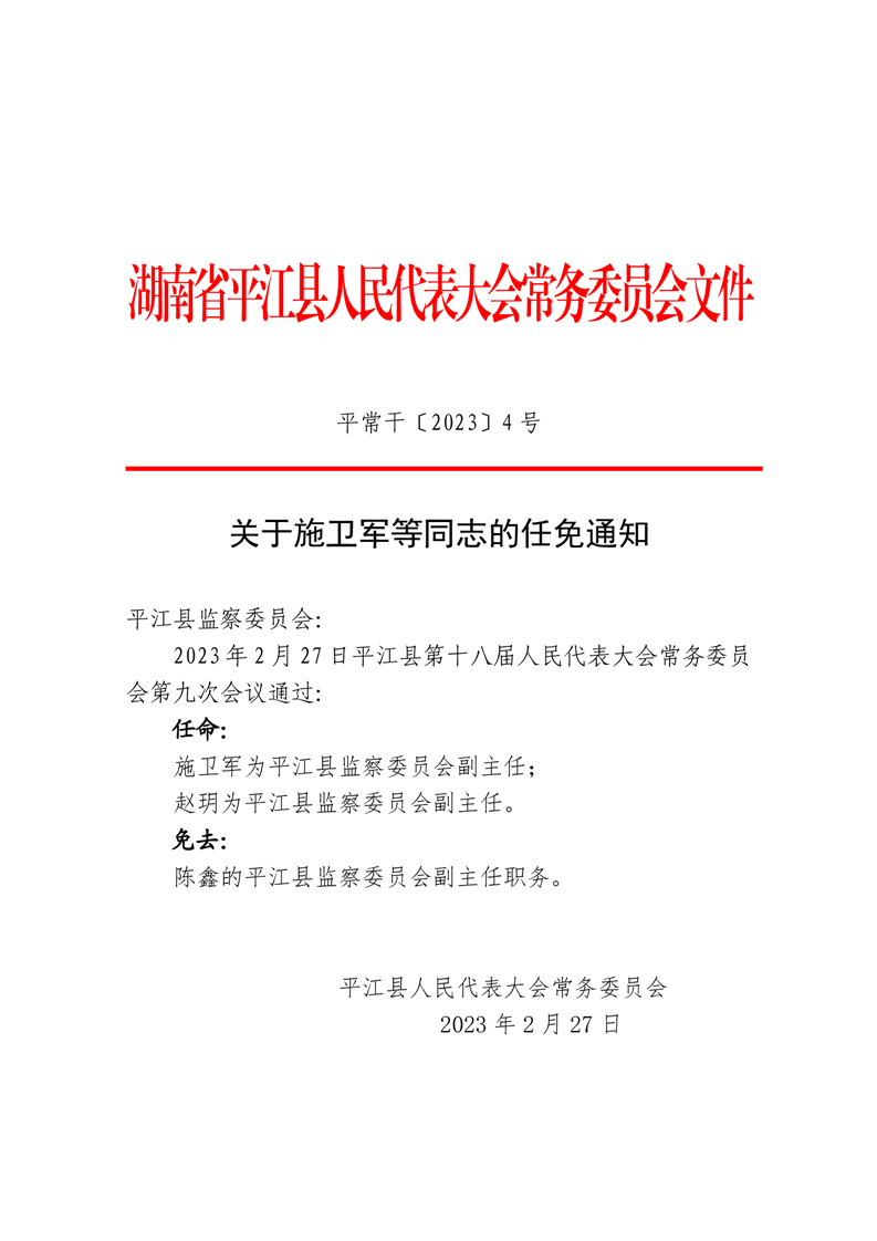 关于施卫军等同志的任免通知