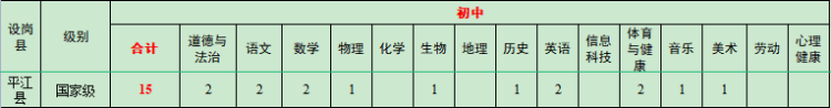 2023年,计划招聘中央特岗教师900人。其中,平江县招聘21人,分别为初中15人、小学6人。