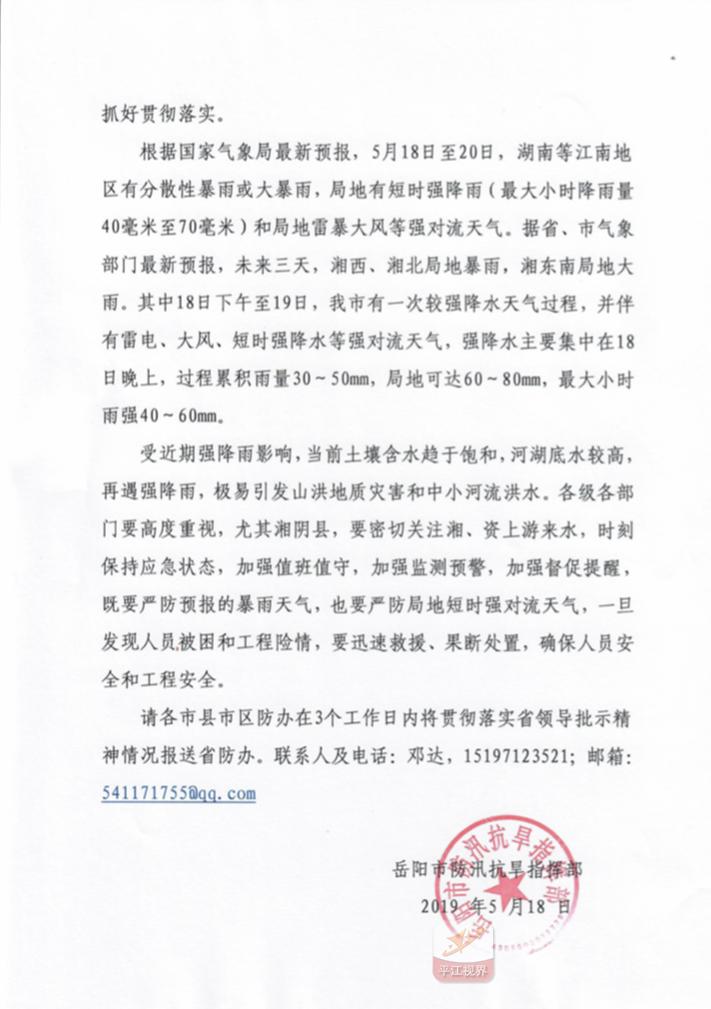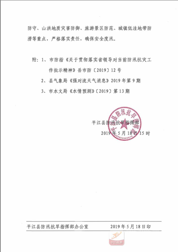 鉴此,今天上午10时,副县长、县防指常务副指挥长徐教凡主持召开防汛会商会,要求各级防汛责任人迅速贯彻落实省领导对当前防汛抗灾工作的批示精神,思想务必重视,加强值班值守,及时预报预警,突出水库山塘尾矿库防守、山洪地质灾害防御、旅游景区防范、城镇低洼地带防涝等重点,严格落实责任,确保安全度汛。