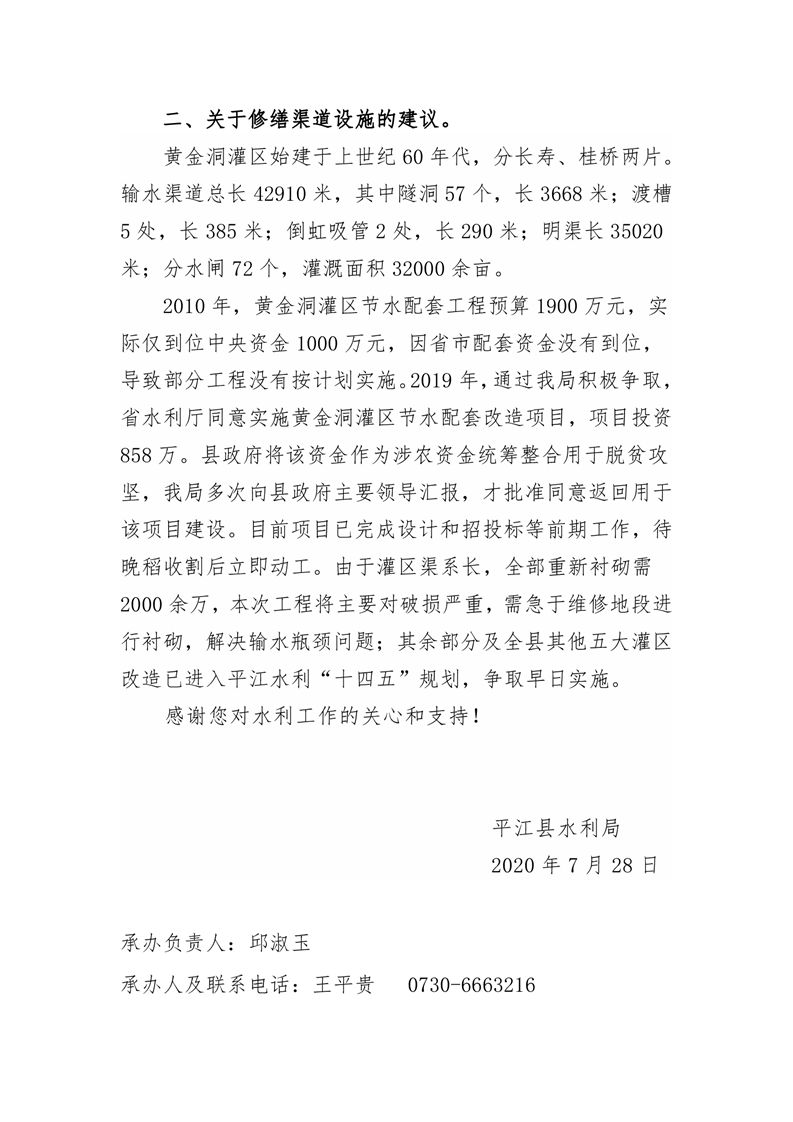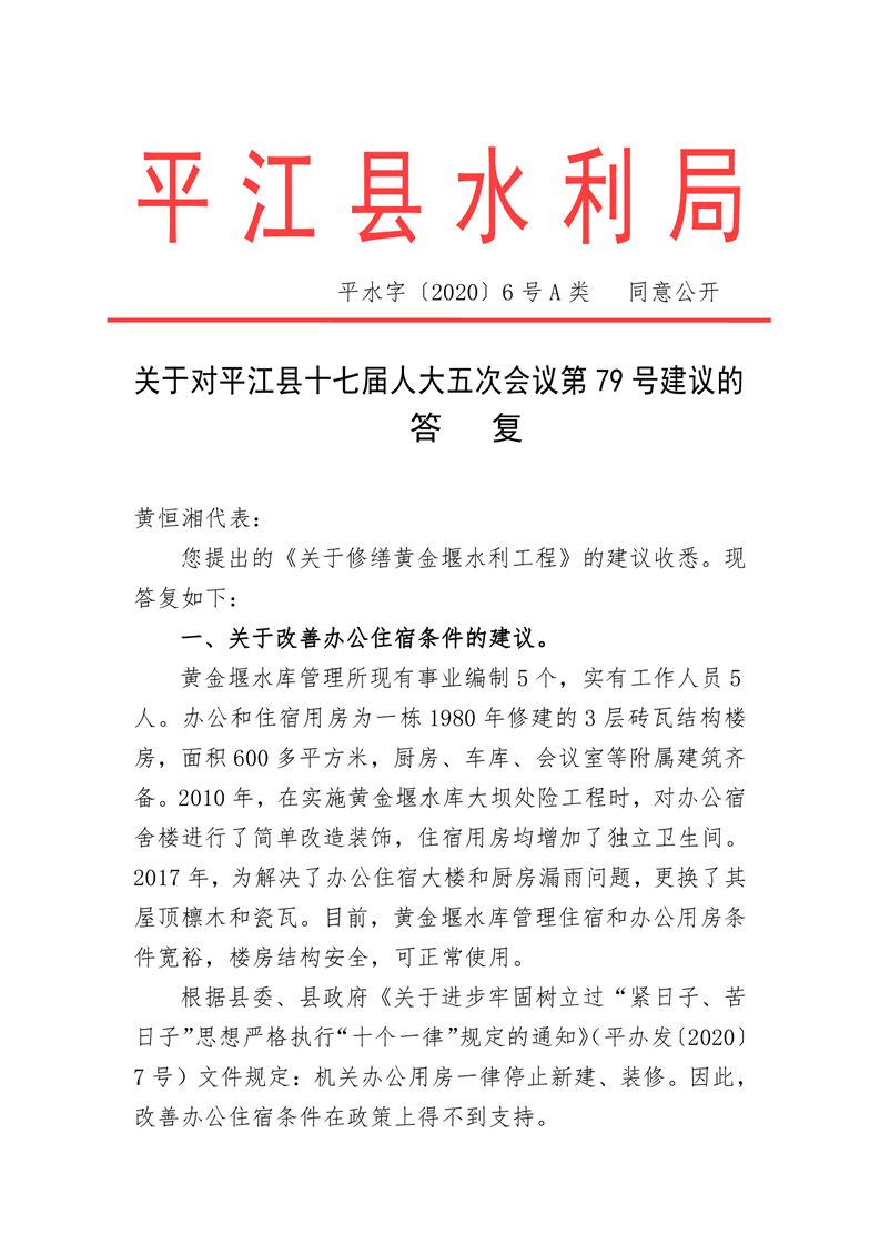 关于对平江县十七届人大五次会议第79号建议的答复
