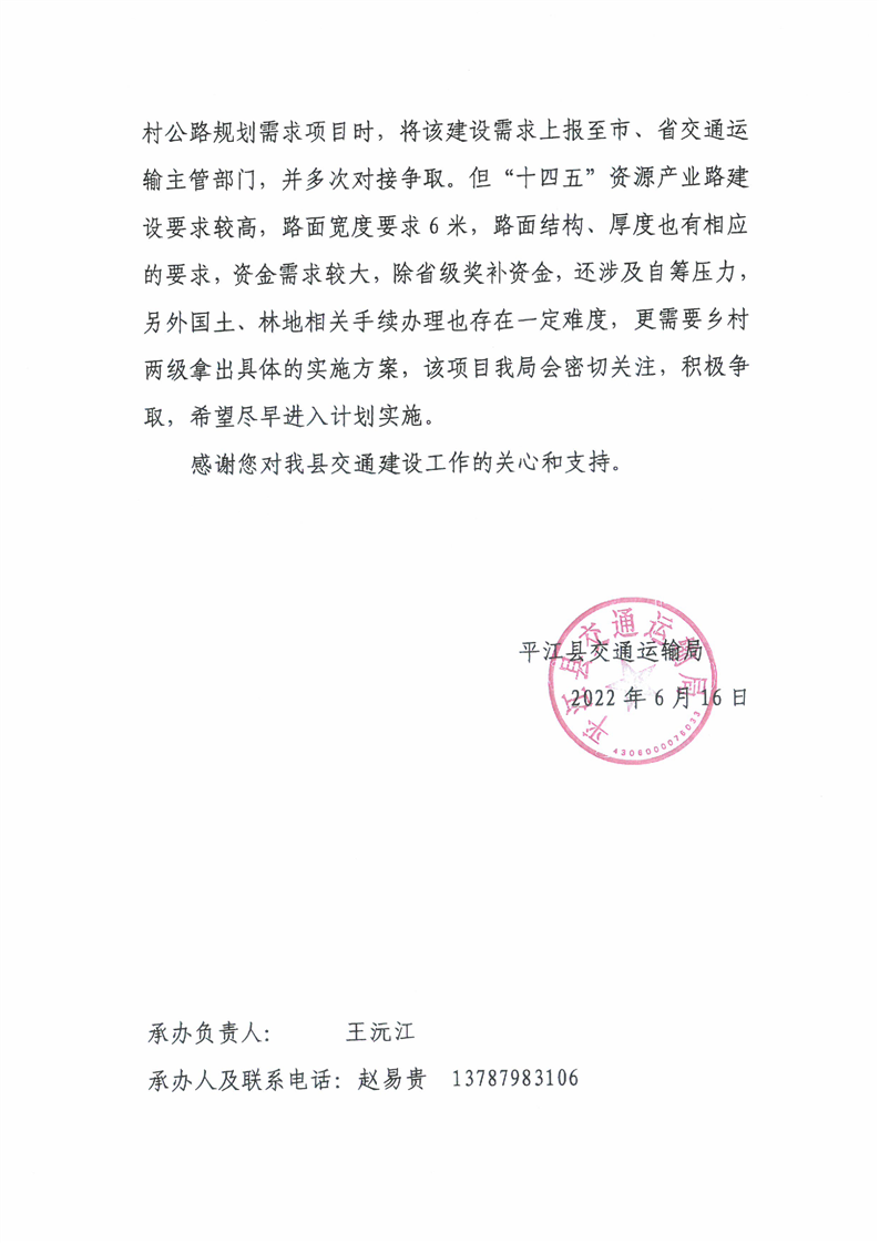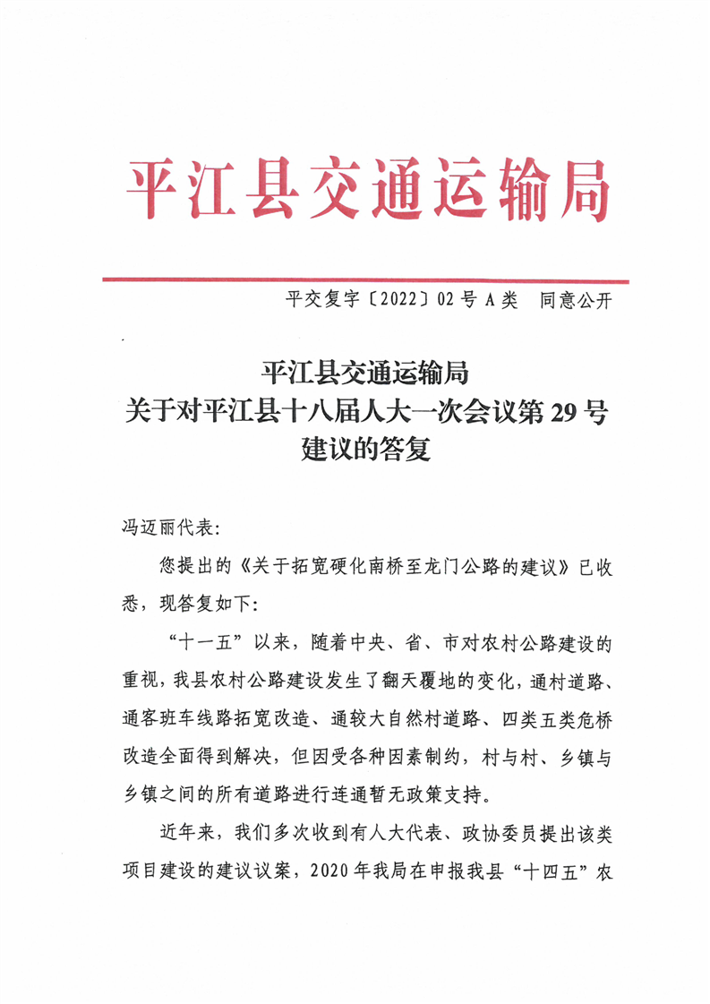 关于对平江县十八届人大一次会议第29号建议的答复