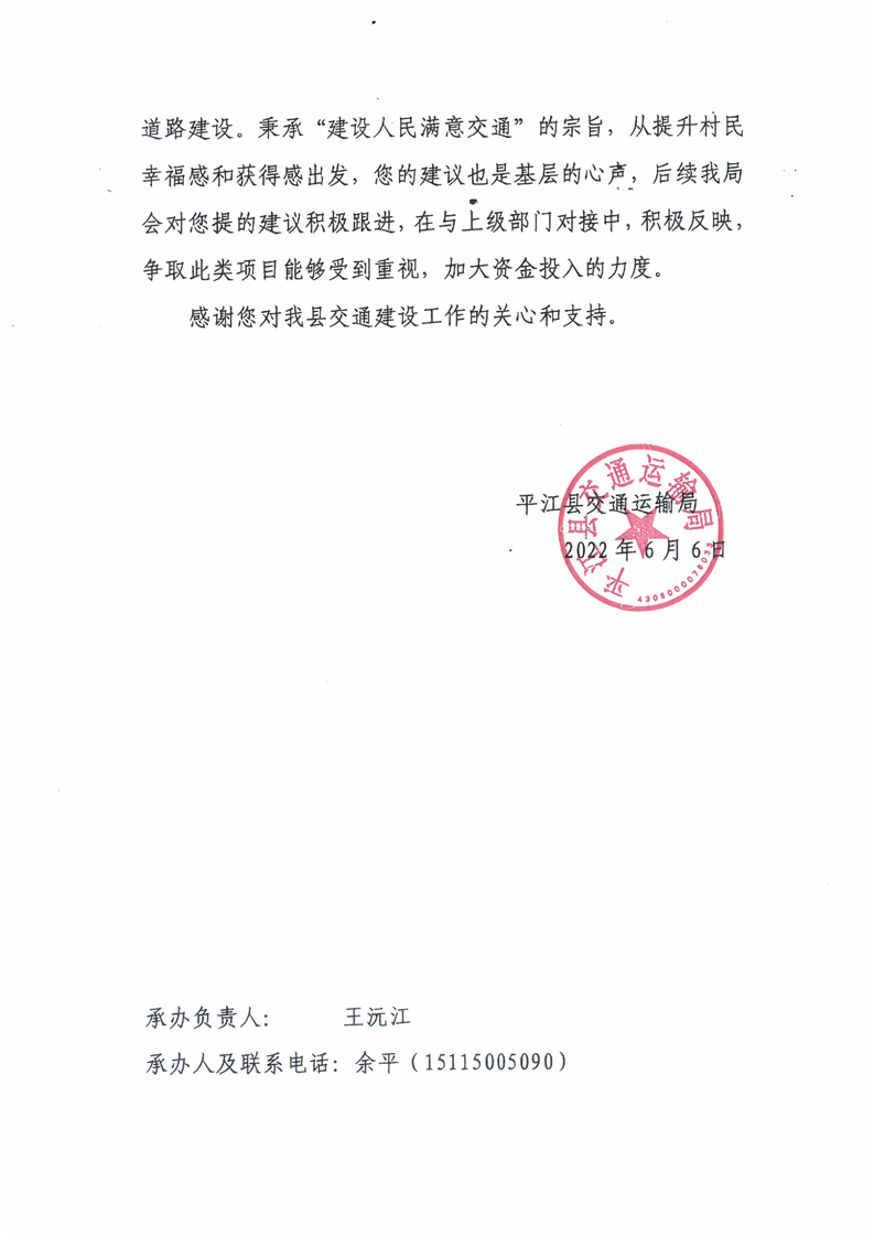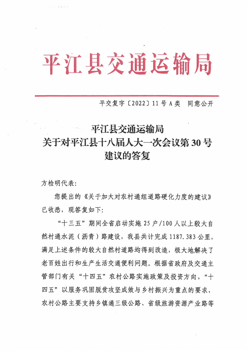 关于对平江县十八届人大一次会议第30号建议的答复
