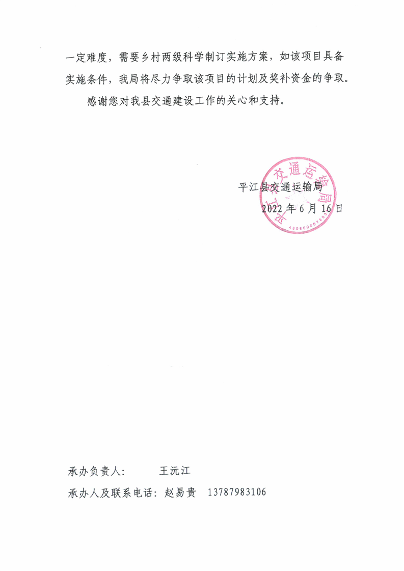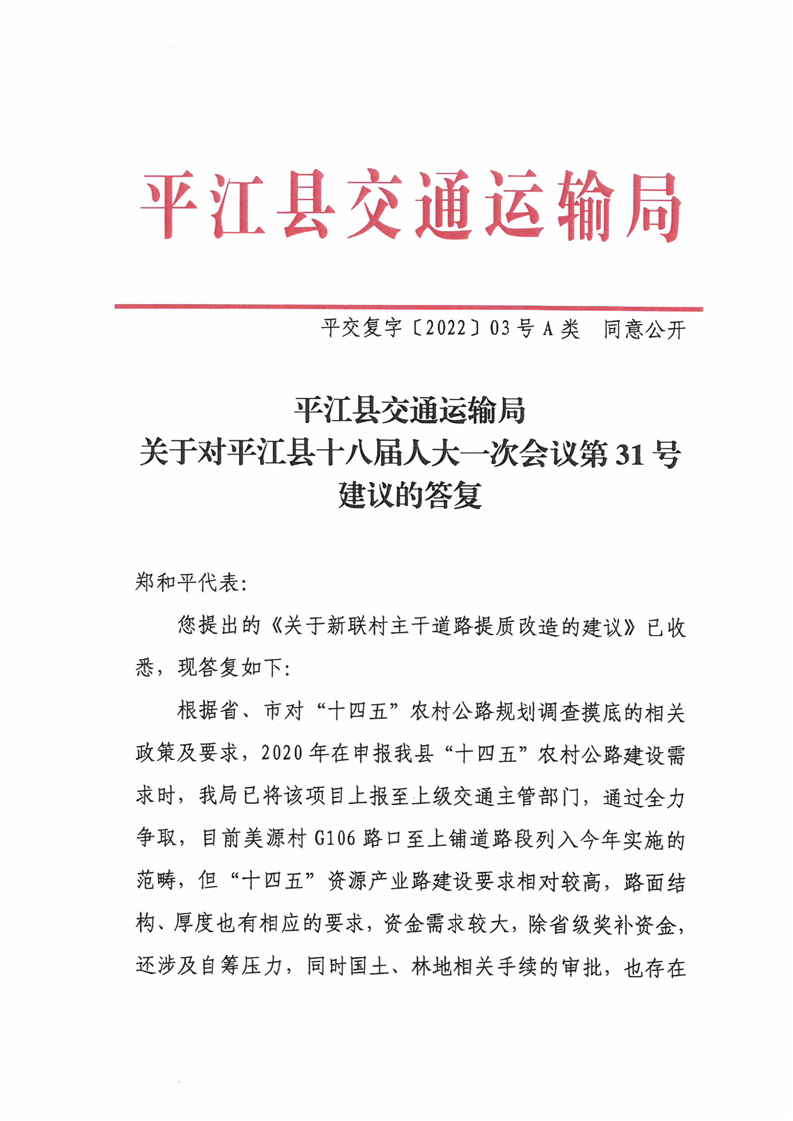 关于对平江县十八届人大一次会议第31号建议的答复