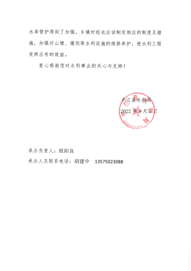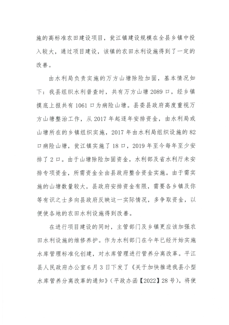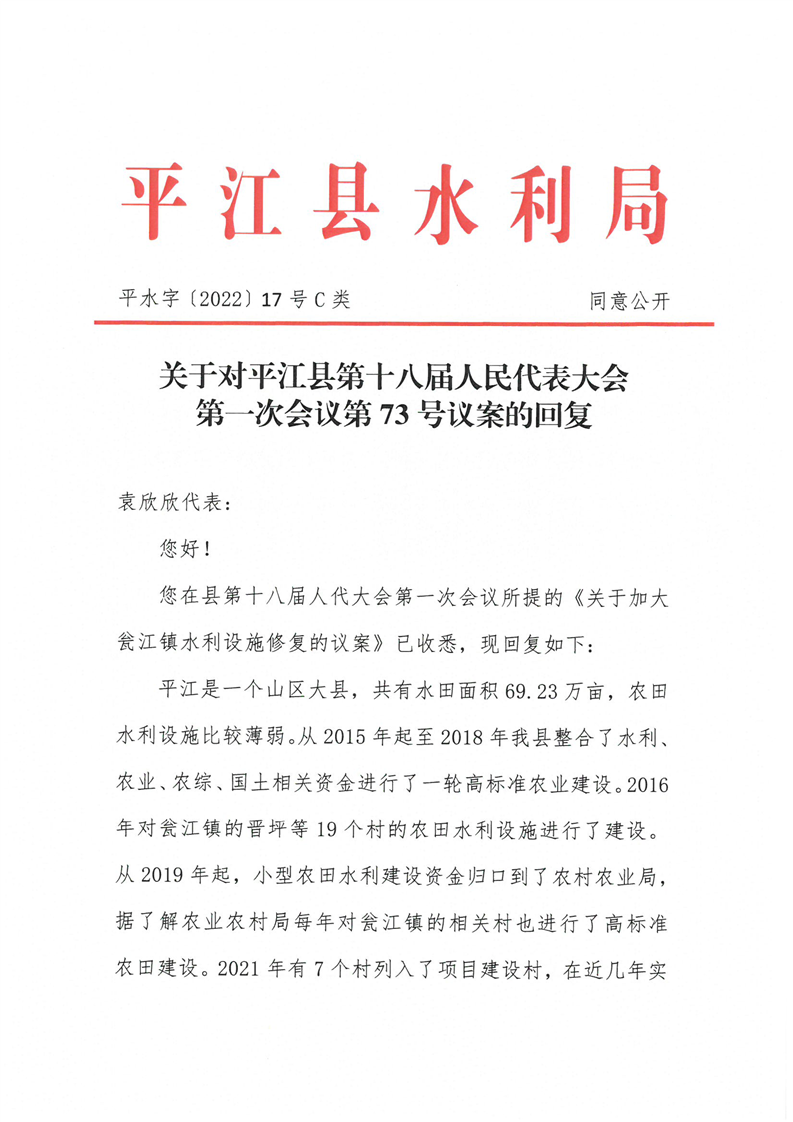 关于对平江县十八届人大一次会议第73号议案的回复