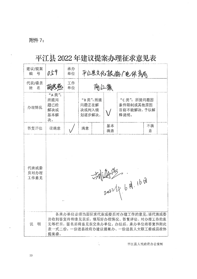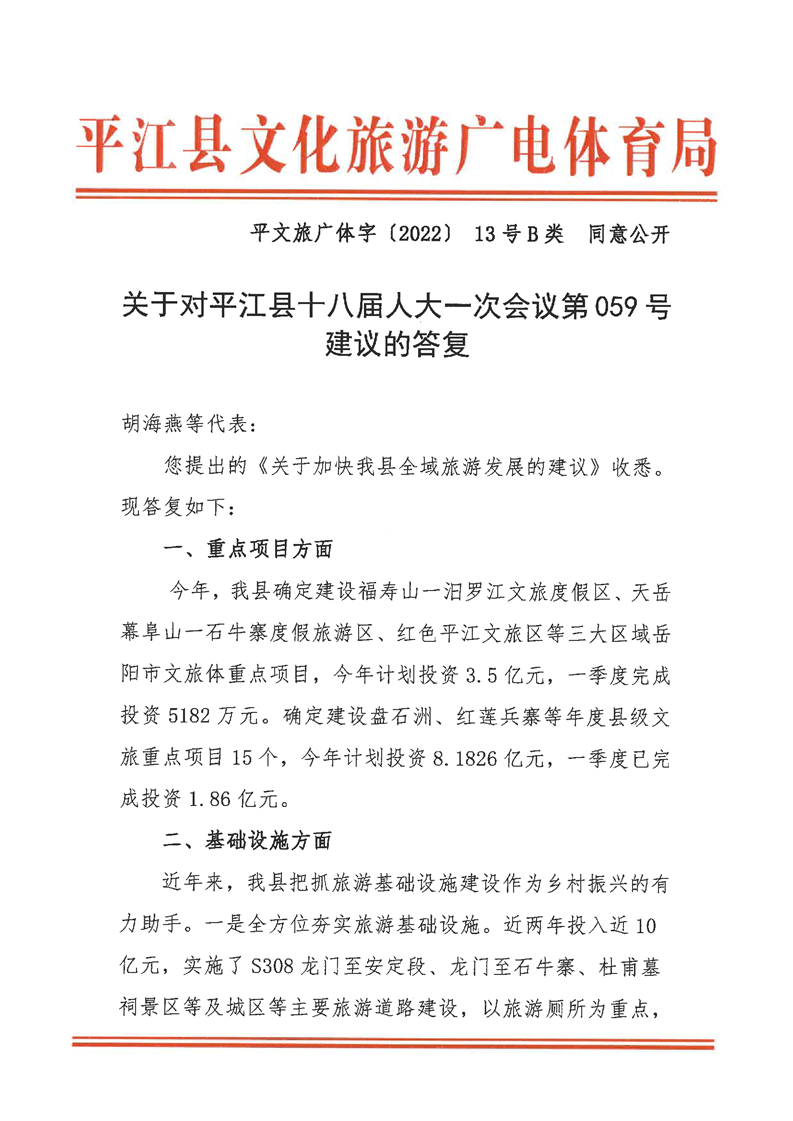 关于对平江县十八届人大一次会议第59号建议的回复