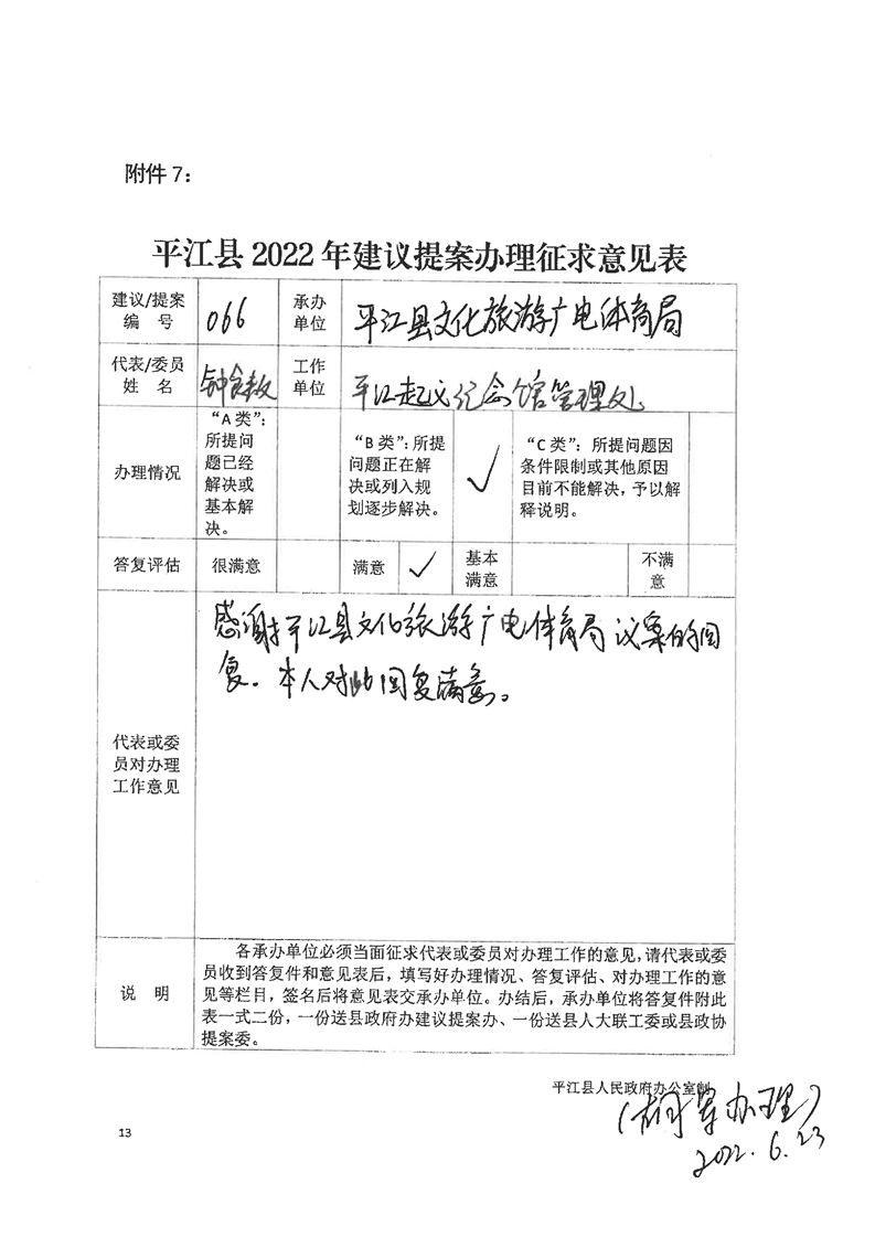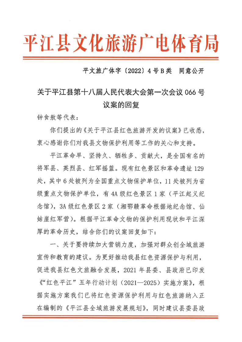 关于对平江县十八届人大一次会议第66号议案的回复