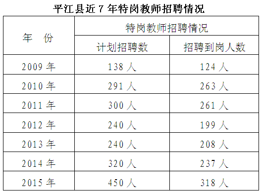 根据《平江县人民政府县长办公会议纪要》(〔2015〕第9次)的精神,2015年4月3日,由县编委办牵头,会同县人社局、财政局、教育局,对我县边远山区的虹桥镇(含平江十中)、石牛寨镇、三墩乡、木金乡、龙门镇等乡镇的中小学校实地进行教师队伍建设调研,采取看现场,查资料,与乡镇(村)干部、学校校长、教师座谈,走访村民等形式,了解我县教师队伍建设情况,形成了调研报告,建议:一是连续五年每年招聘定岗小学教师100名,解决边远乡镇及教学点、村小师资紧缺问题;二是重新启动免费师范生委培计划。2015年我县面向社会公开招聘定岗小学教师100名,补充到了边远乡镇及教学点、村小等艰苦岗位;同时选送了初、高中起点免费师范生65名到师范院校委培。