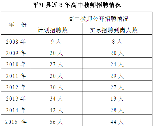2014年11月13日,中央编办 、教育部、财政部下发了《关于统一城乡中小学教职工编制标准的通知》(中央编办发〔2014〕72号)的文件。但湖南省编办没有下发相应的文件,因此,平江县编办目前仍然执行湘政发【2002】44号文件规定的编制标准,即教职工与学生比为:初中县镇1﹕16、农村1﹕18;小学县镇 1﹕21、农村1﹕23.