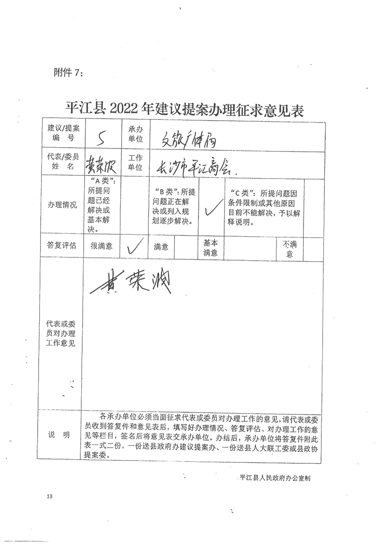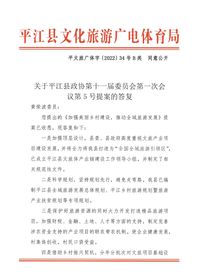 关于对平江县政协十一届一次会议第5号提案的回复