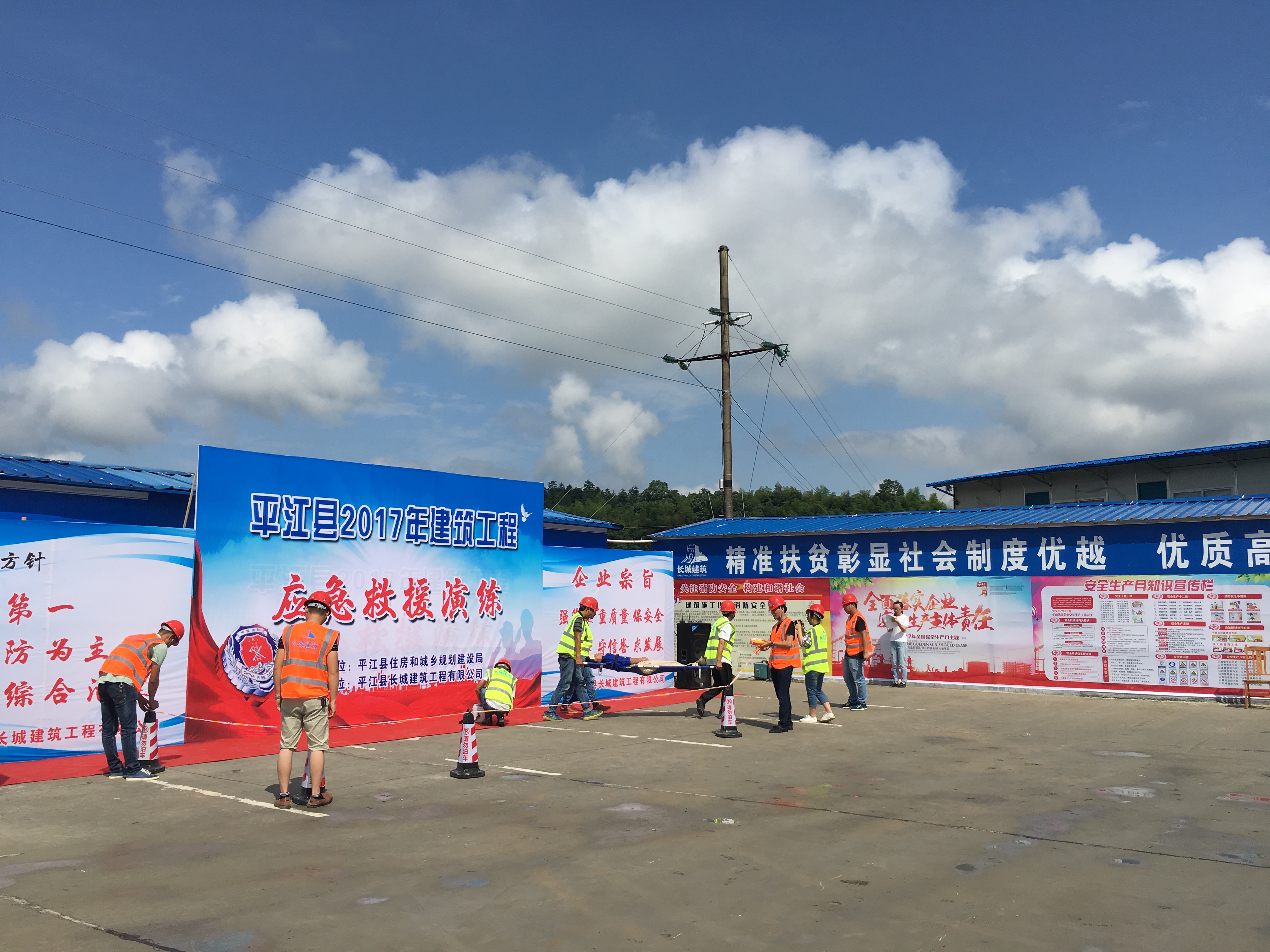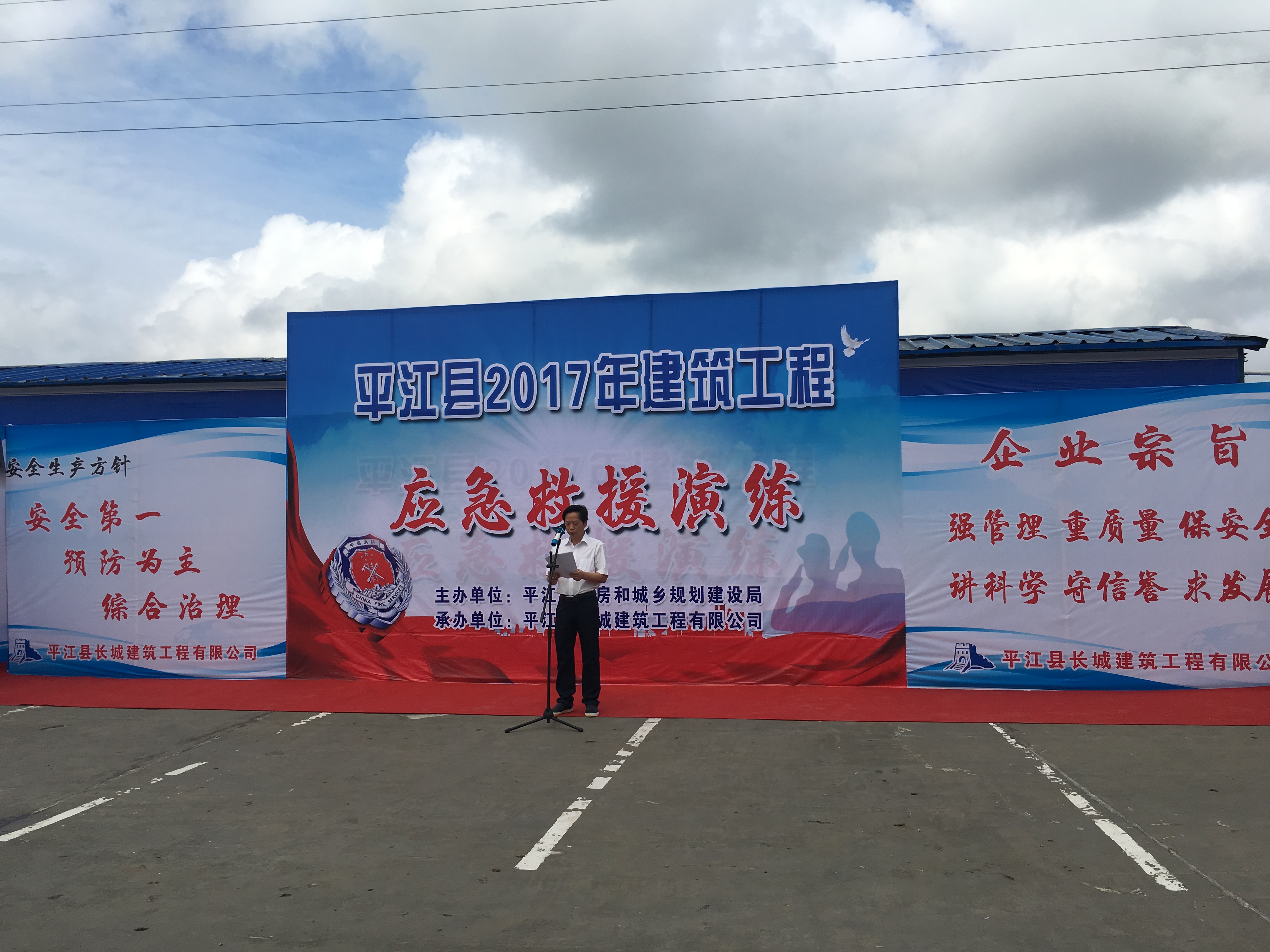 2017年6月28日,县住建局在长城建筑工程有限公司承建的洪家塅易地搬迁扶贫项目在建工地组织了一次大型的建筑工程安全生产突发事故应急救援演练活动。出席演练活动的领导有副县长田浩,县安监局、住建局等单位主要负责人。县属建设施工企业、监理企业,外地在平江的建设施工企业、监理企业等共计25家单位参加。