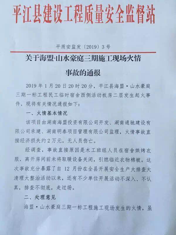 关于海盟山水豪庭三期施工现场火情事故的警示通报