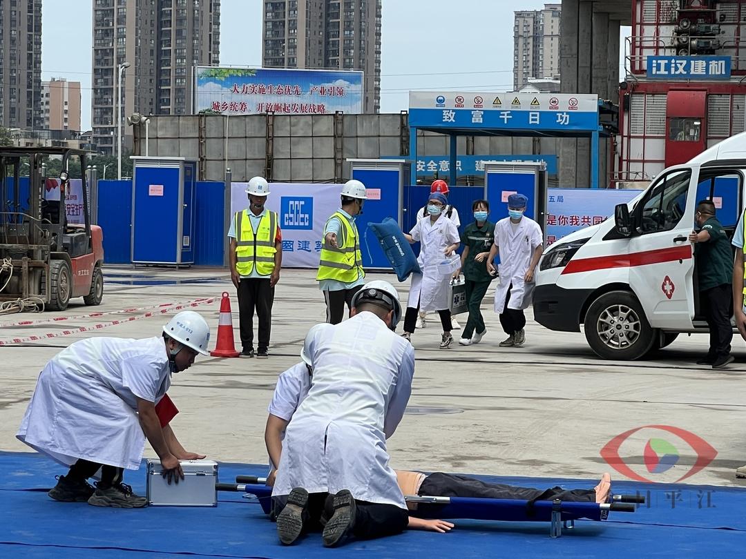6月23日,由县住房和城乡建设局主办、中国建筑第五工程局有限公司承办的“安全生产月”应急救援演练在颐华城智雅蓝庭项目工地展开。副县长夏海宣布演练开始。