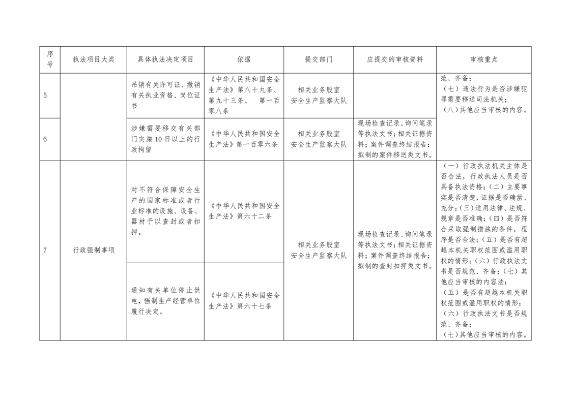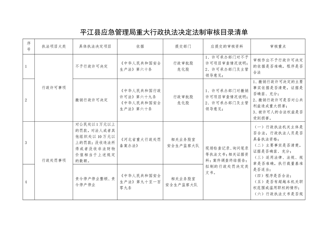 平江县应急管理局重大行政执法决定法制审核目录清单