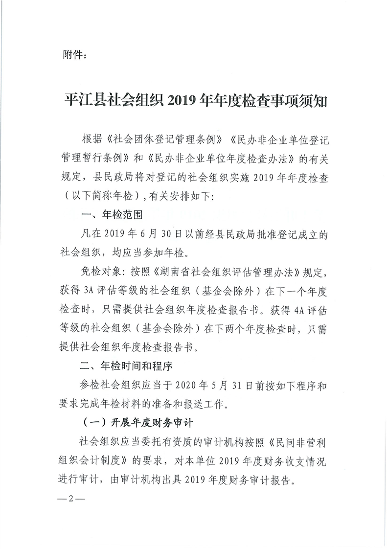 平江县民政局关于开展社会组织2019年年度检查工作的通知