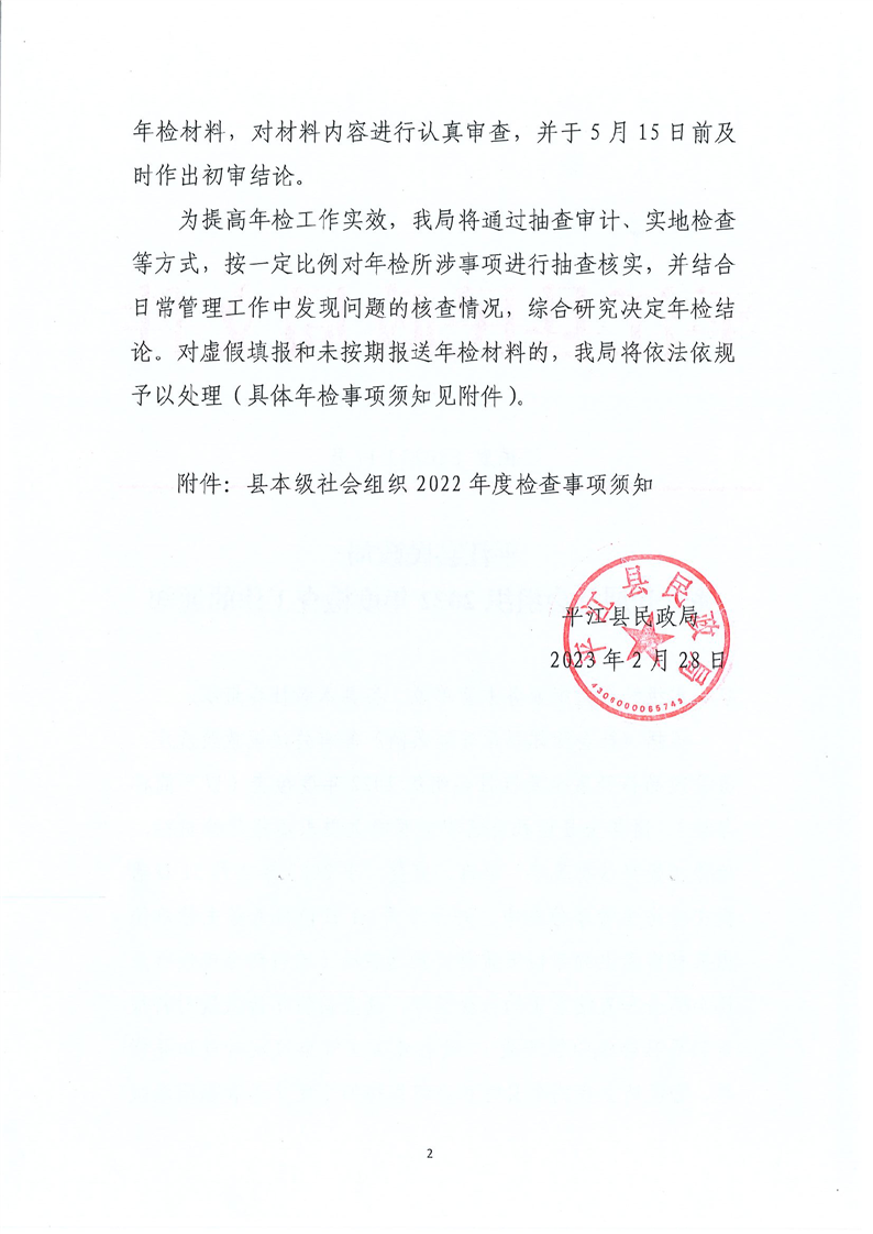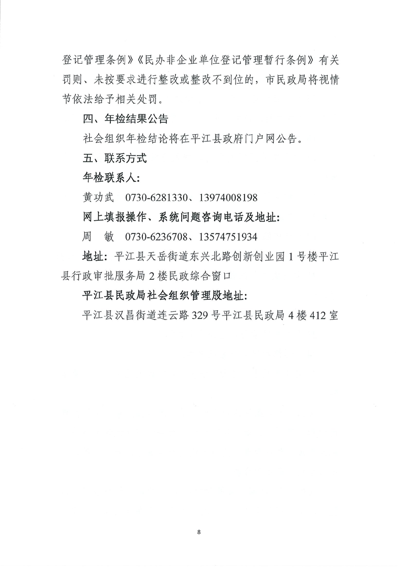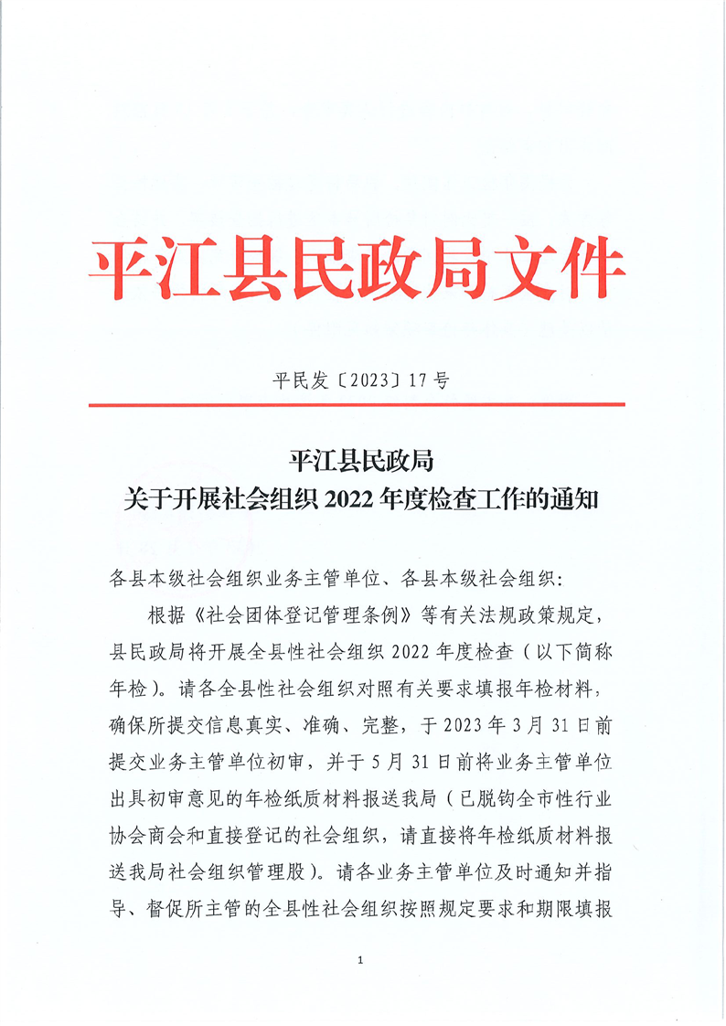平江县民政局关于开展社会组织2022年度检查工作的通知