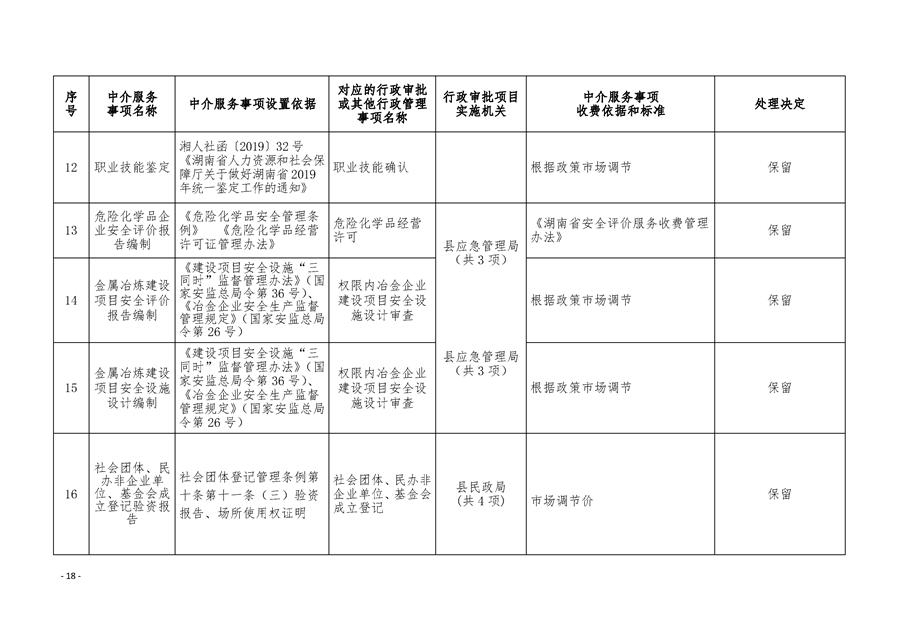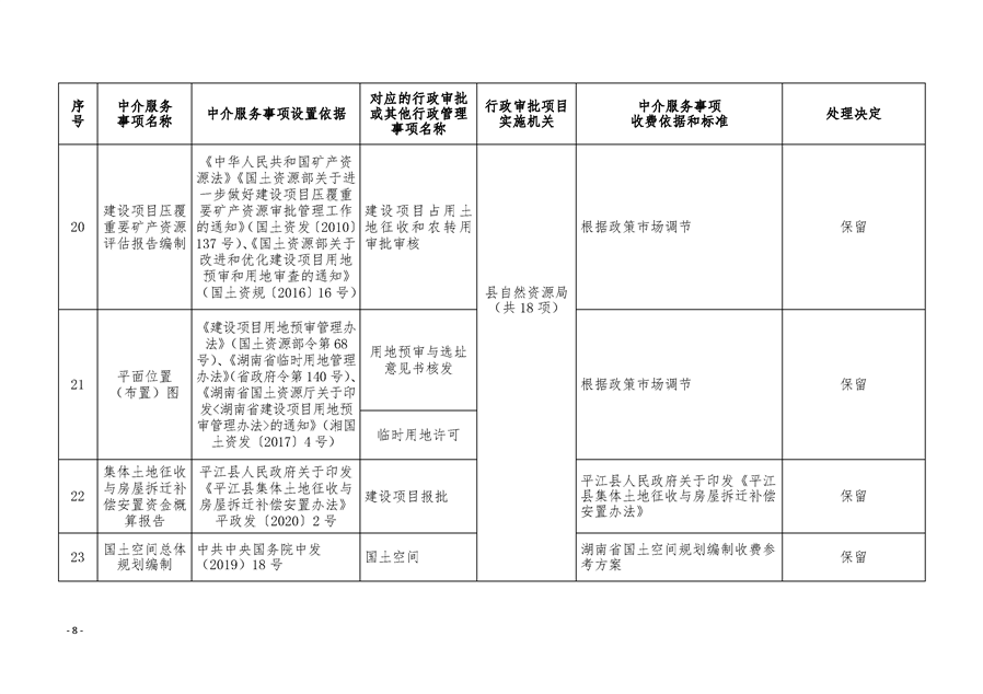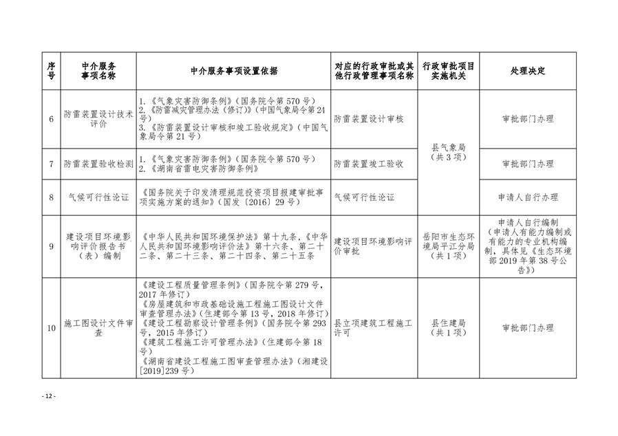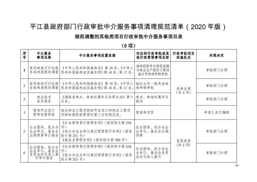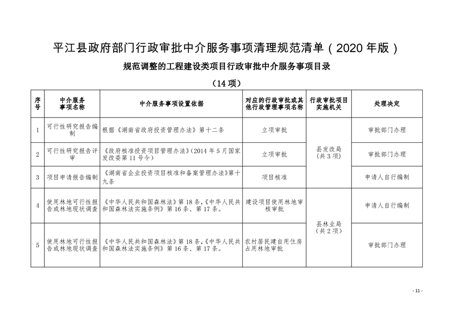 平江县人民政府办公室 关于公布平江县政府部门行政审批中介服务事项清理规范清单(2020年版)的通知