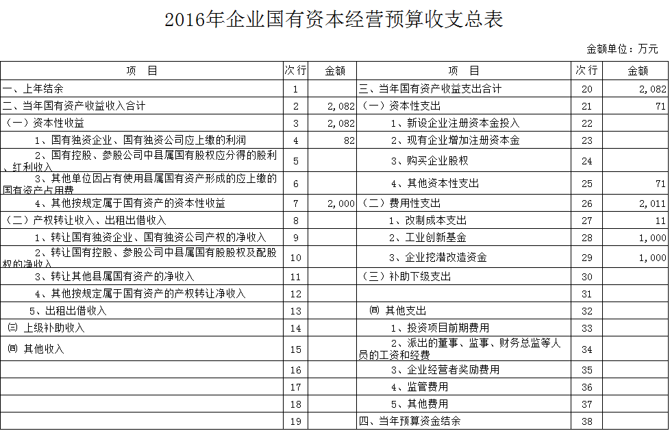 1、国有资本经营预算收益情况(2082万元)