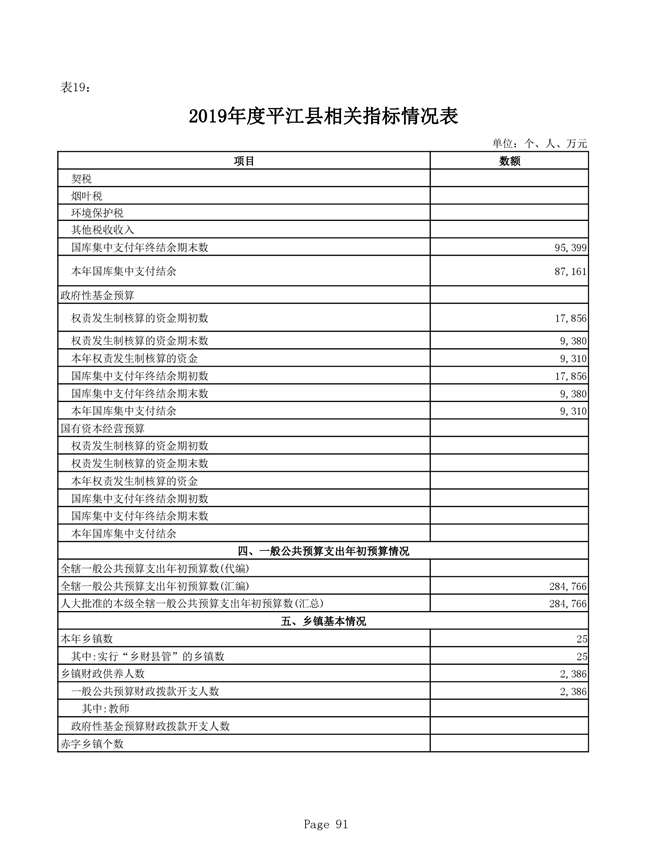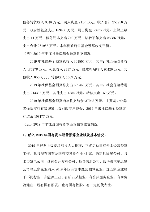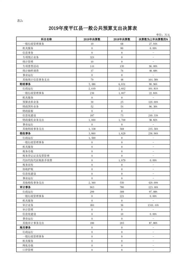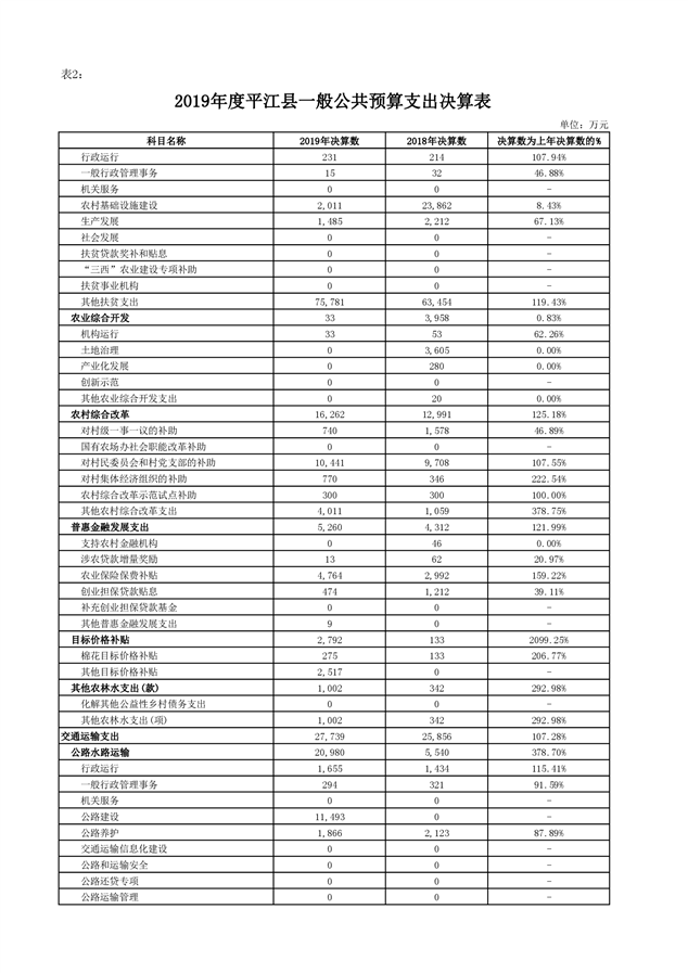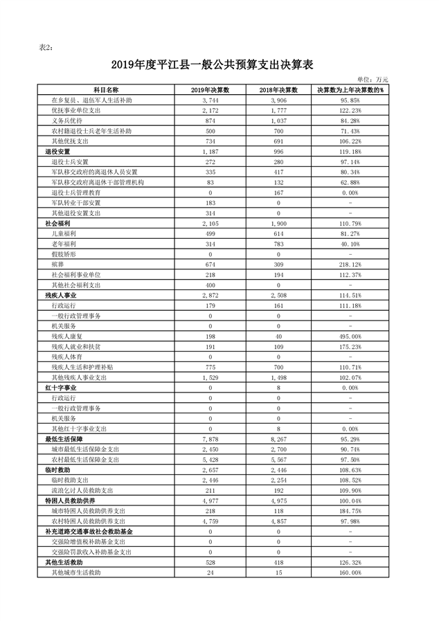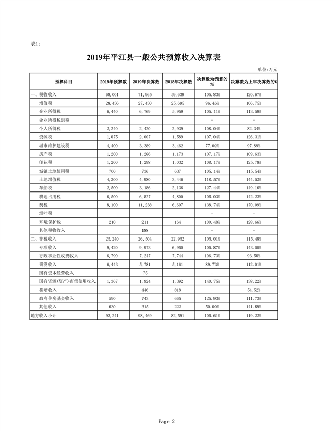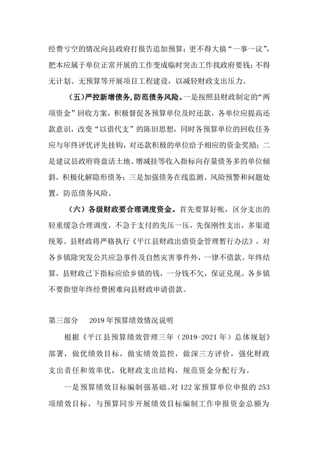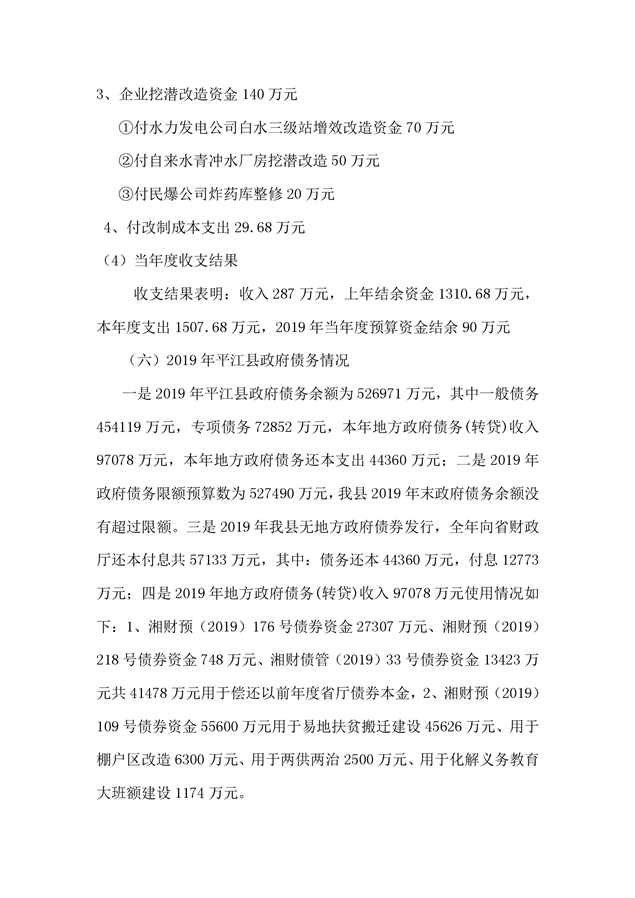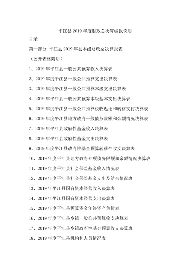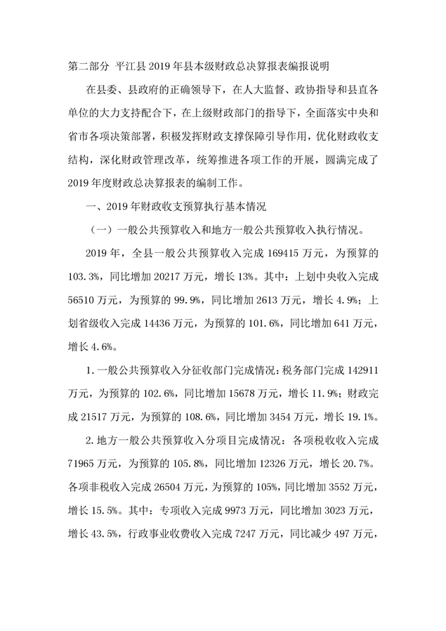 平江县2019年度财政总决算编报说明