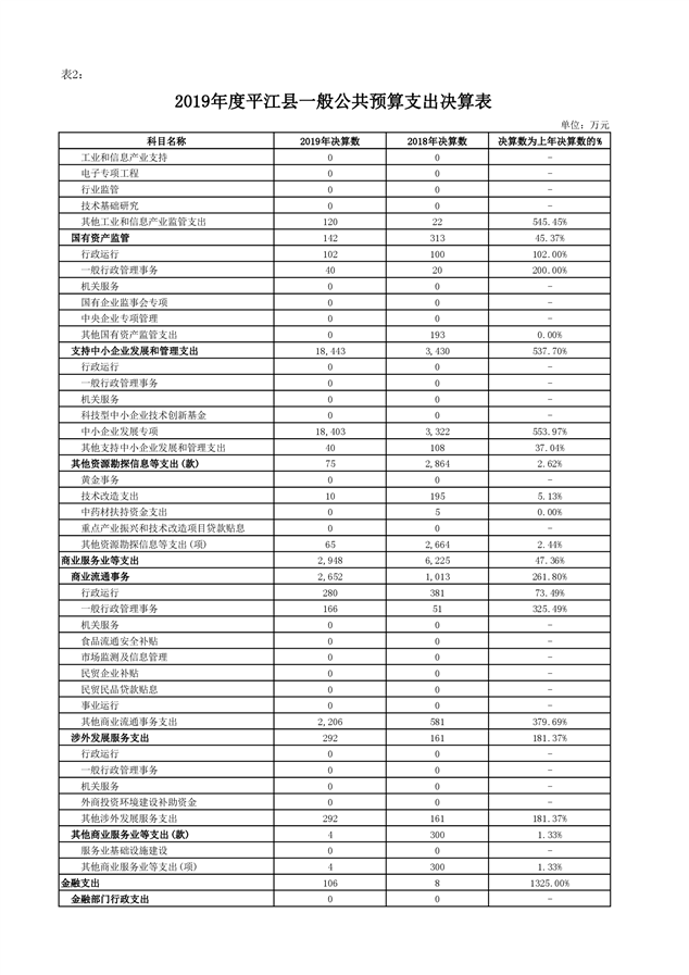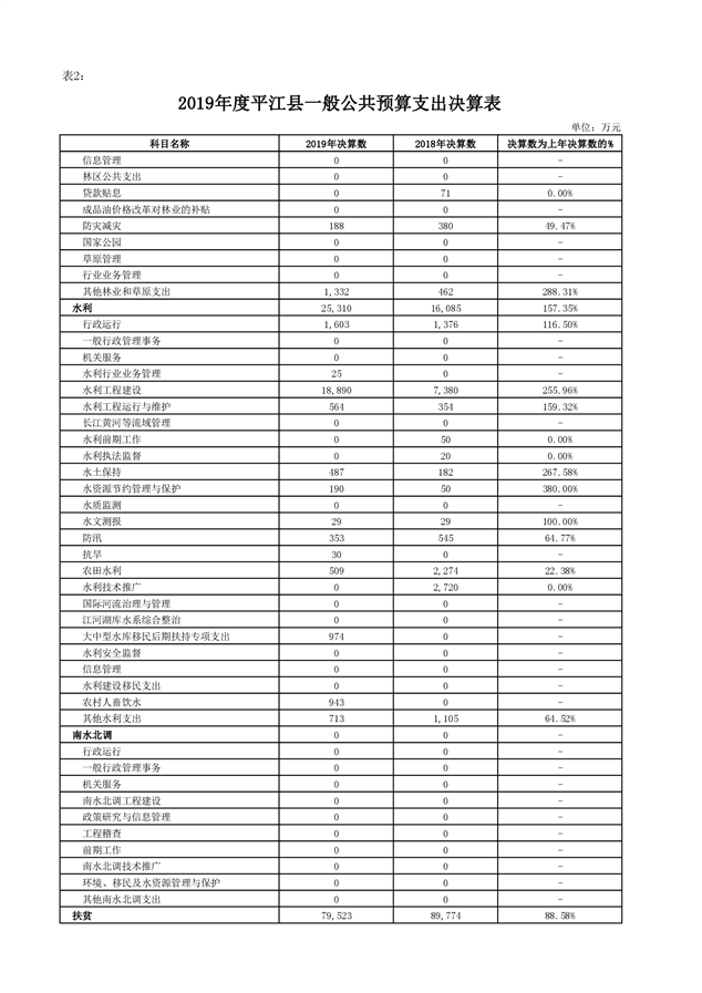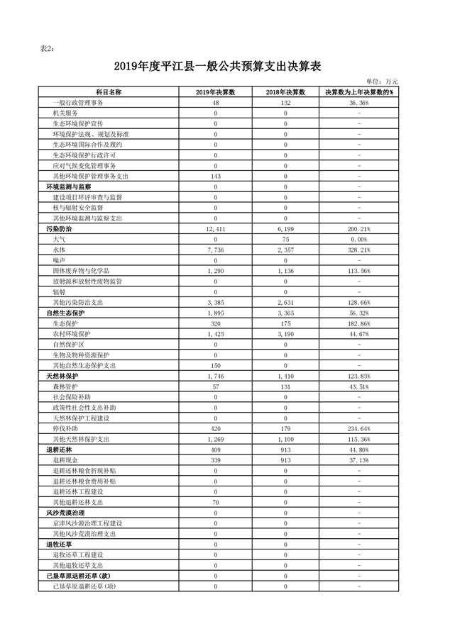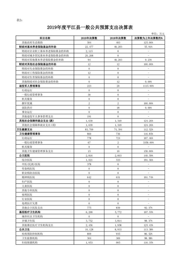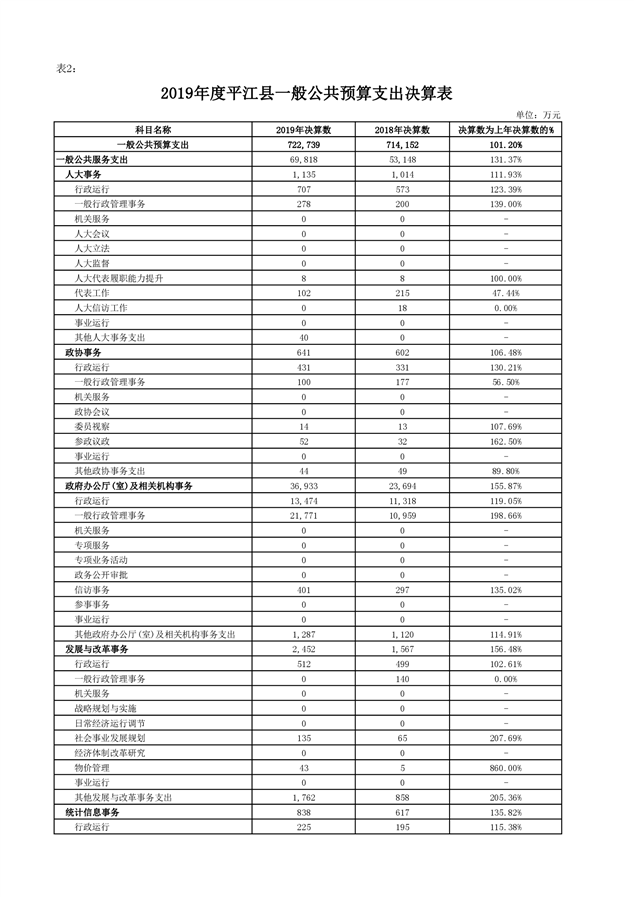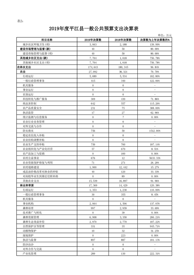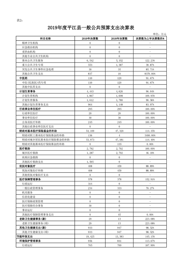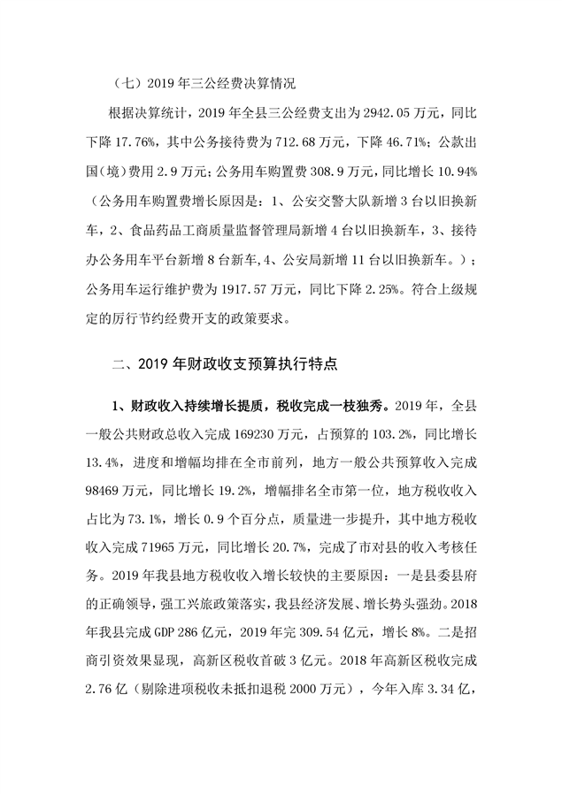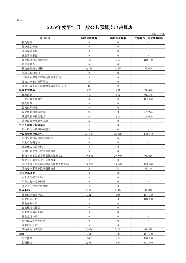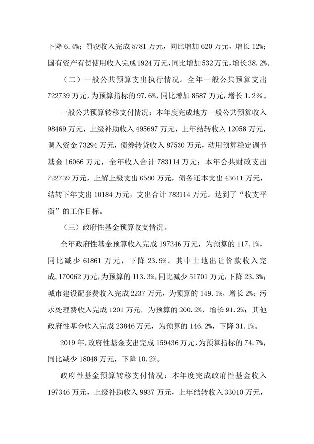 平江县2019年度财政总决算编报说明