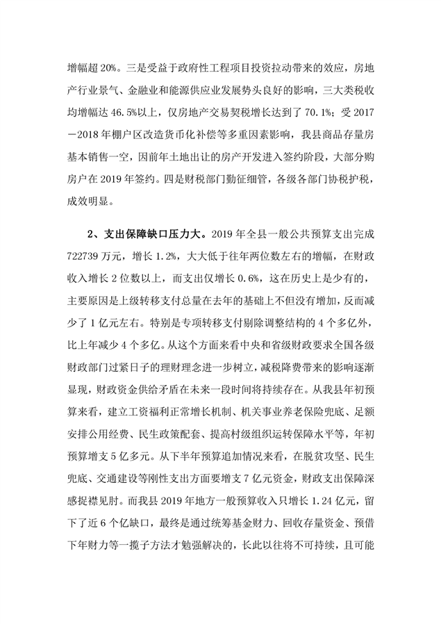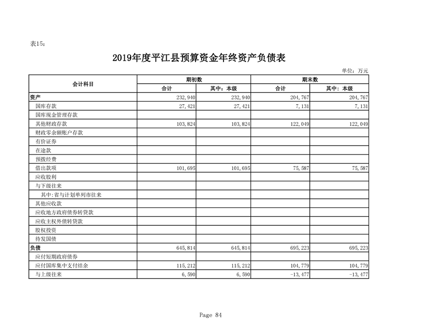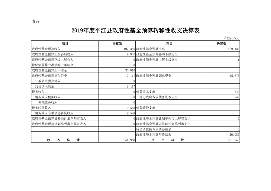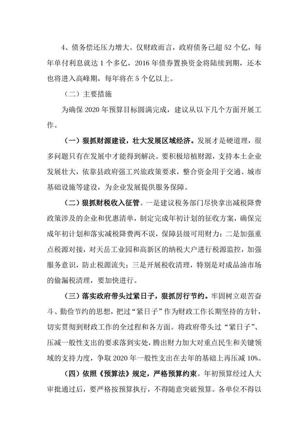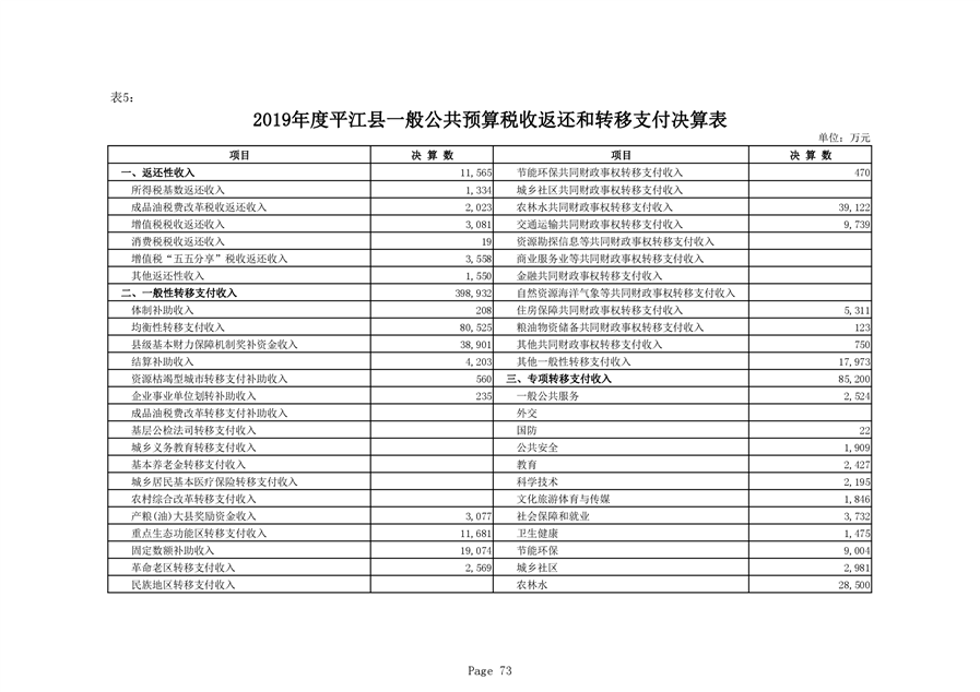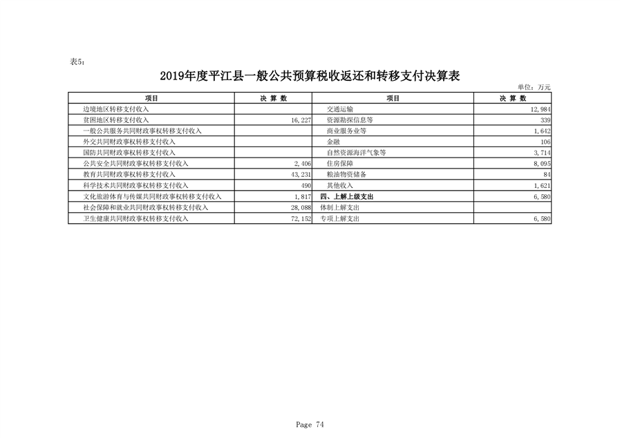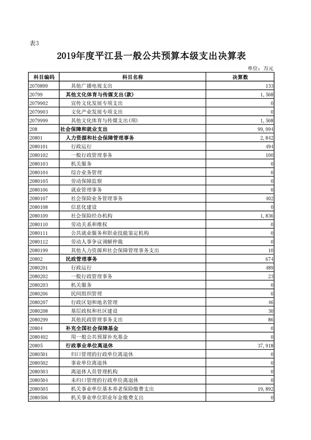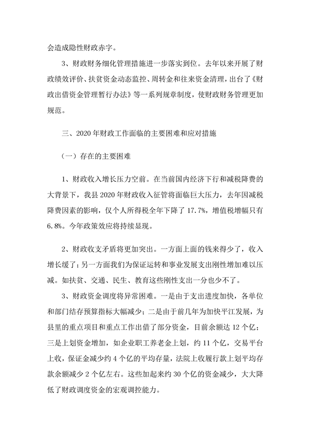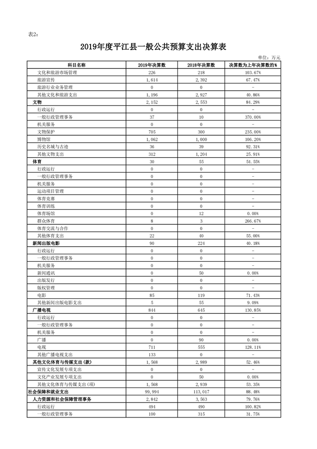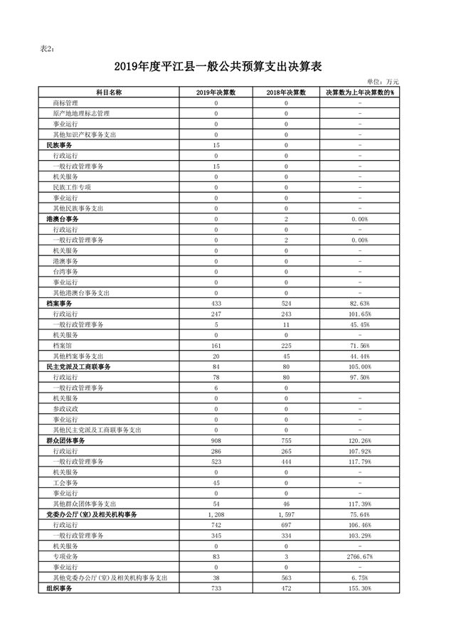 平江县2019年度财政总决算编报说明