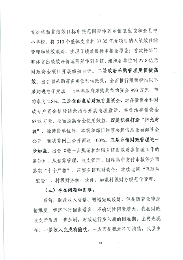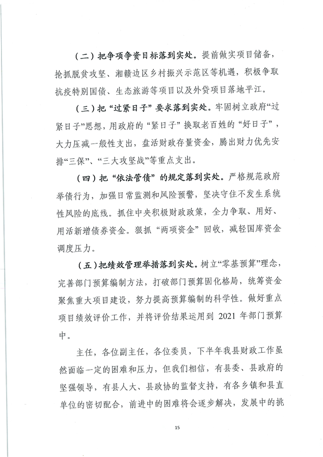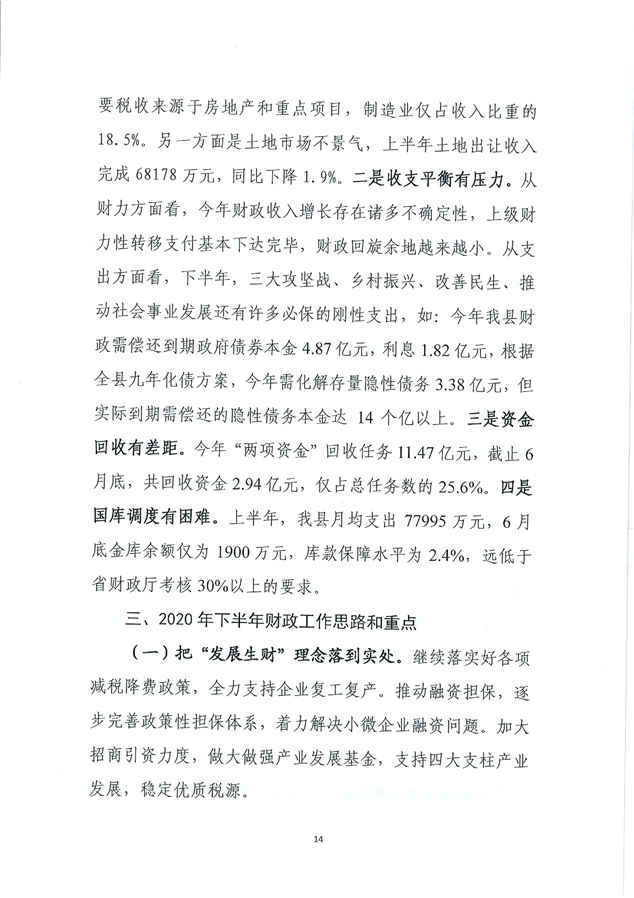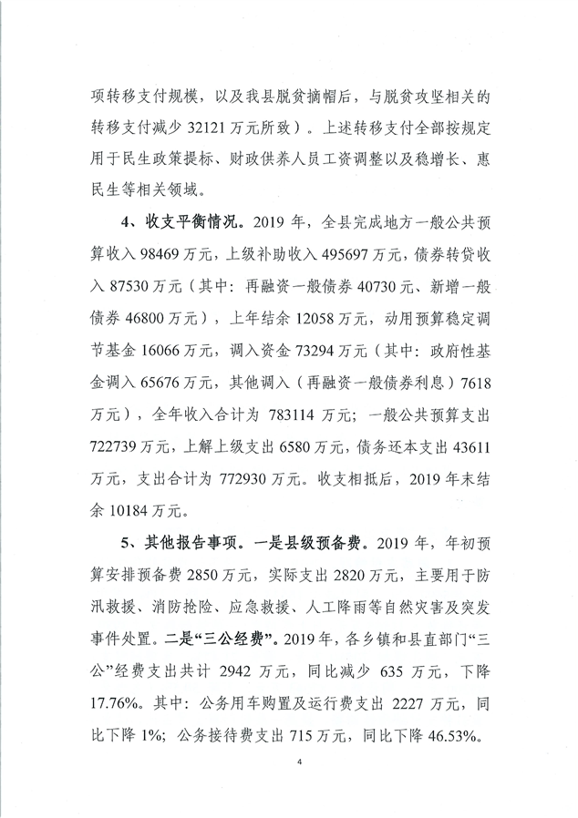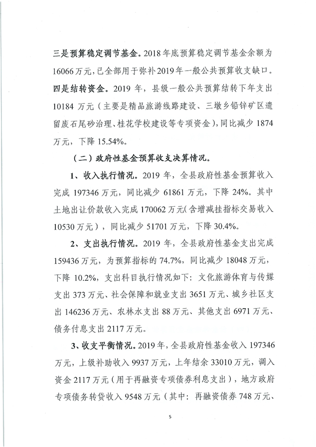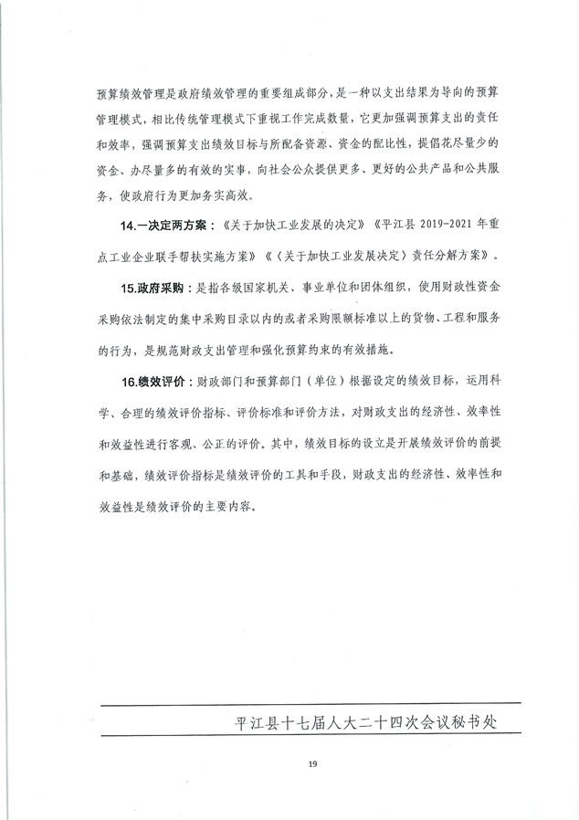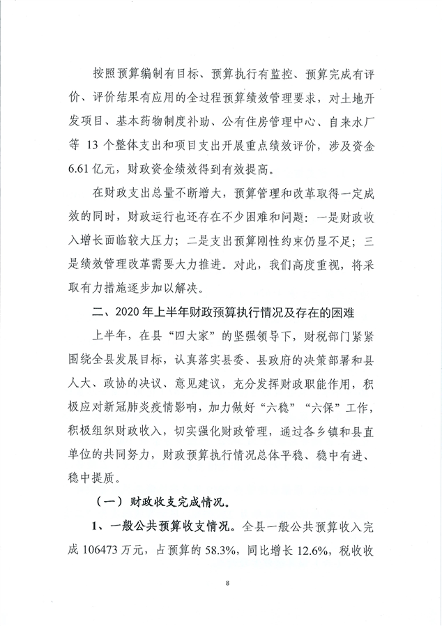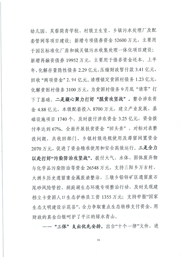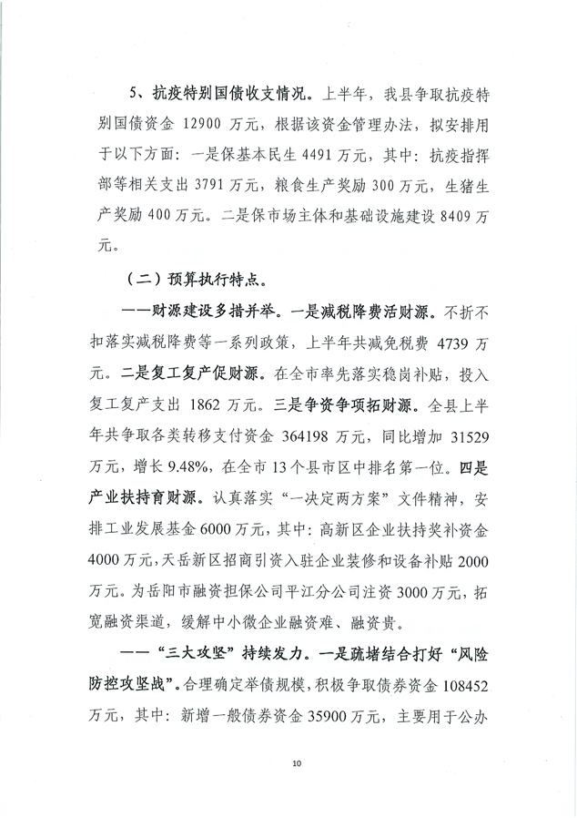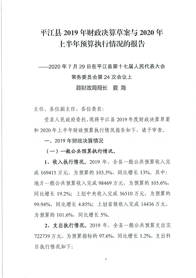 平江县2019年财政决算草案与2020年上半年预算执行情况的报告