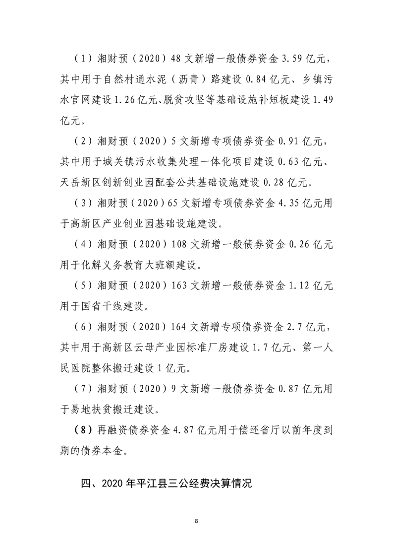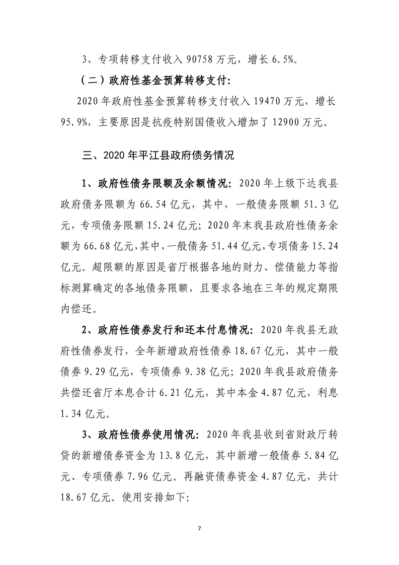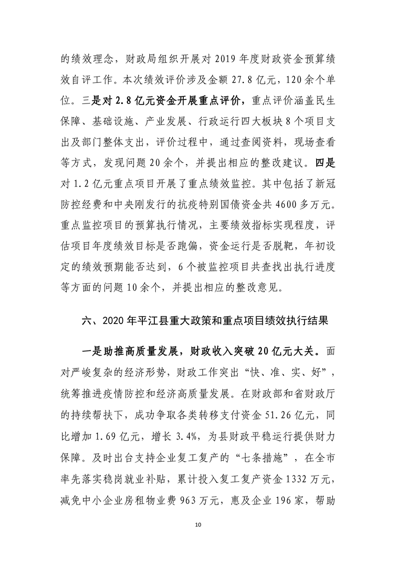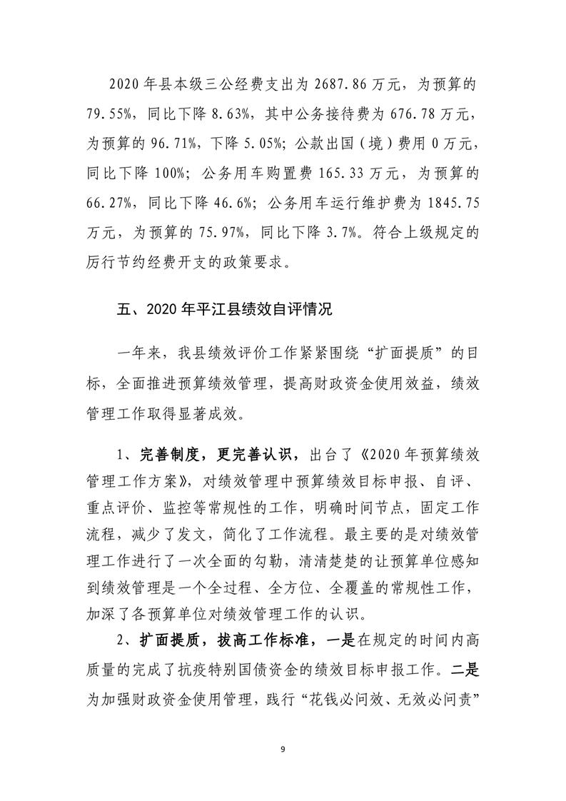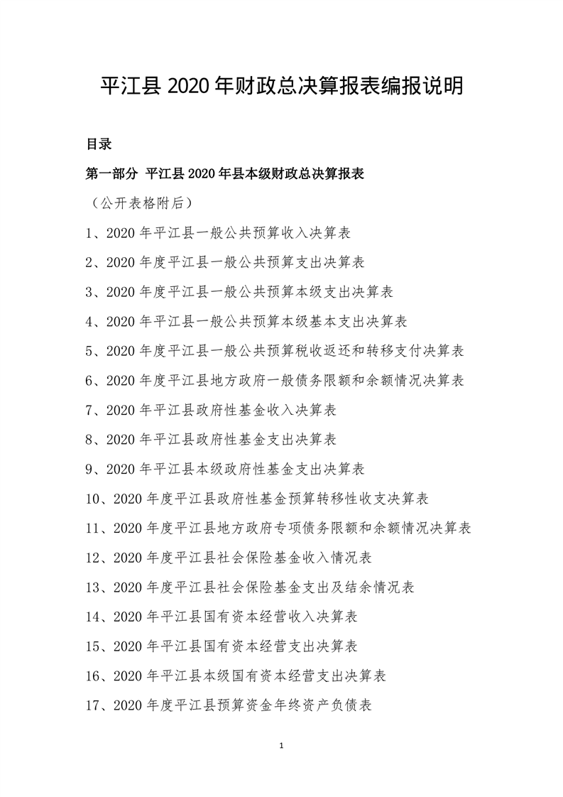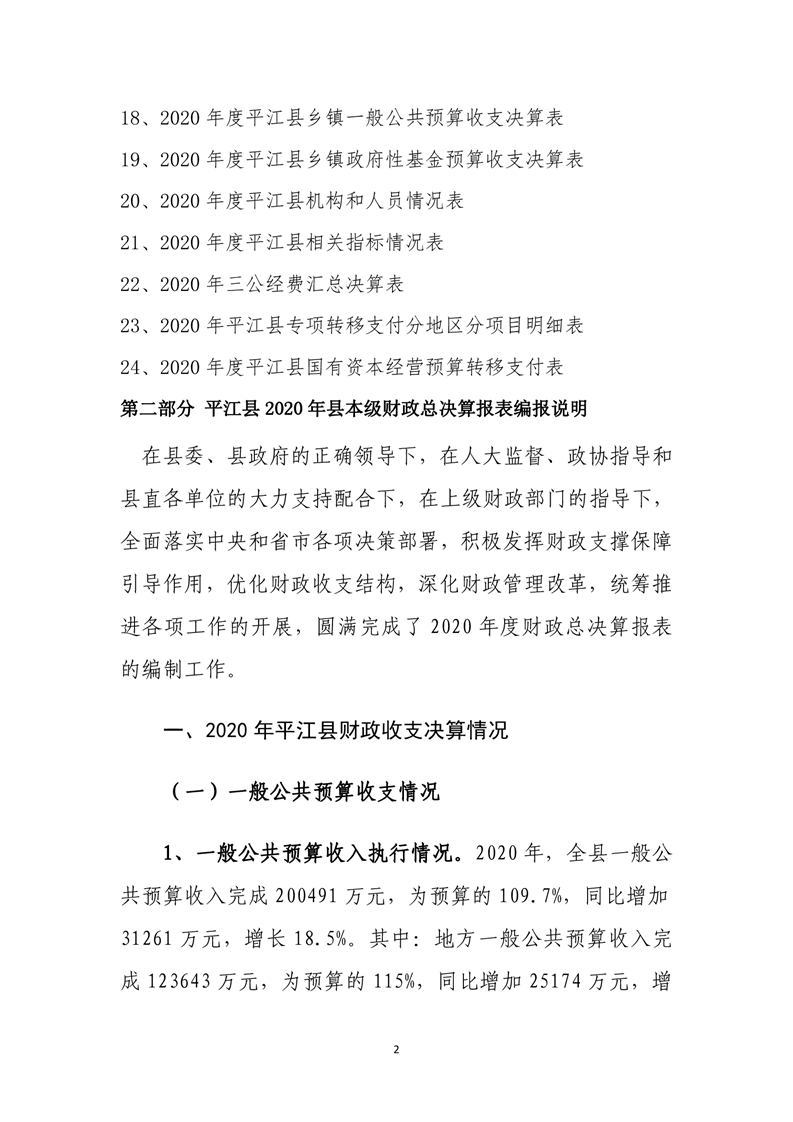 平江县2020年财政总决算编报说明