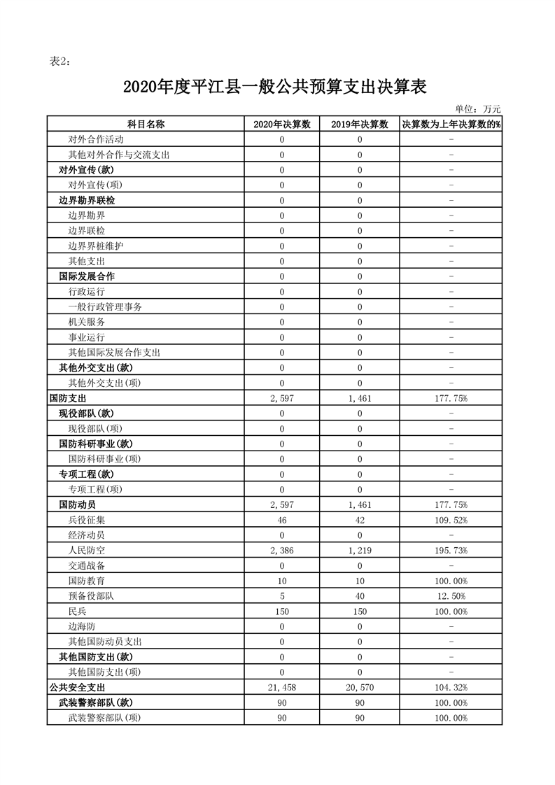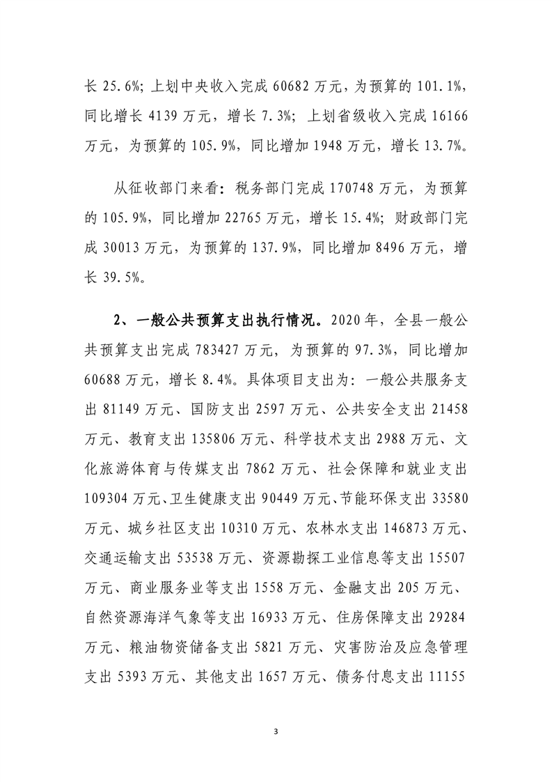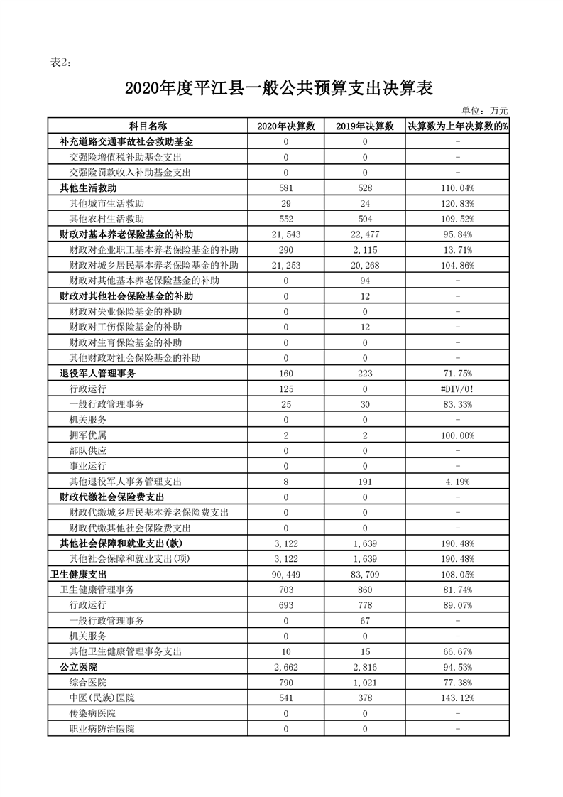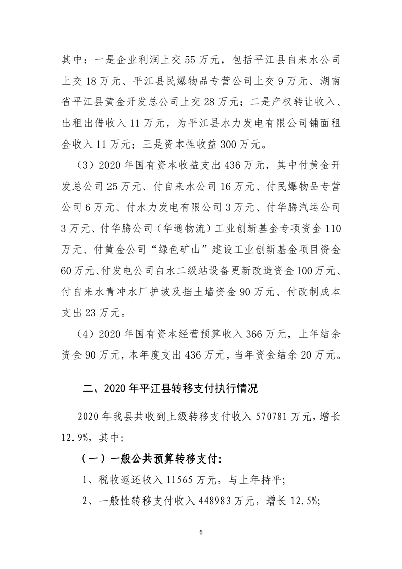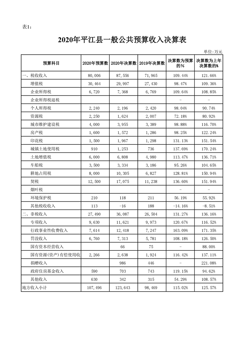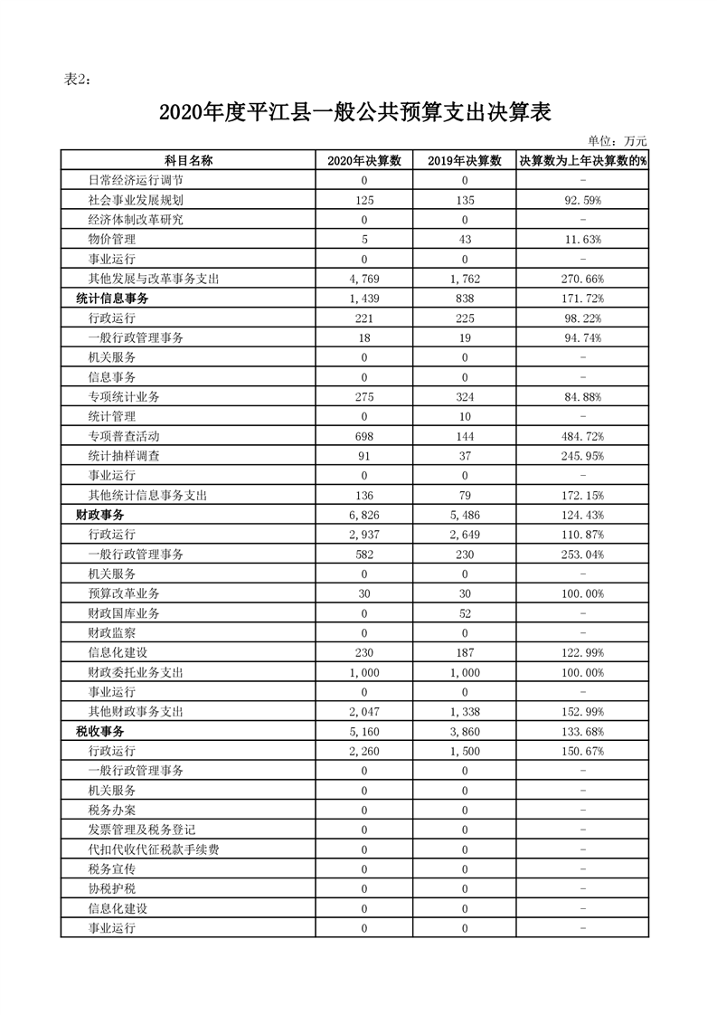 平江县2020年财政总决算编报说明