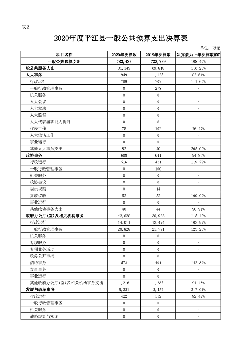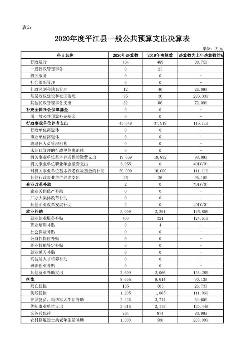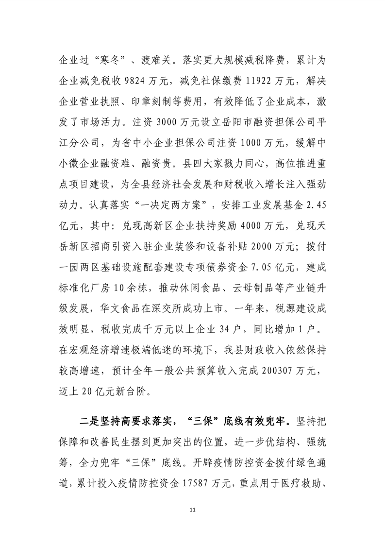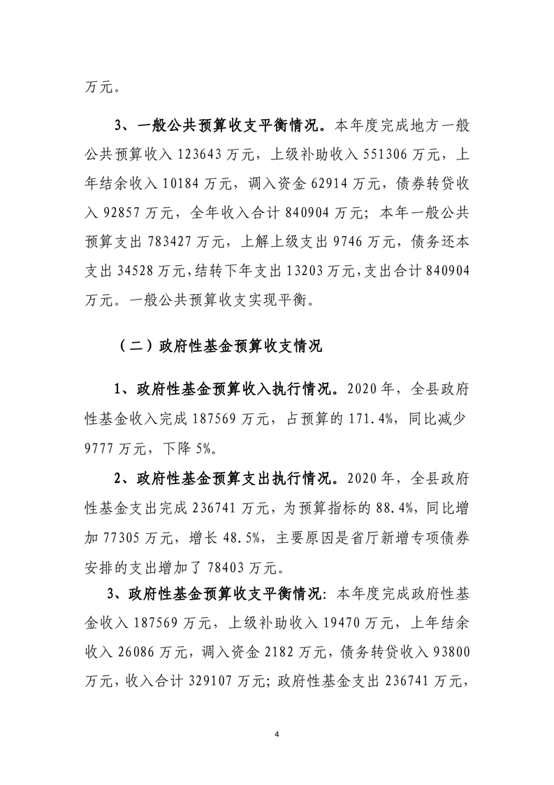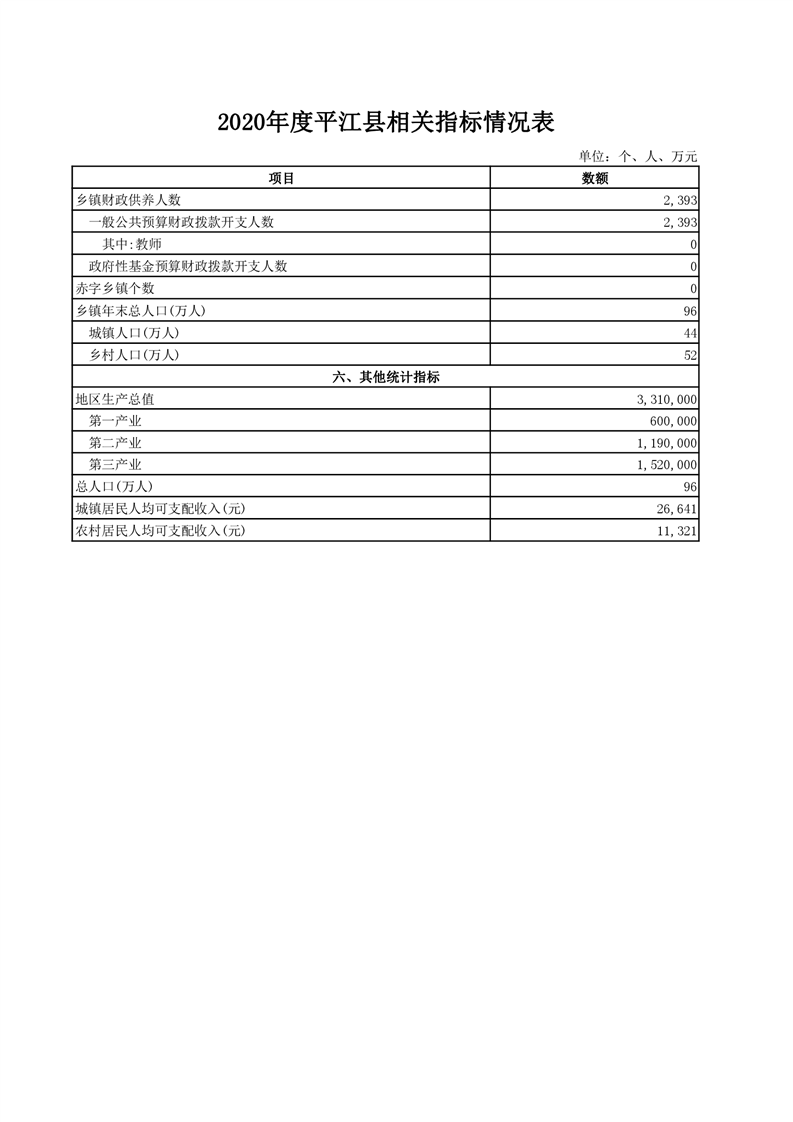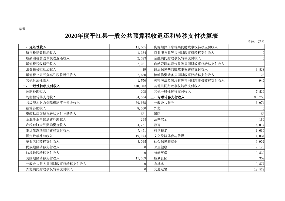 平江县2020年财政总决算编报说明