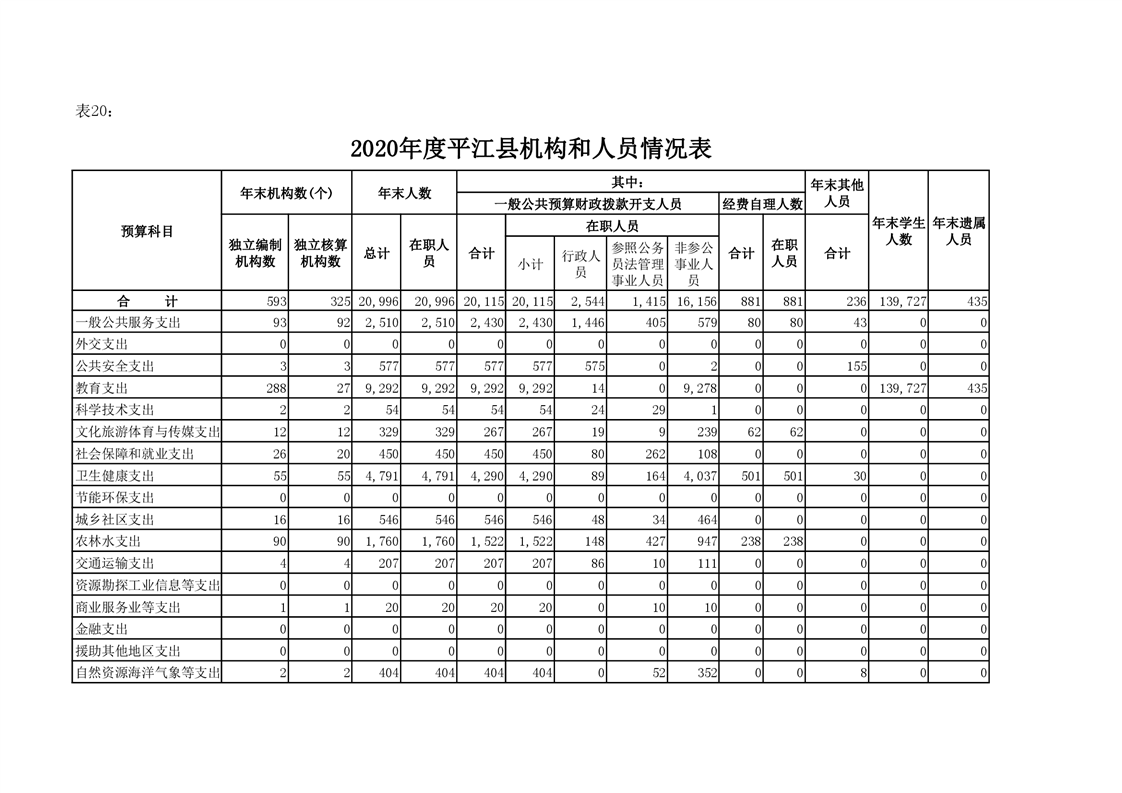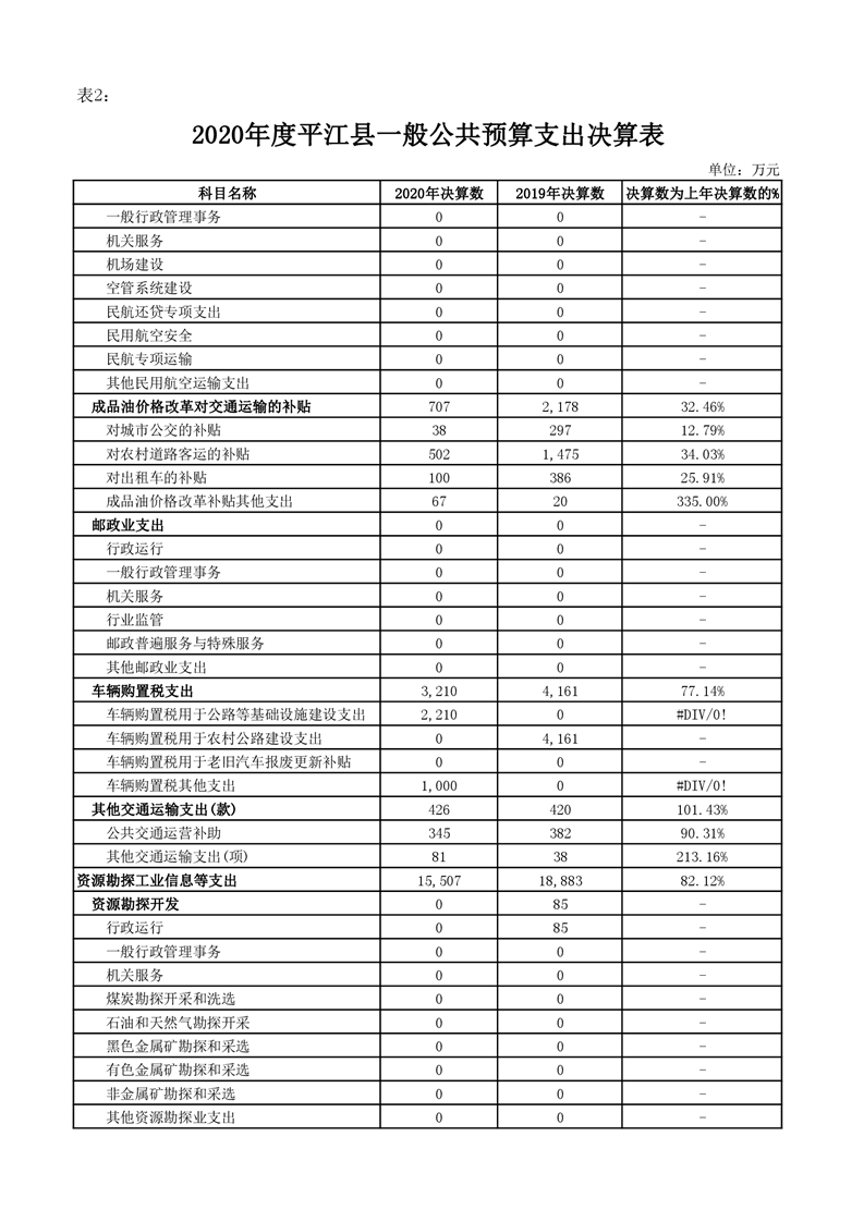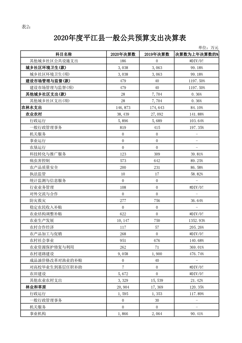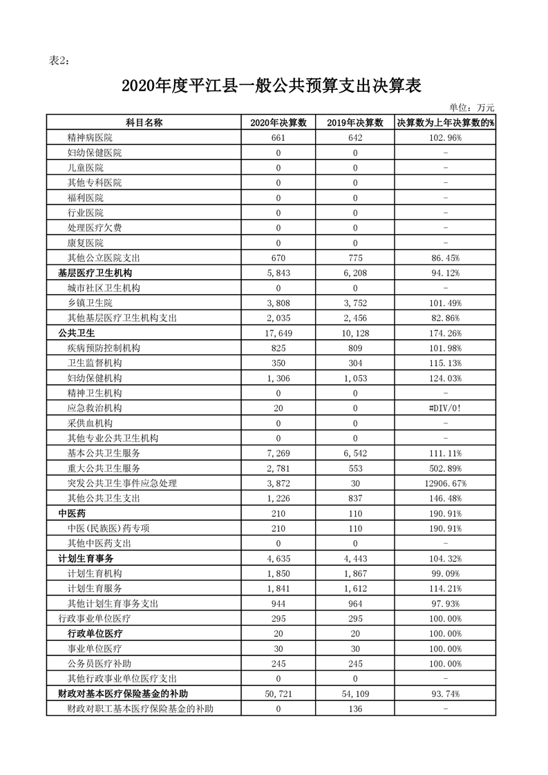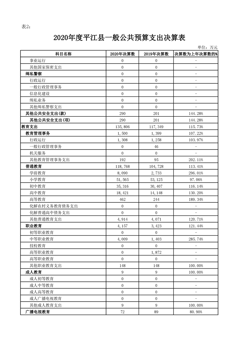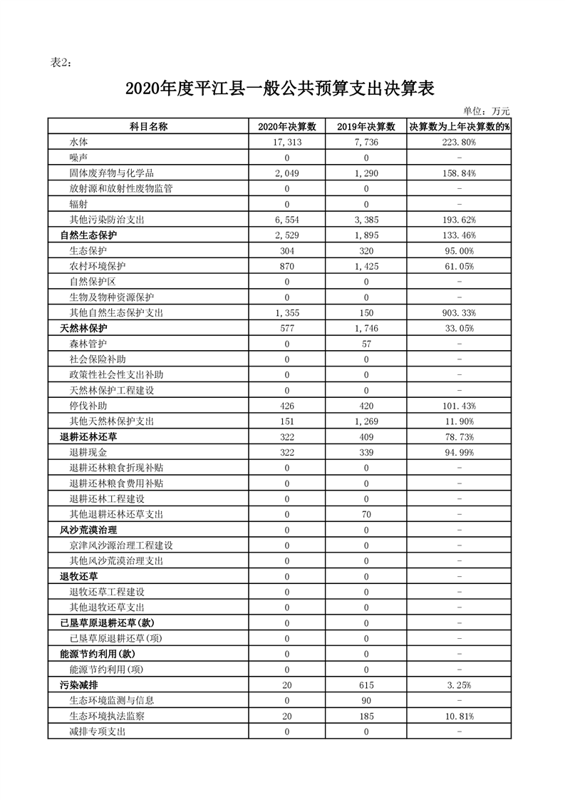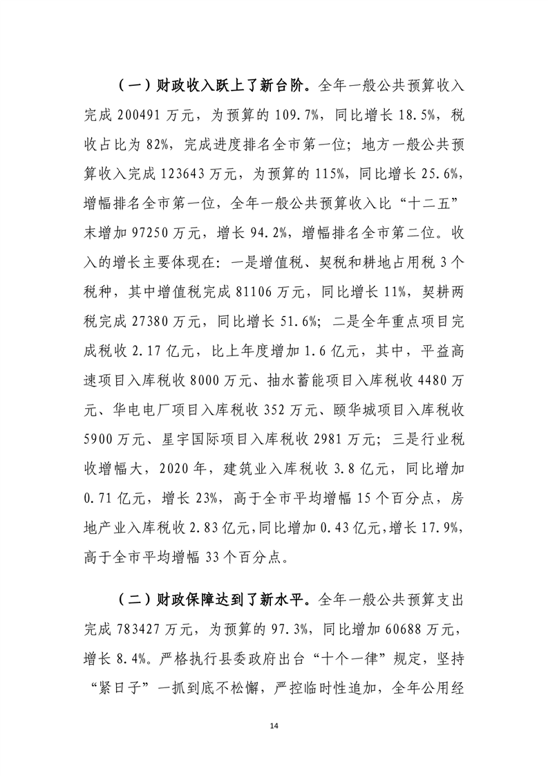 平江县2020年财政总决算编报说明