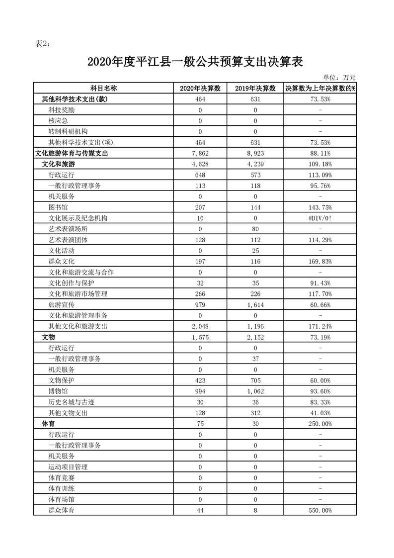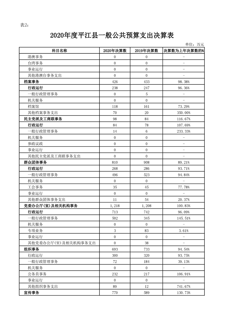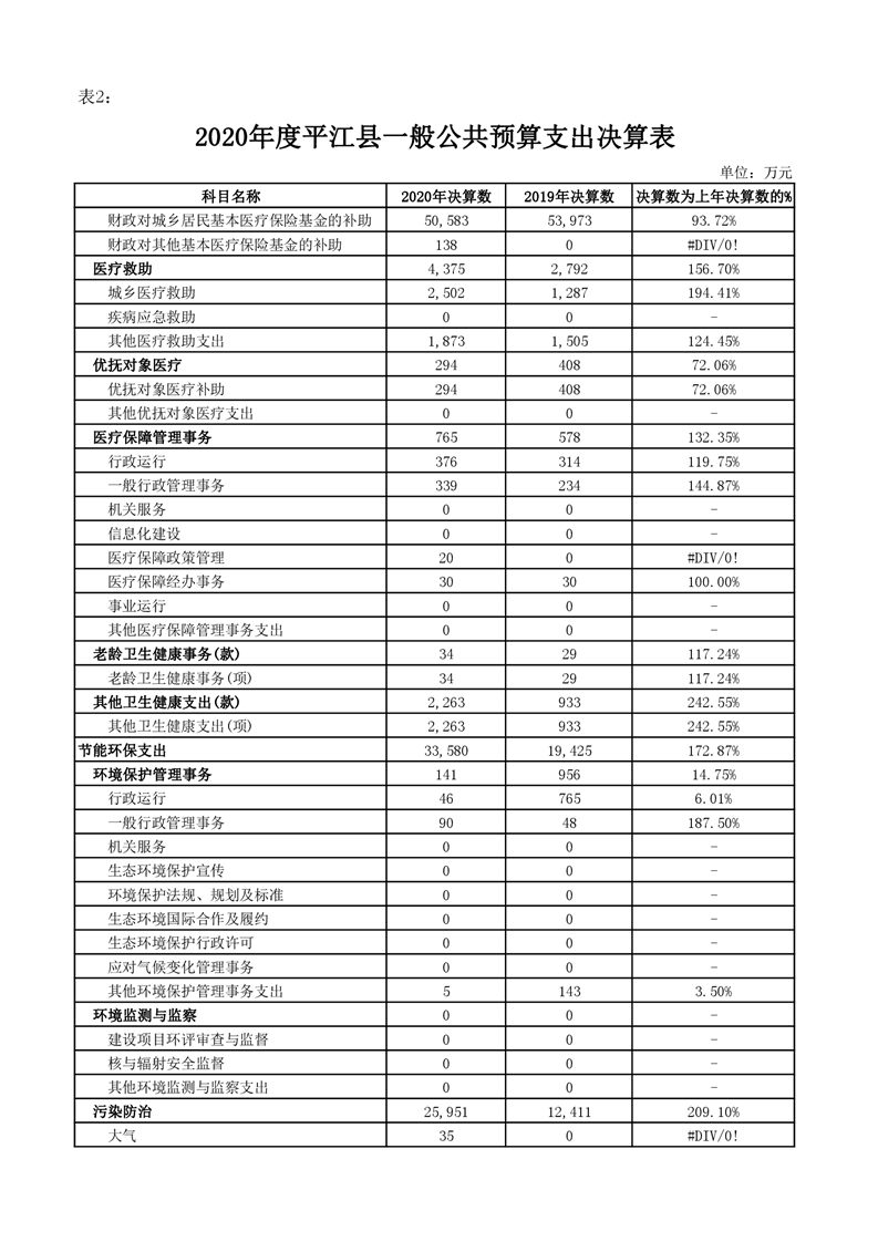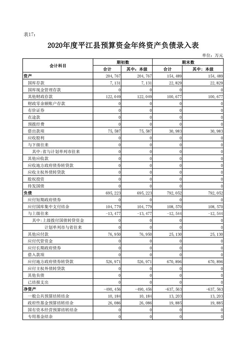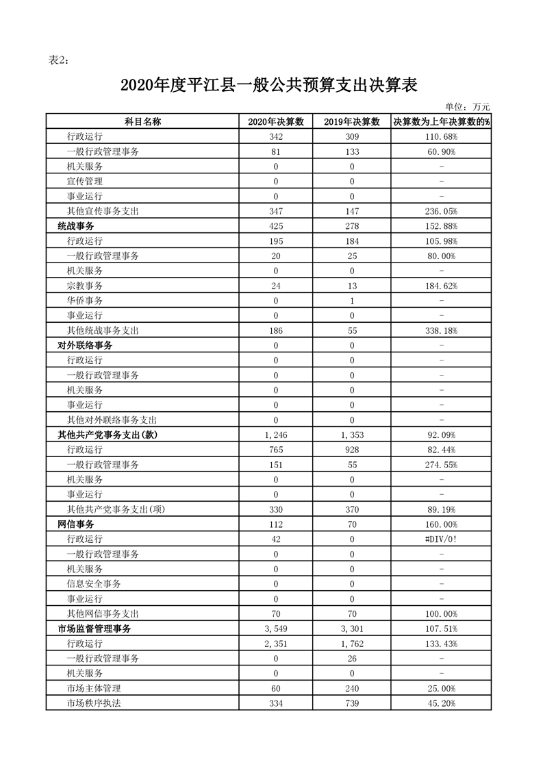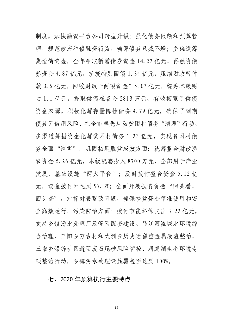 平江县2020年财政总决算编报说明