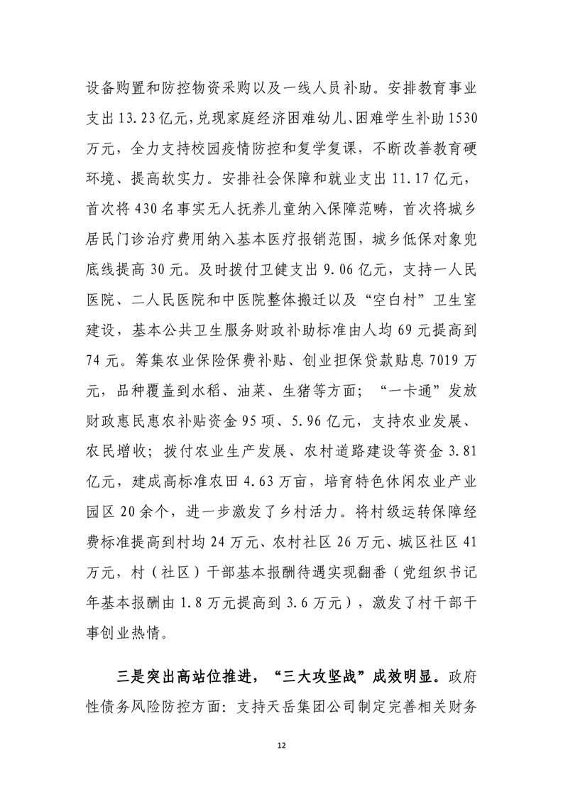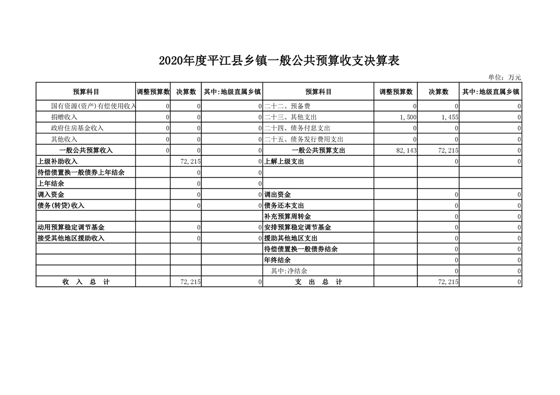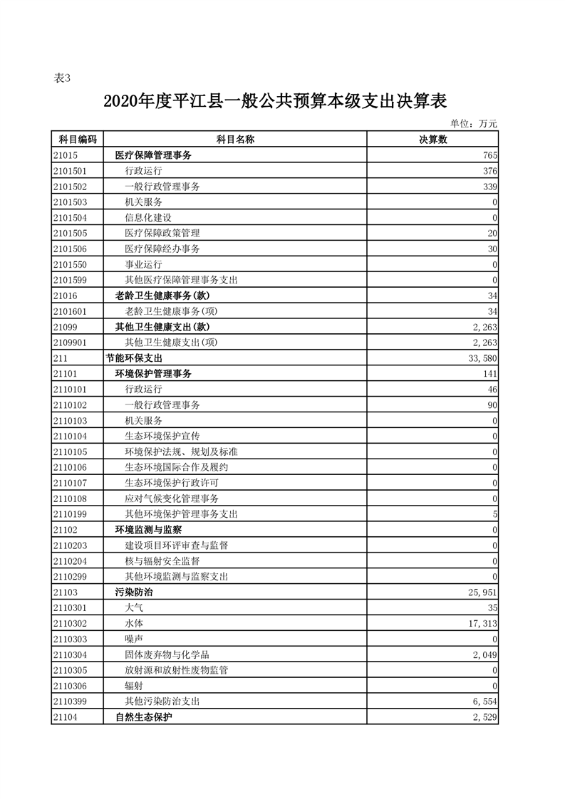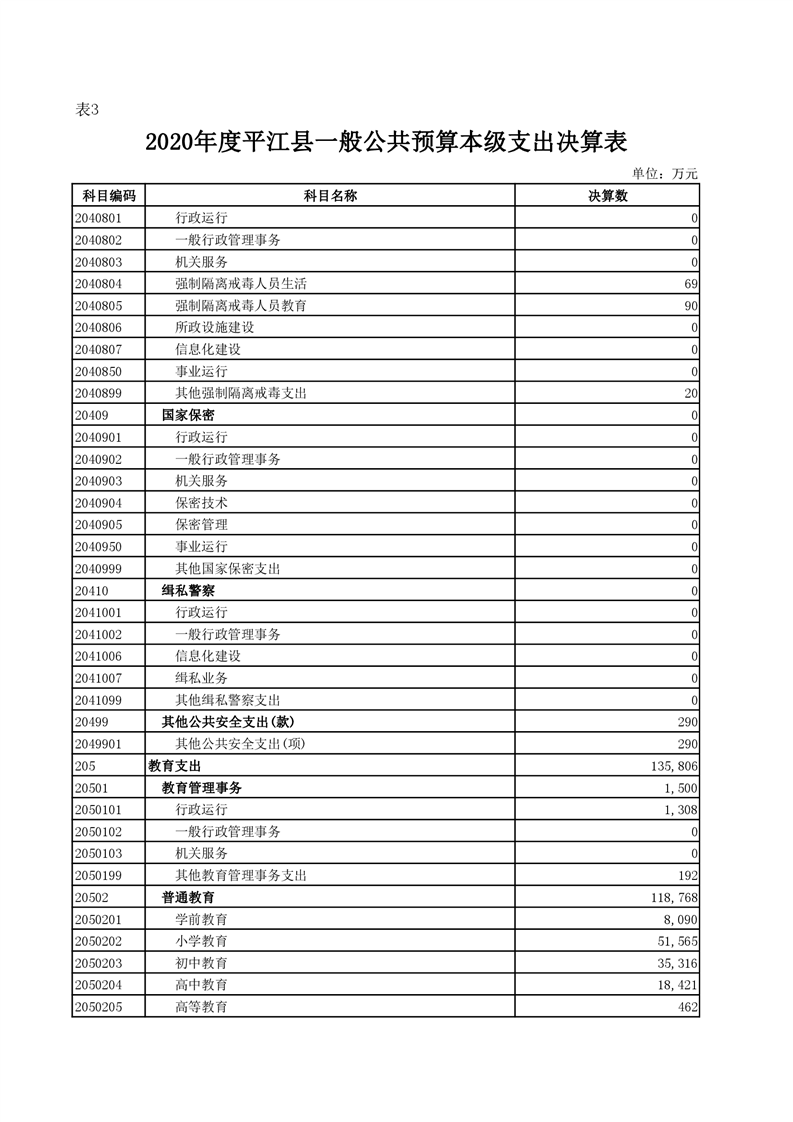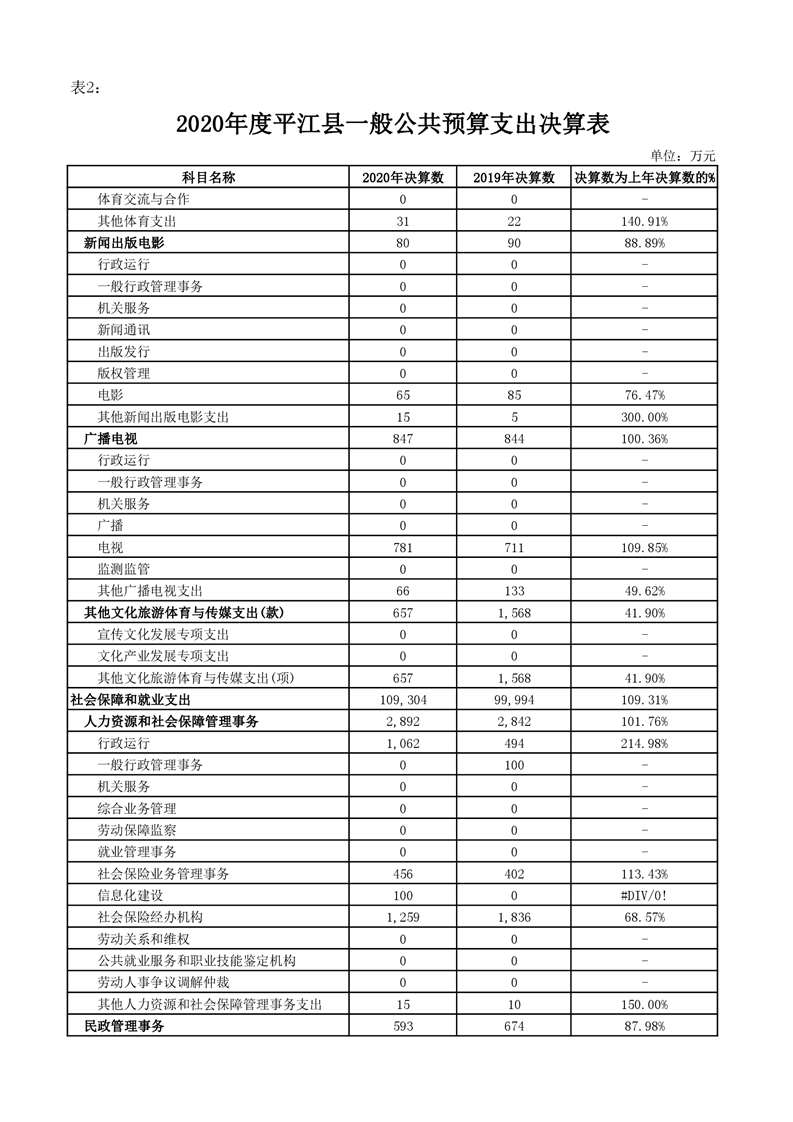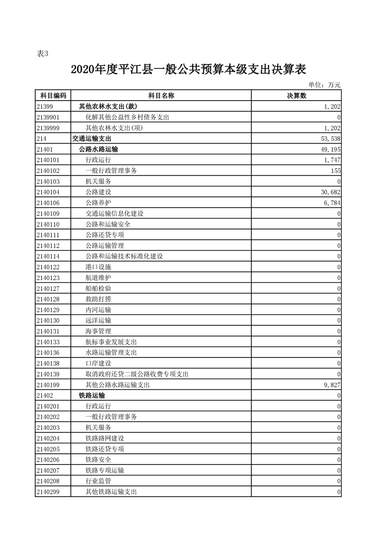 平江县2020年财政总决算编报说明