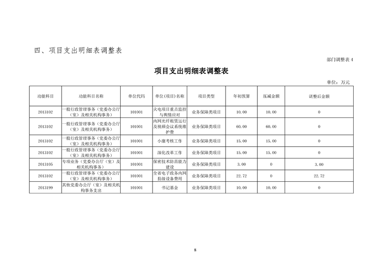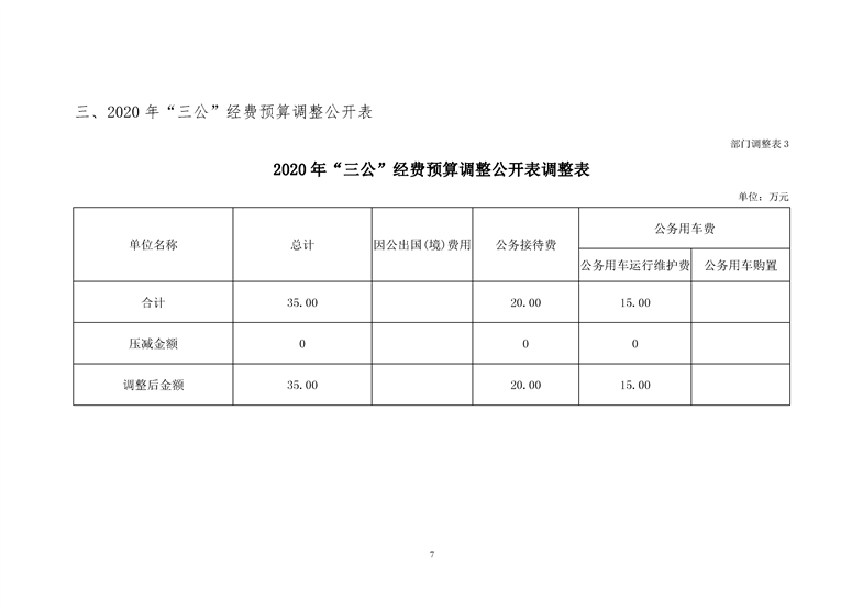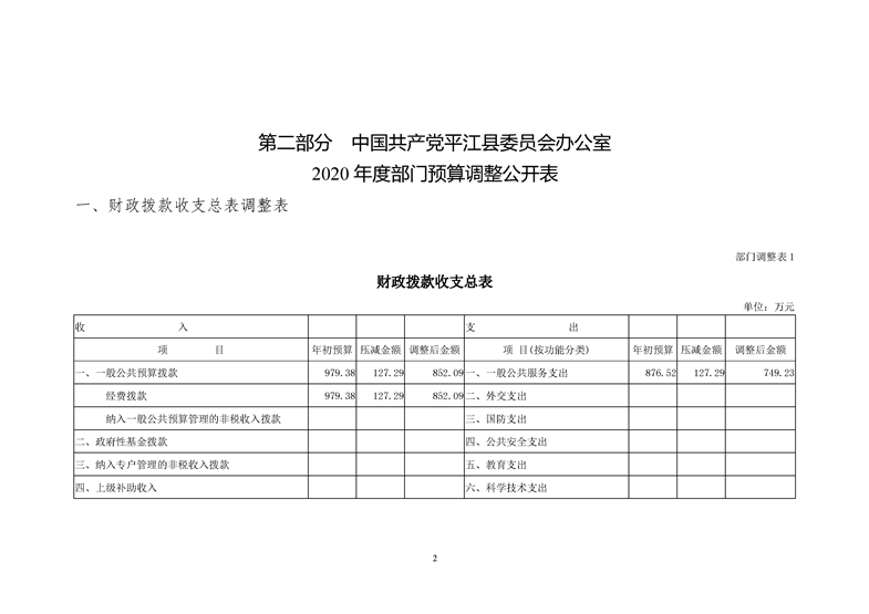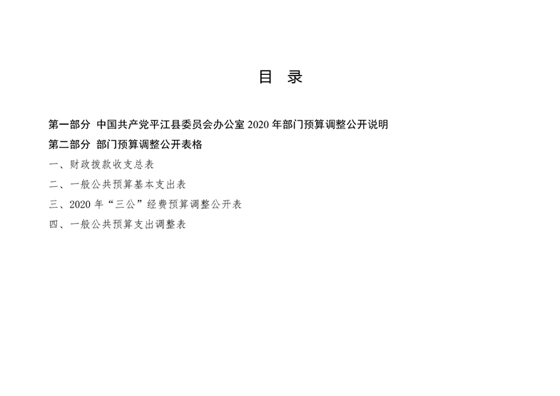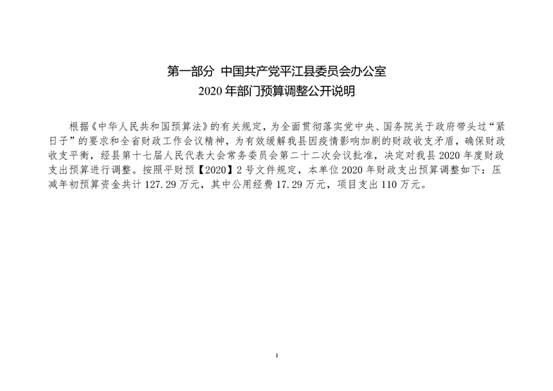 平江县委员会办公室2020年部门预算调整