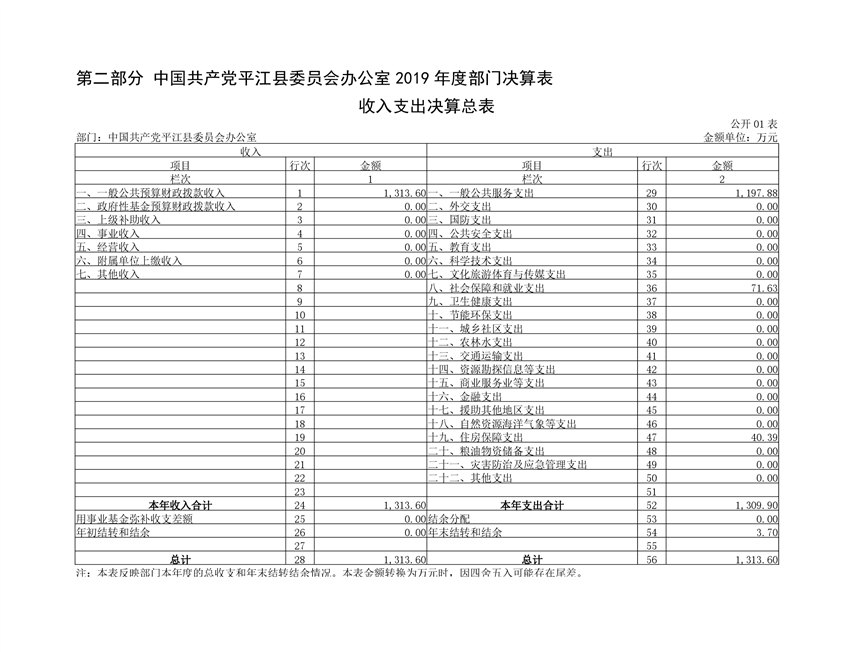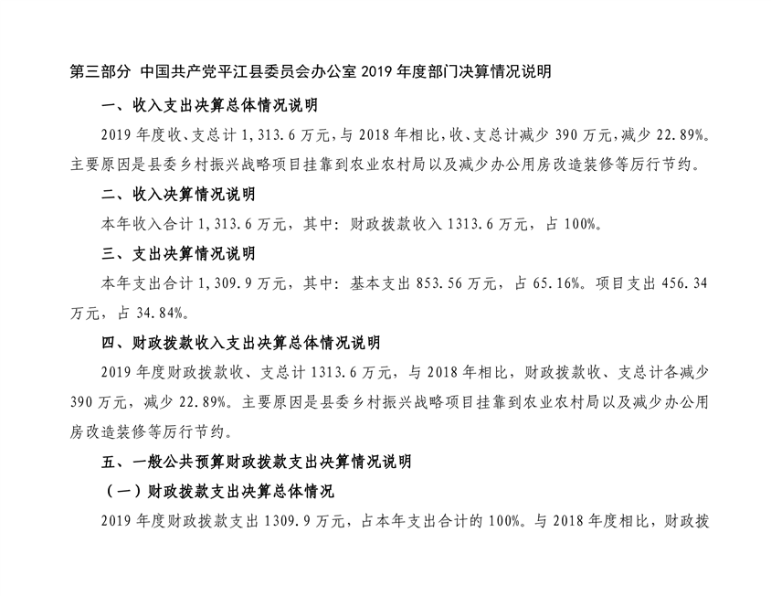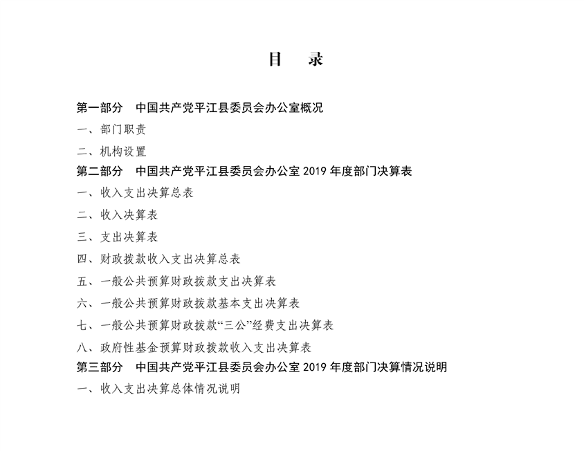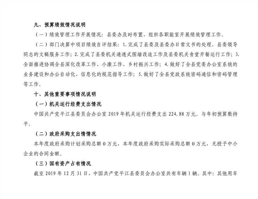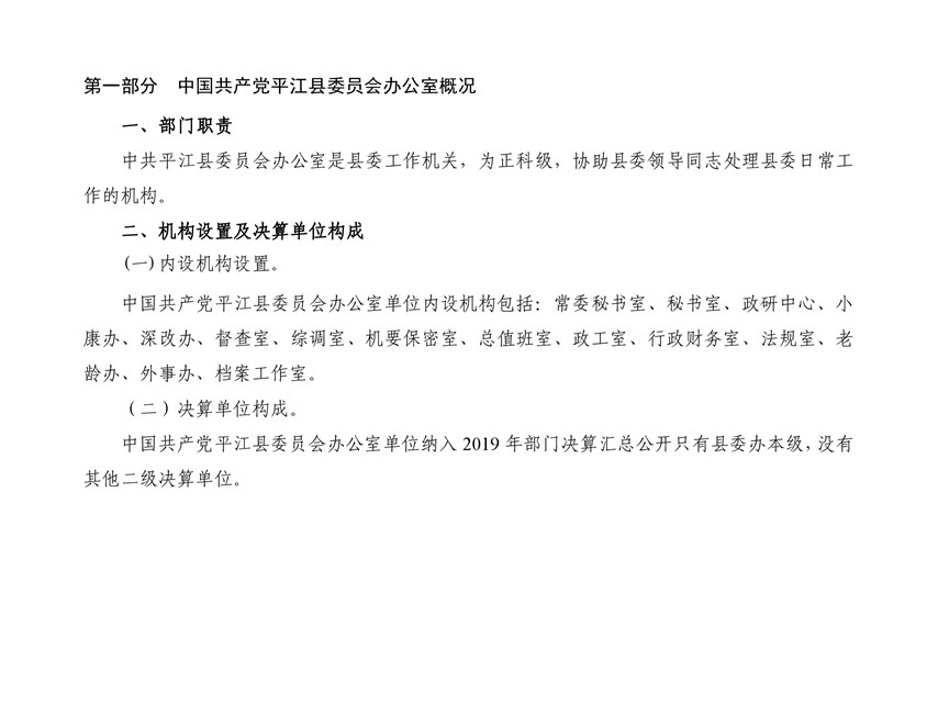 中共平江县委员会办公室2019年度部门决算