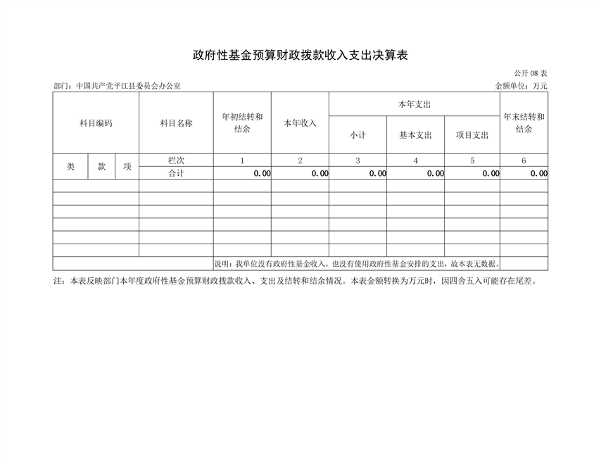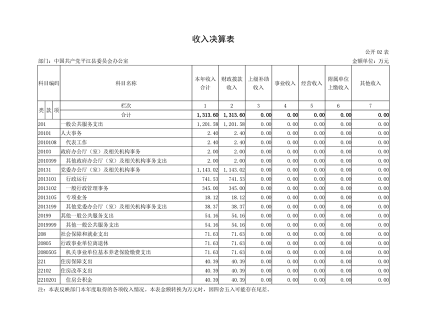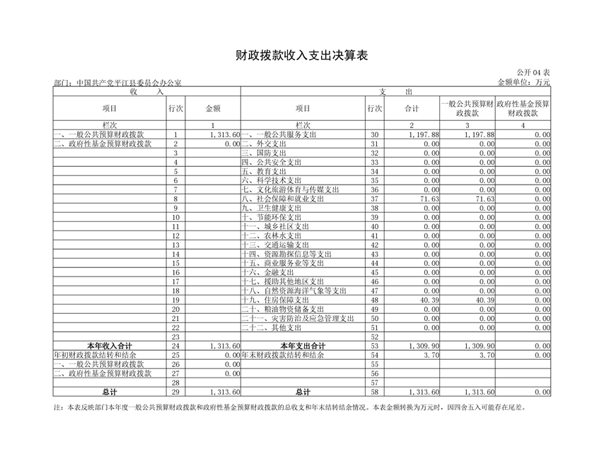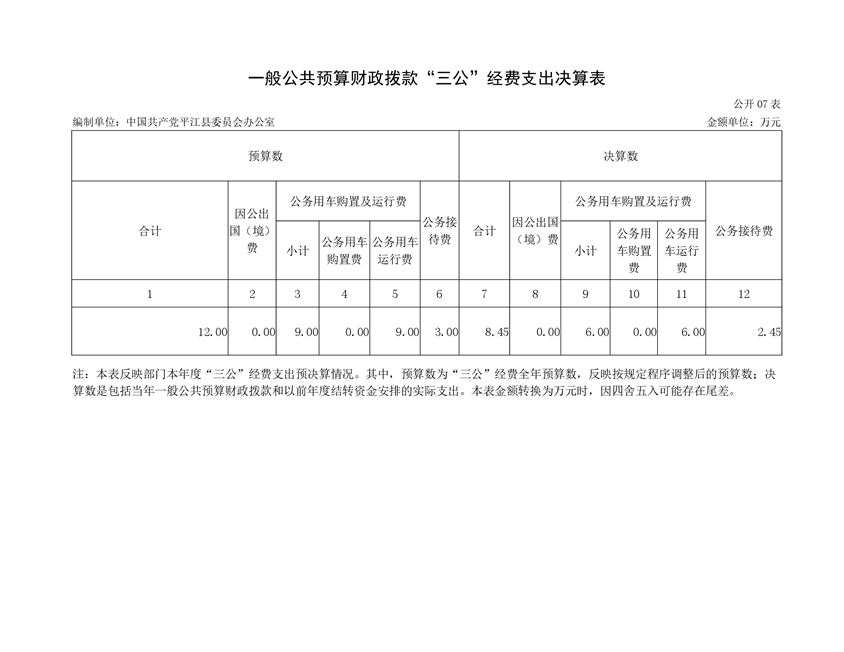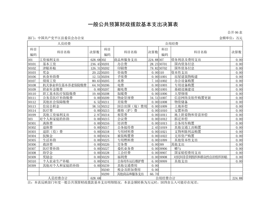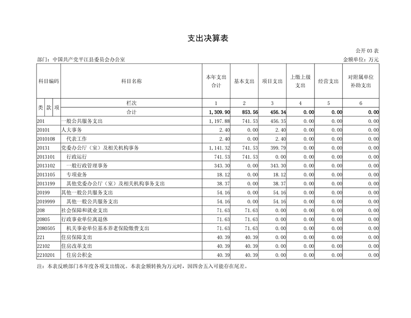 中共平江县委员会办公室2019年度部门决算