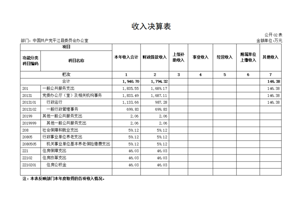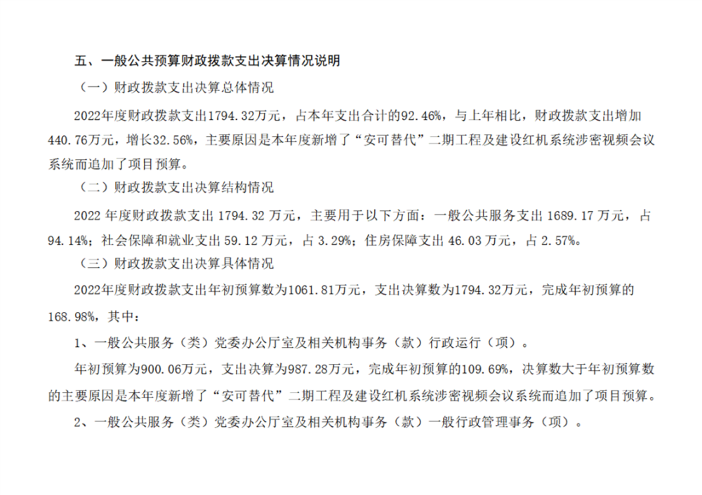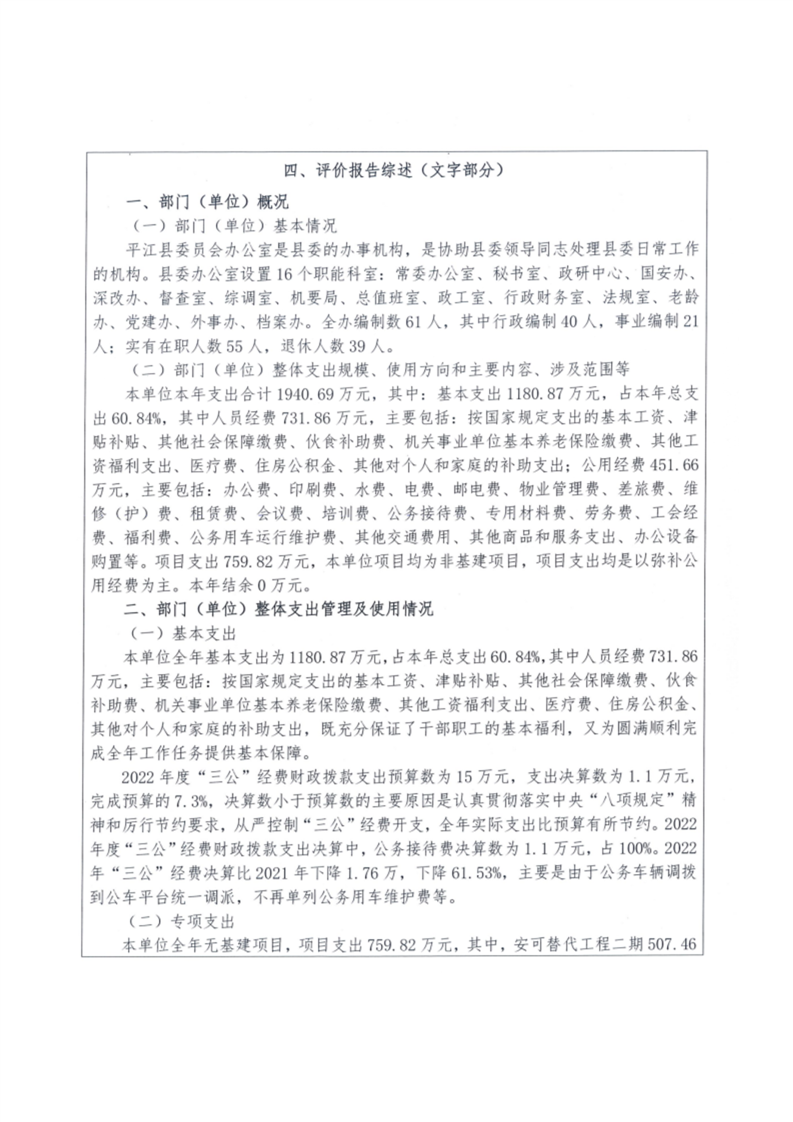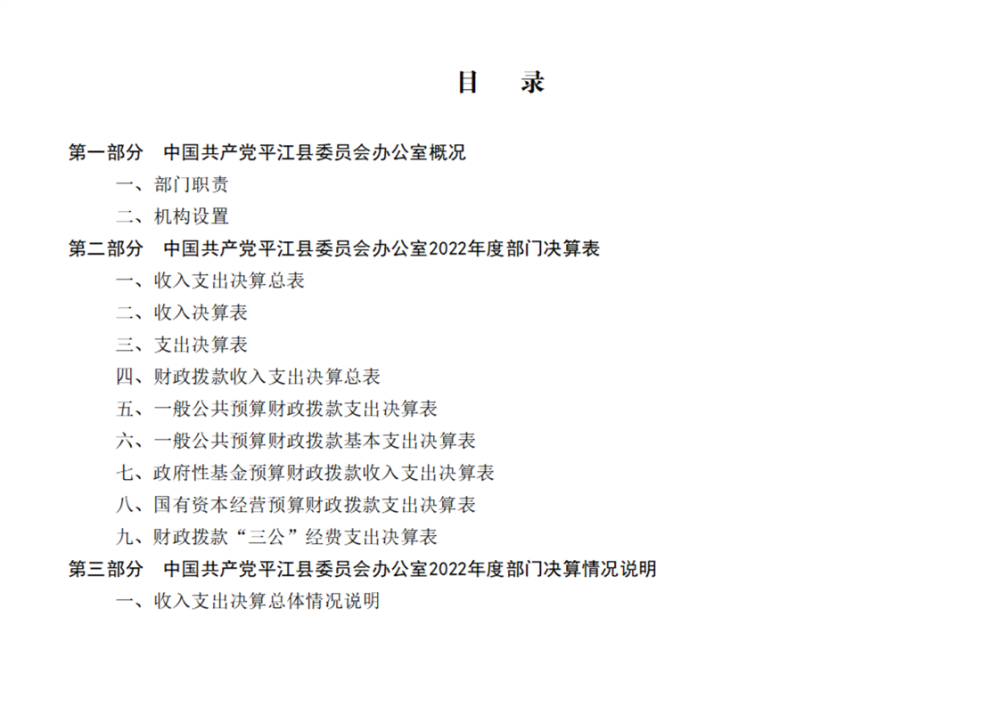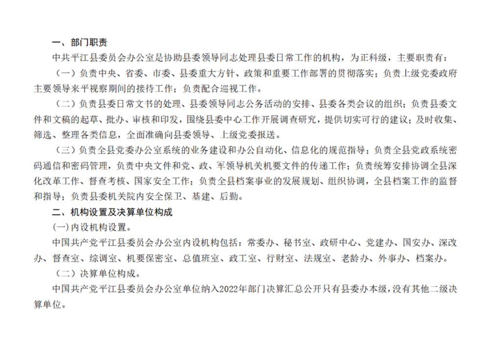 中共平江县委办公室2022年部门决算