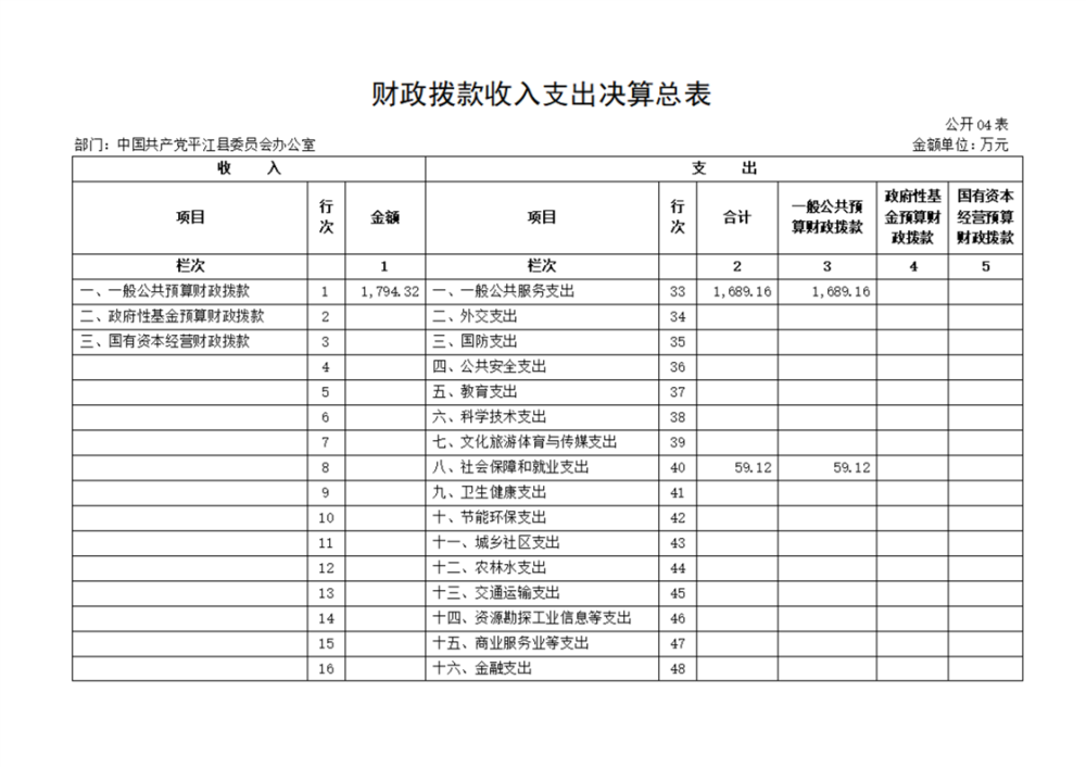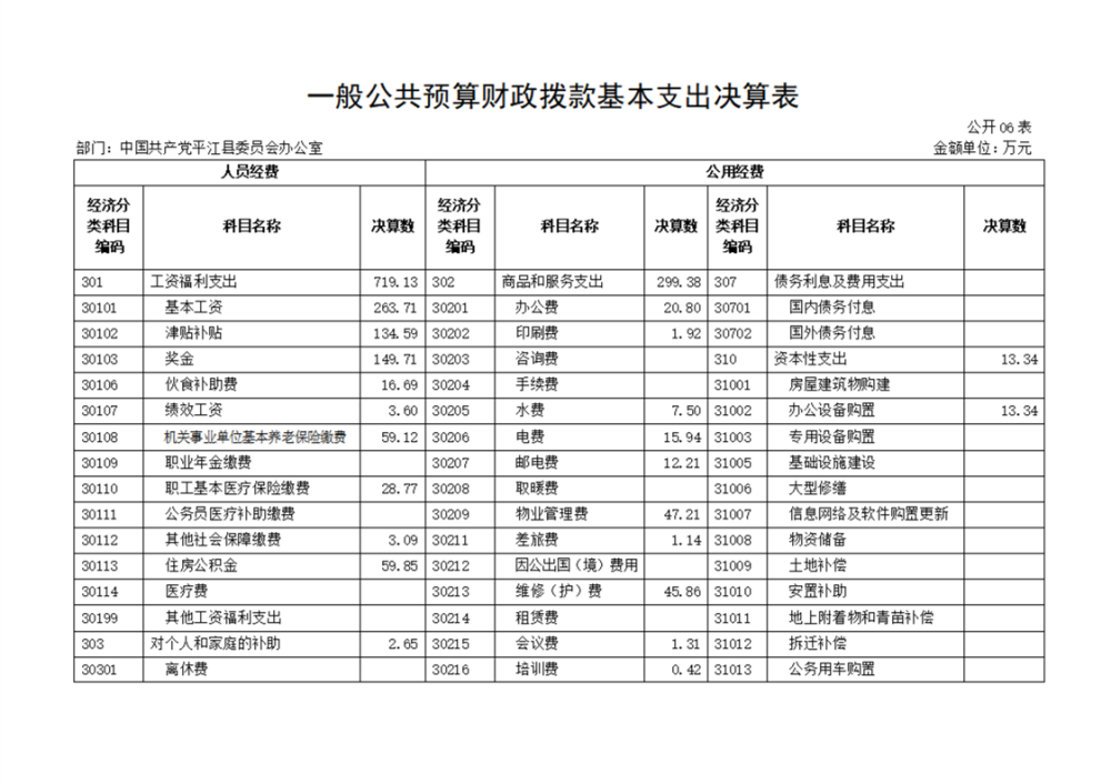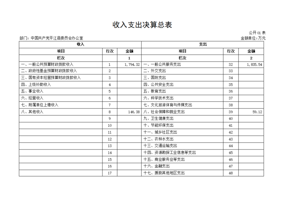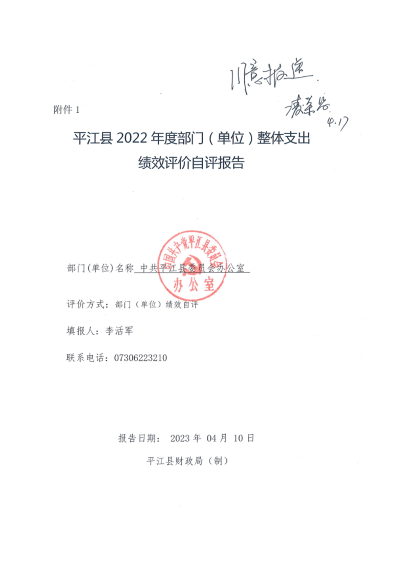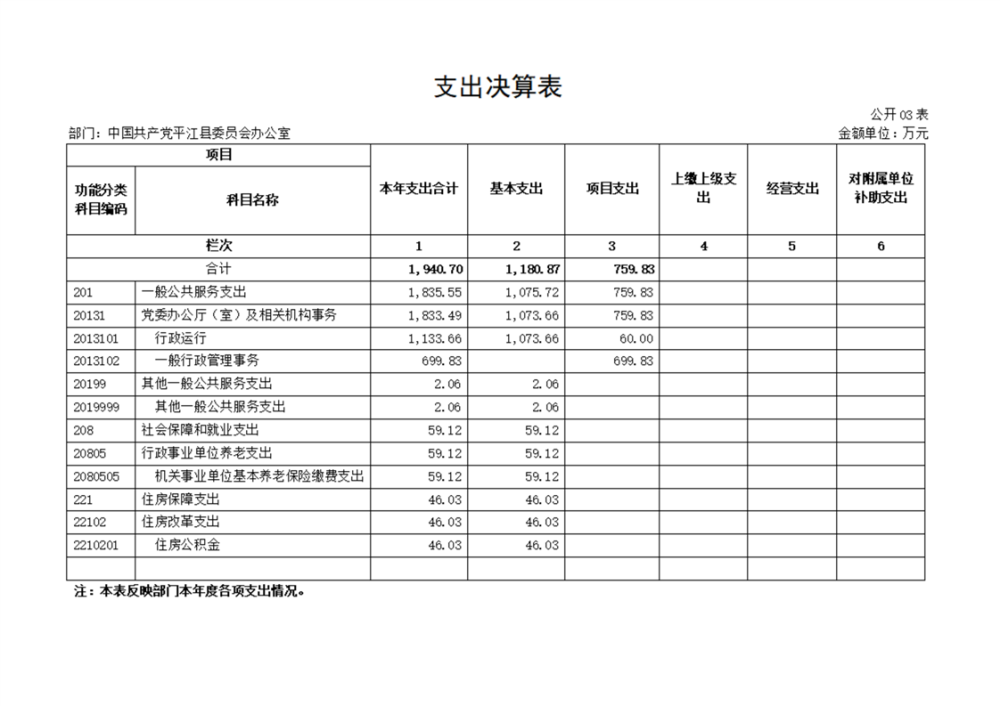 中共平江县委办公室2022年部门决算