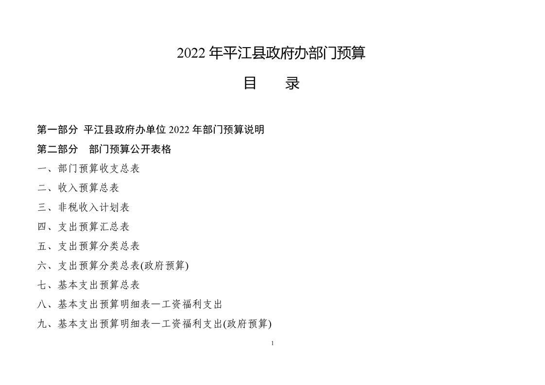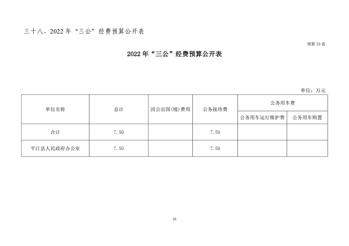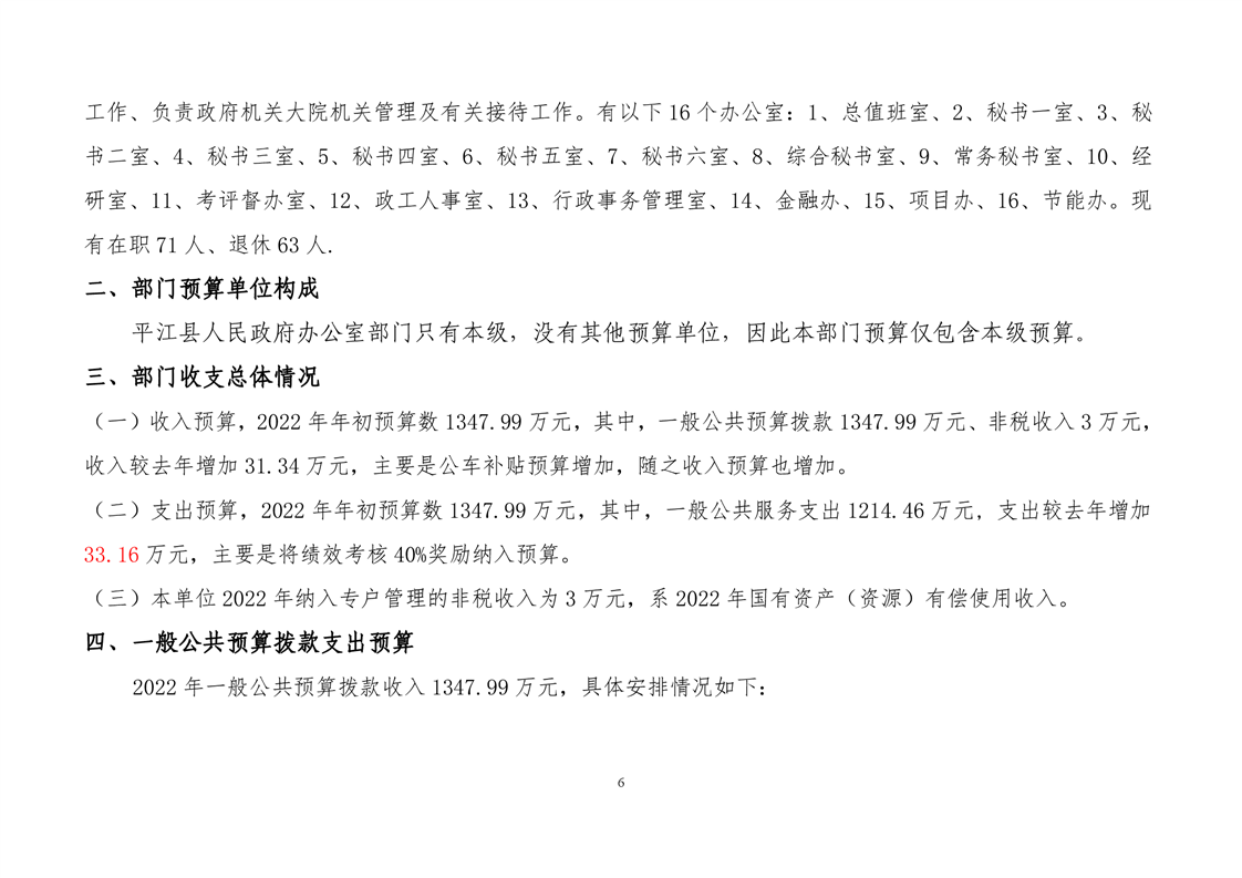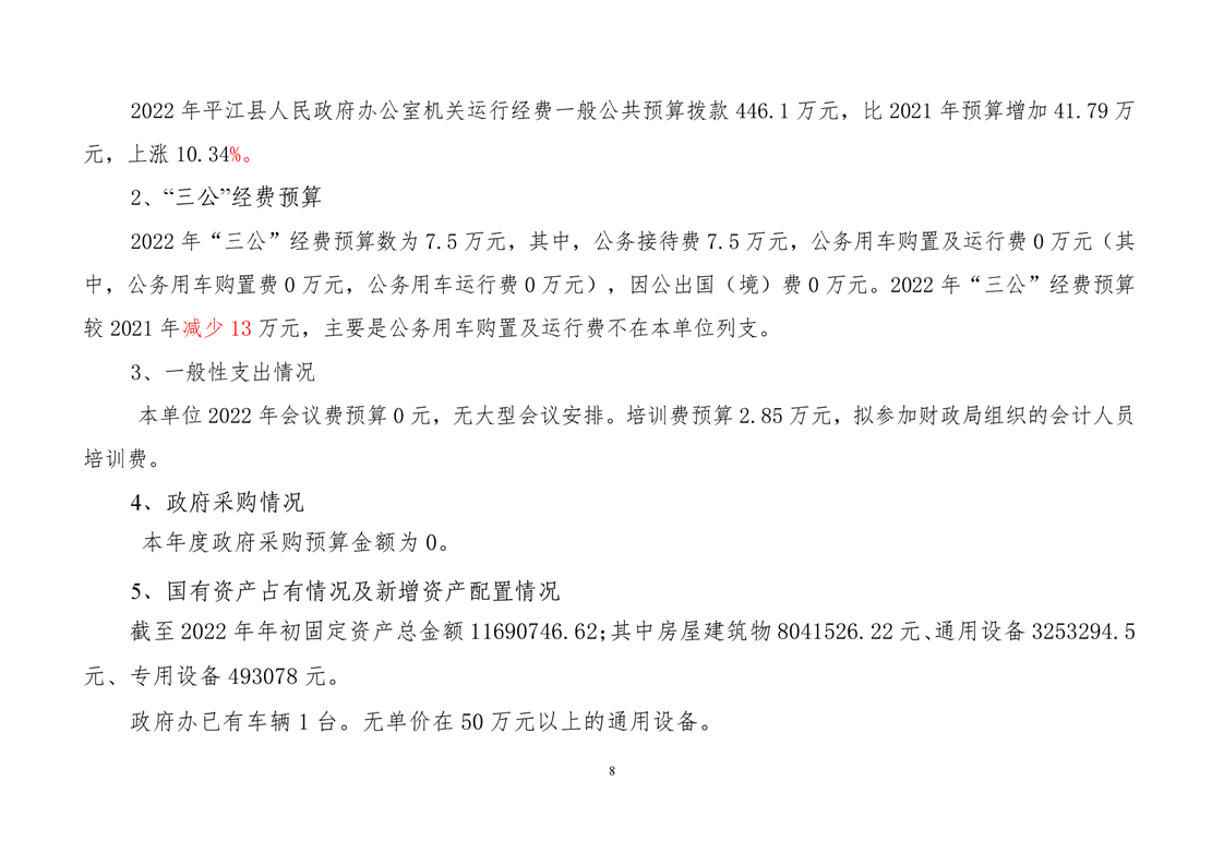 平江县政府办2022年部门预算