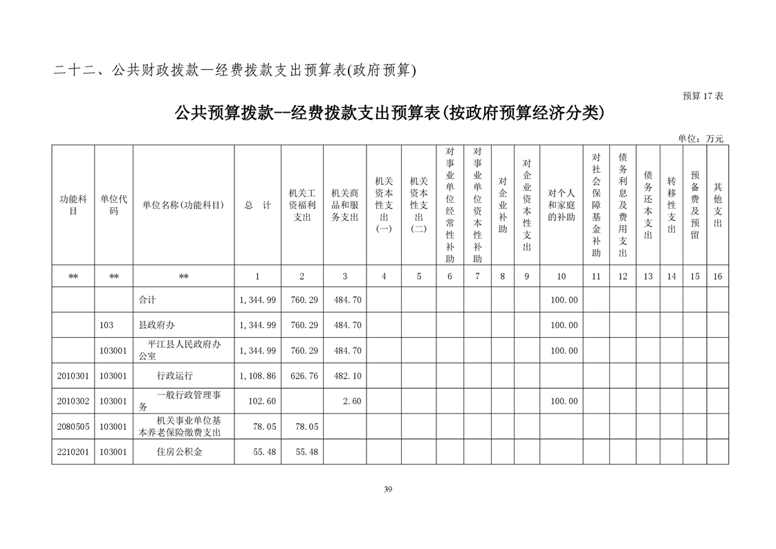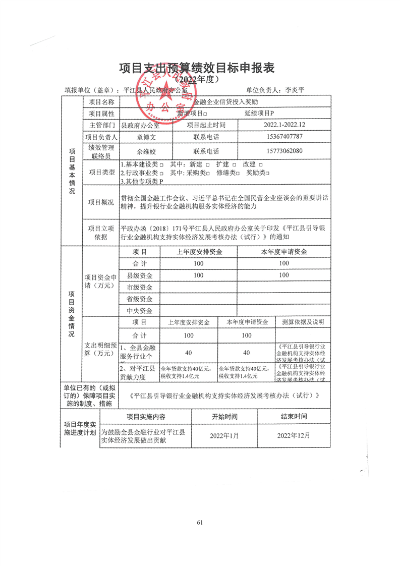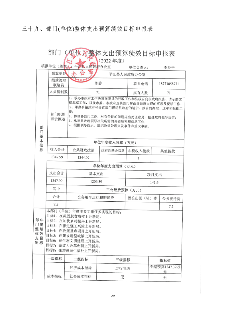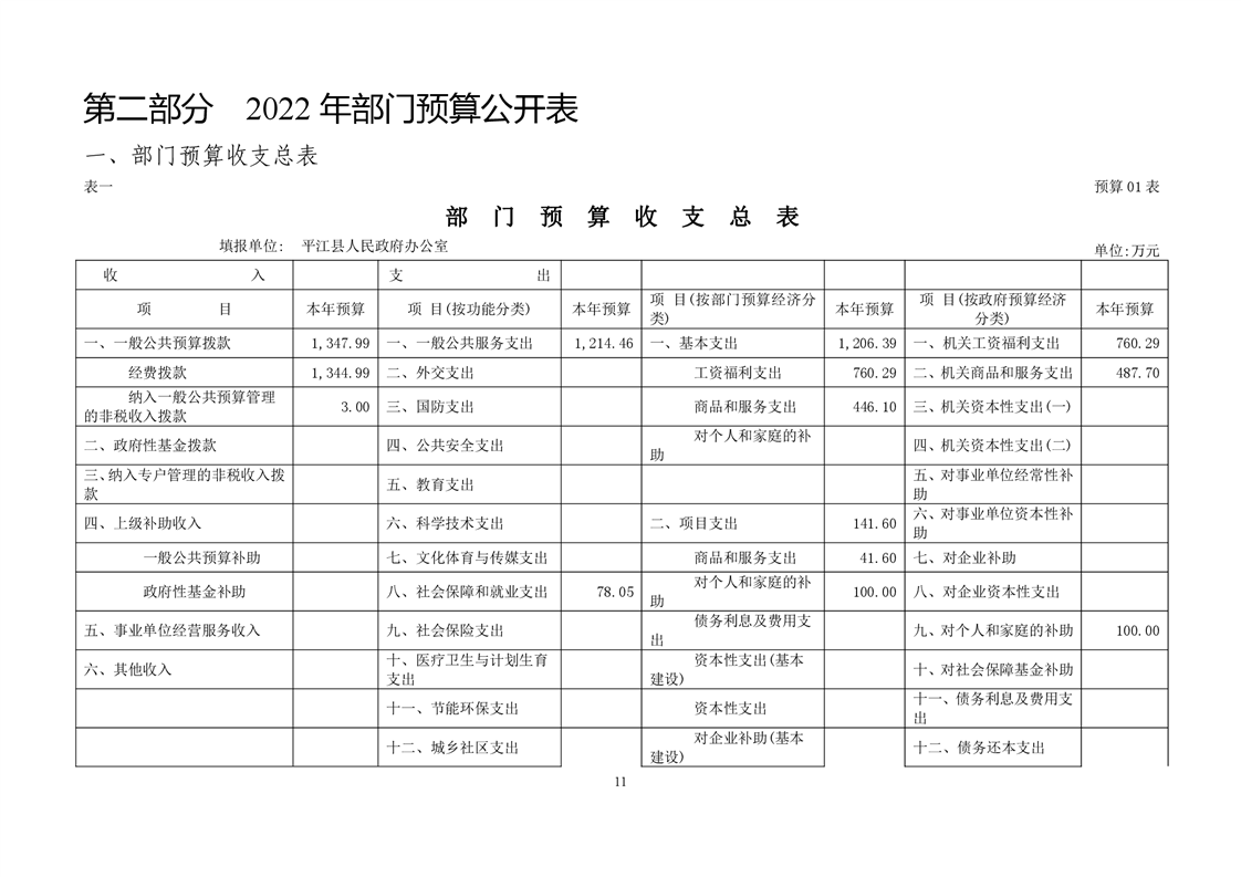 平江县政府办2022年部门预算