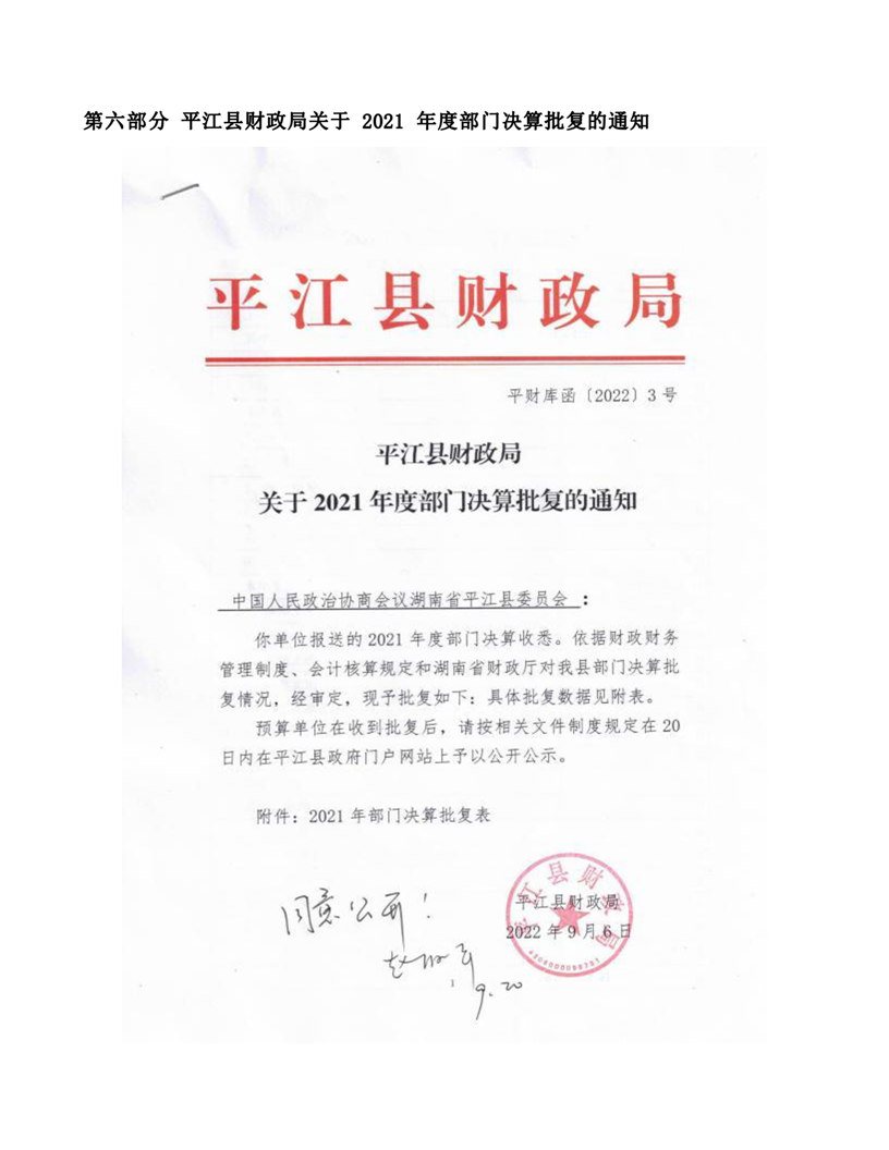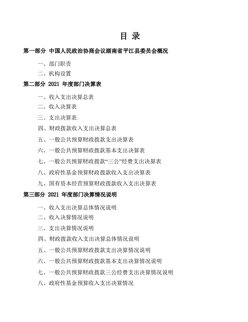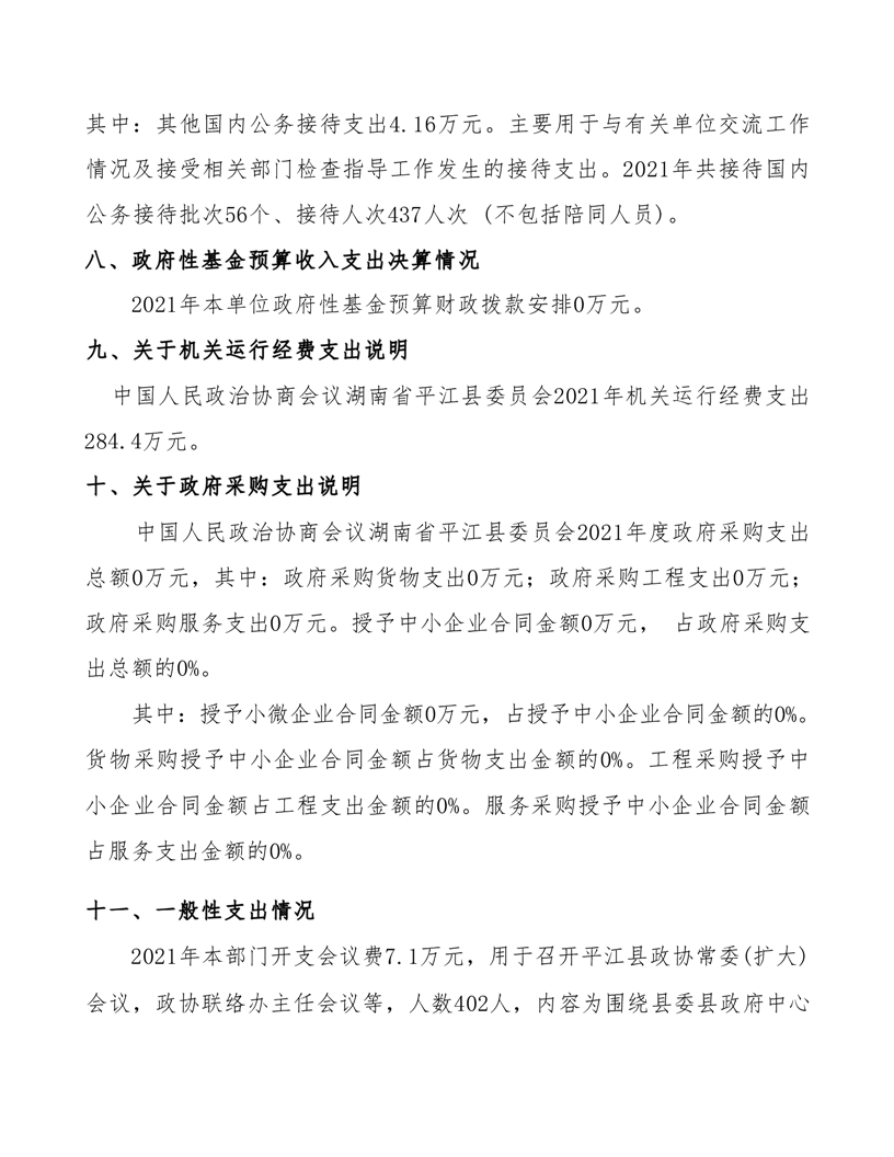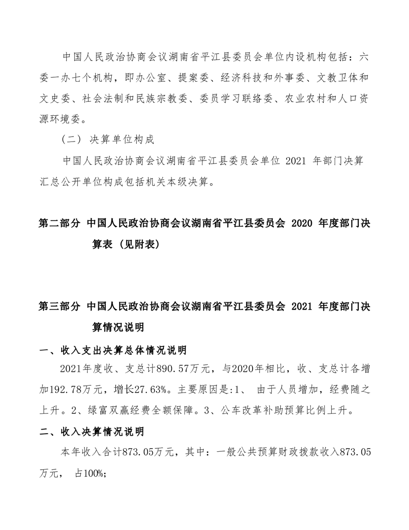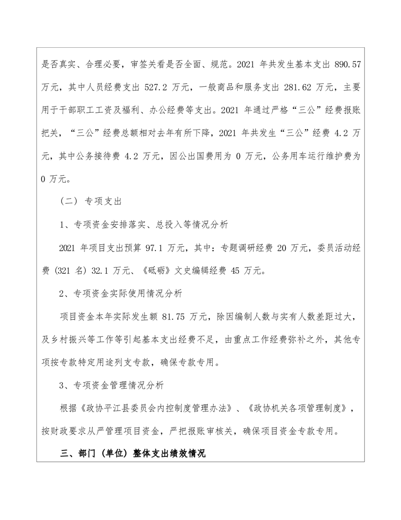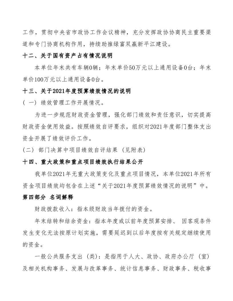 政协平江县委员会2021年部门决算