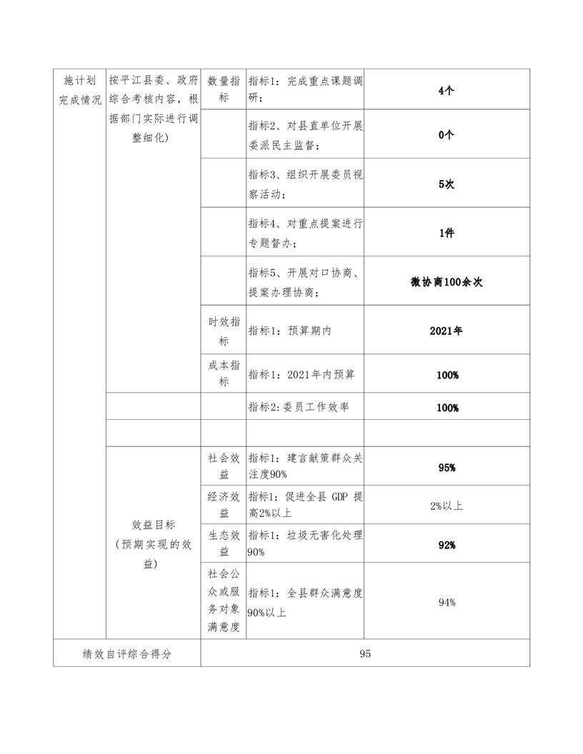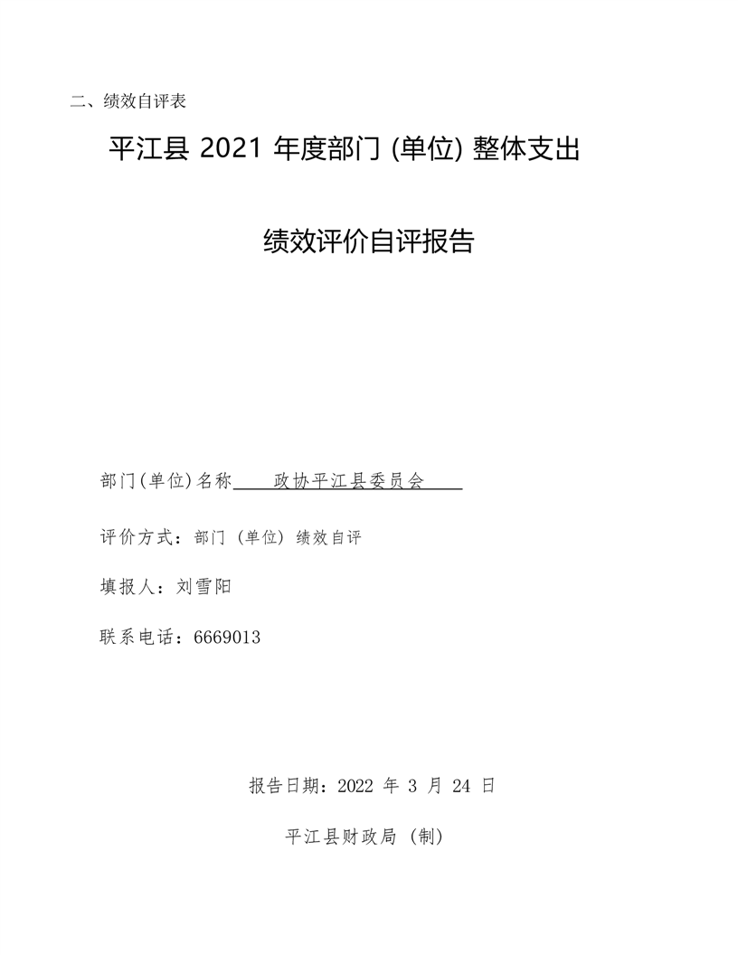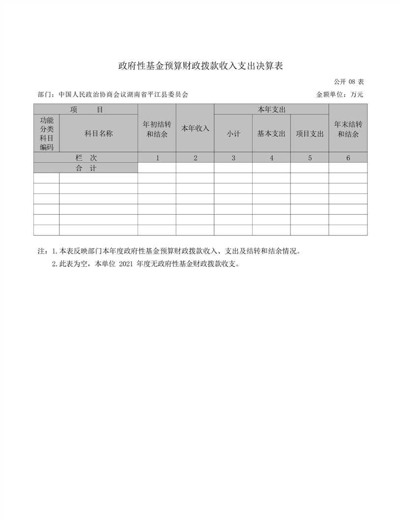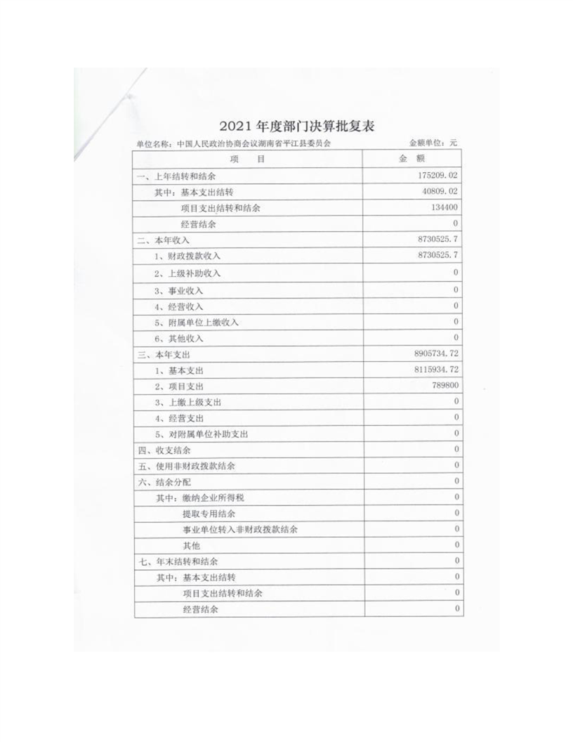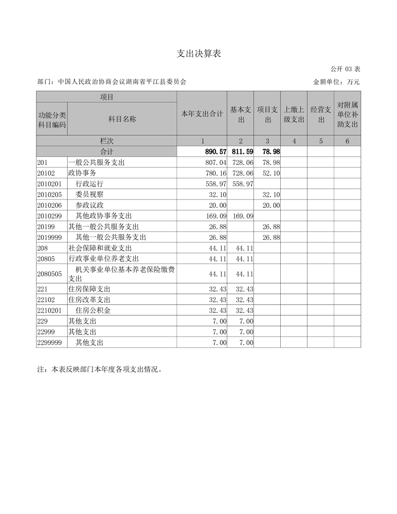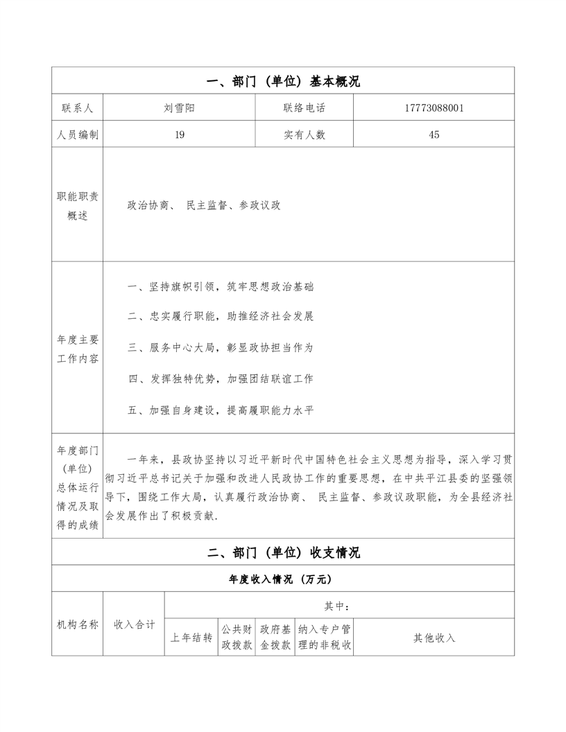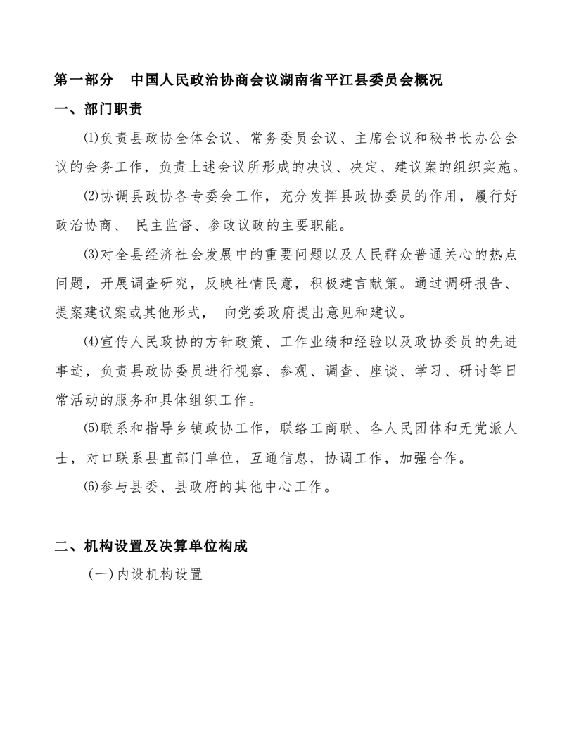 政协平江县委员会2021年部门决算