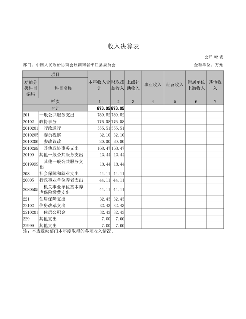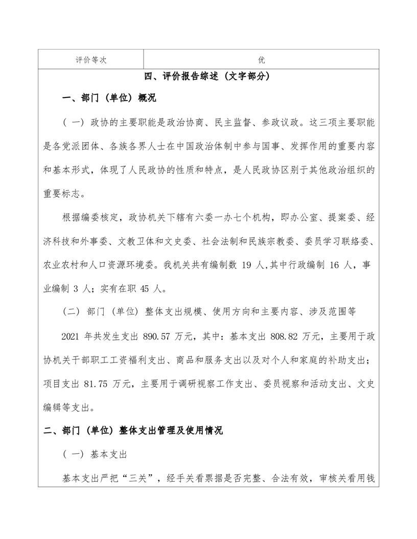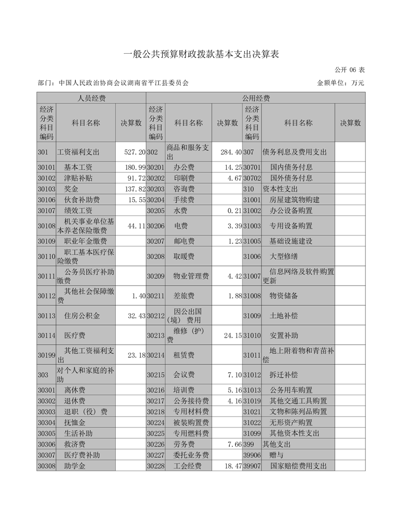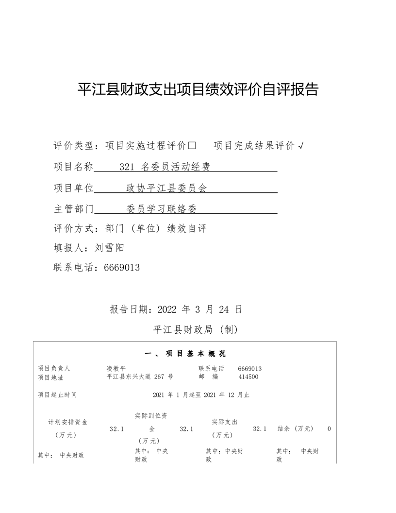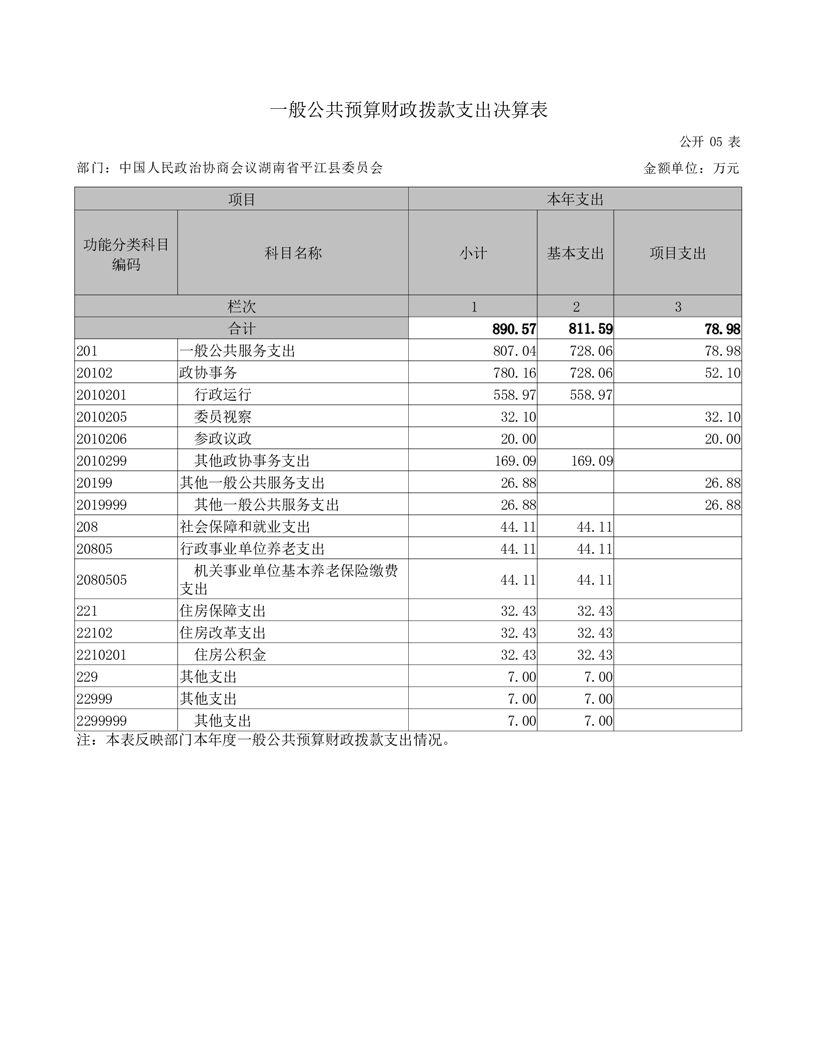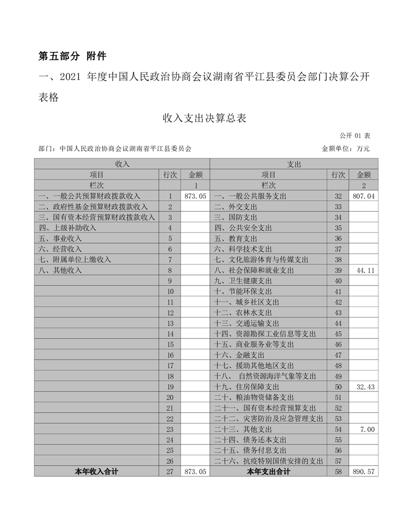 政协平江县委员会2021年部门决算